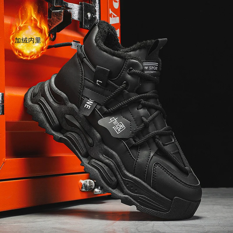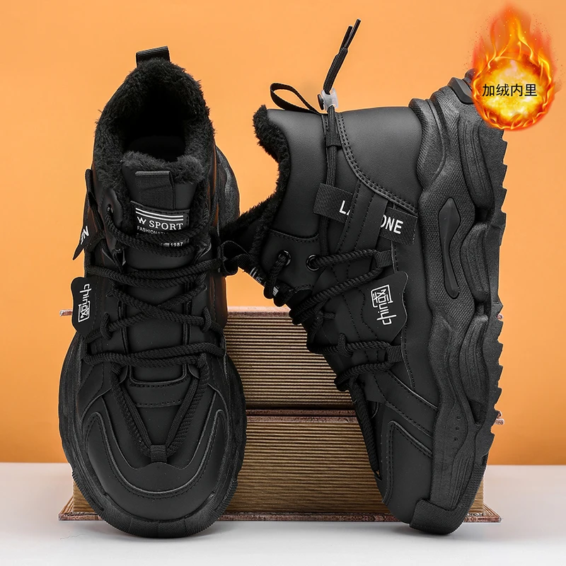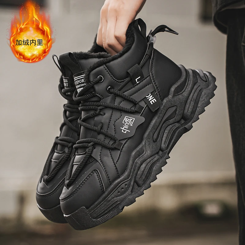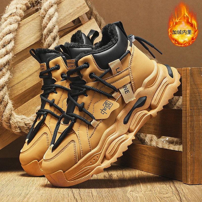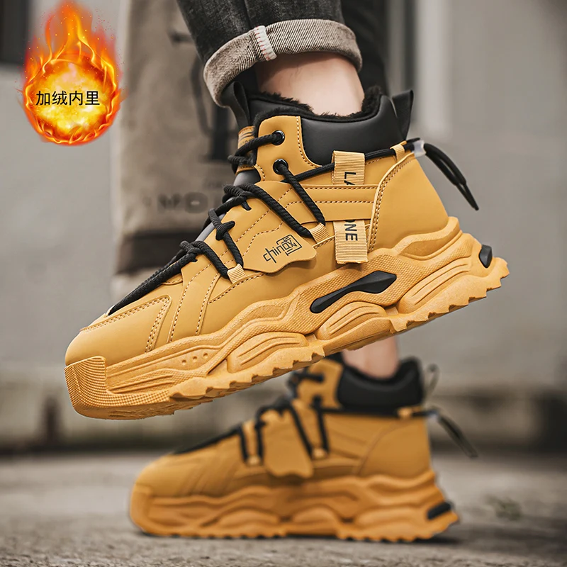 Nuove scarpe invernali da uomo alte con pile aggiunto e calore ispessito, scarpe di cotone giallo e stivali da neve integrati in pelliccia