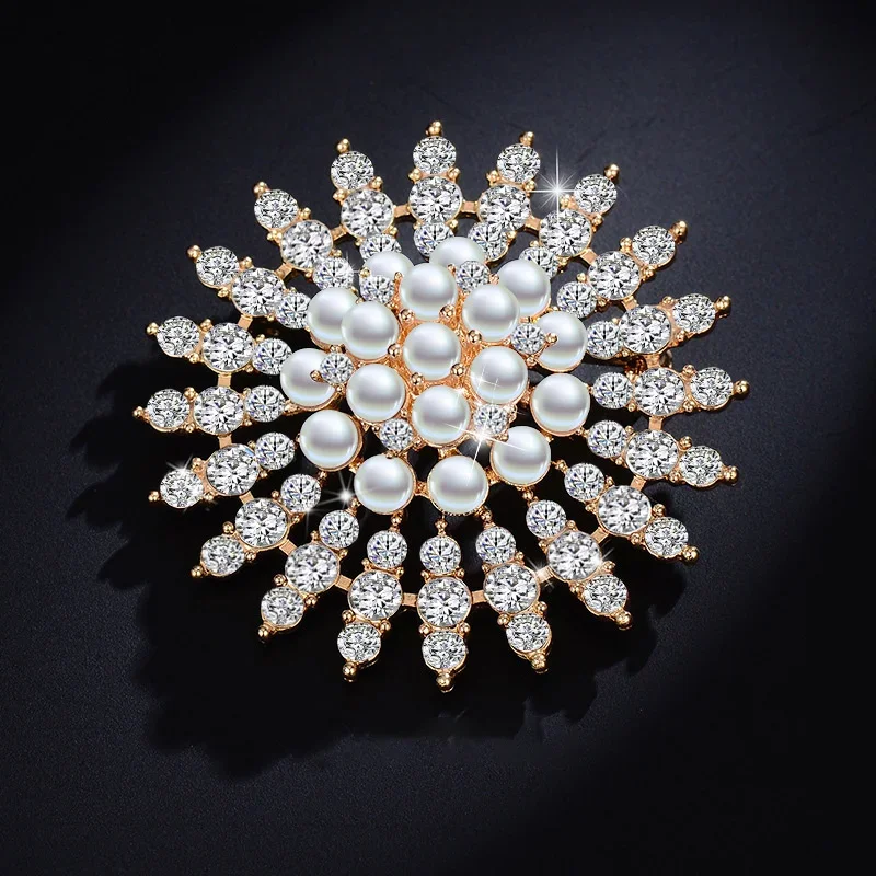 Nuove spille di girasole scintillanti eleganti di lusso Argento color oro Strass Lega di perle Spilla Lady Party Pins Gioielli di compleanno 1Nuove spille di girasole scintillanti eleganti di lusso Argento color oro Strass Lega di perle Spilla Lady Party Pins Gioielli di compleanno