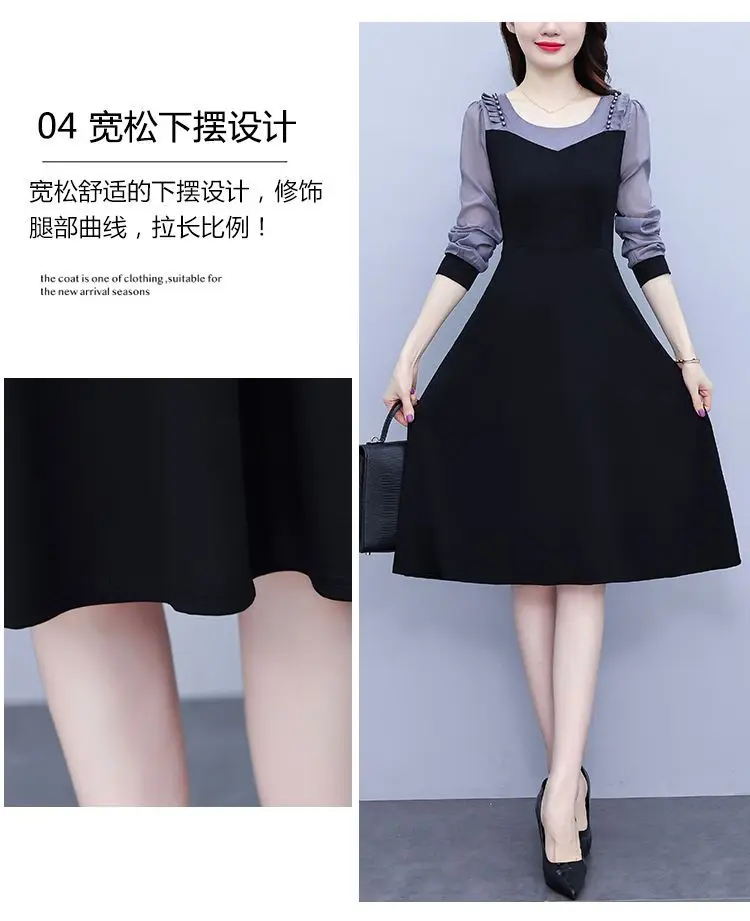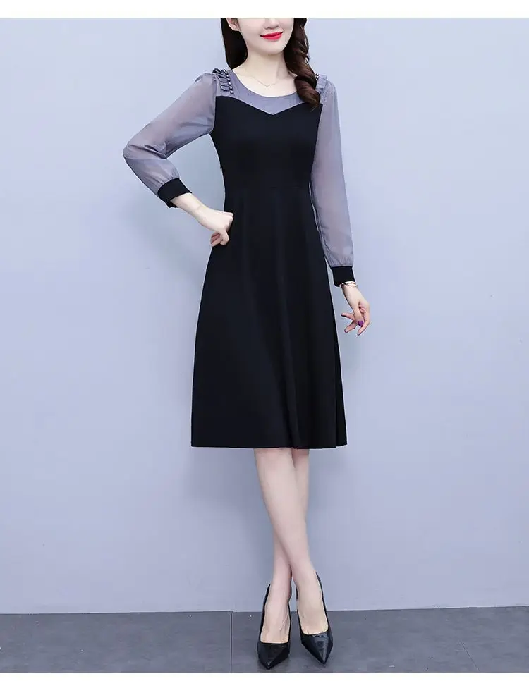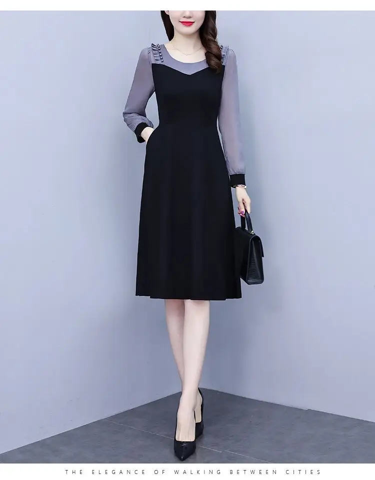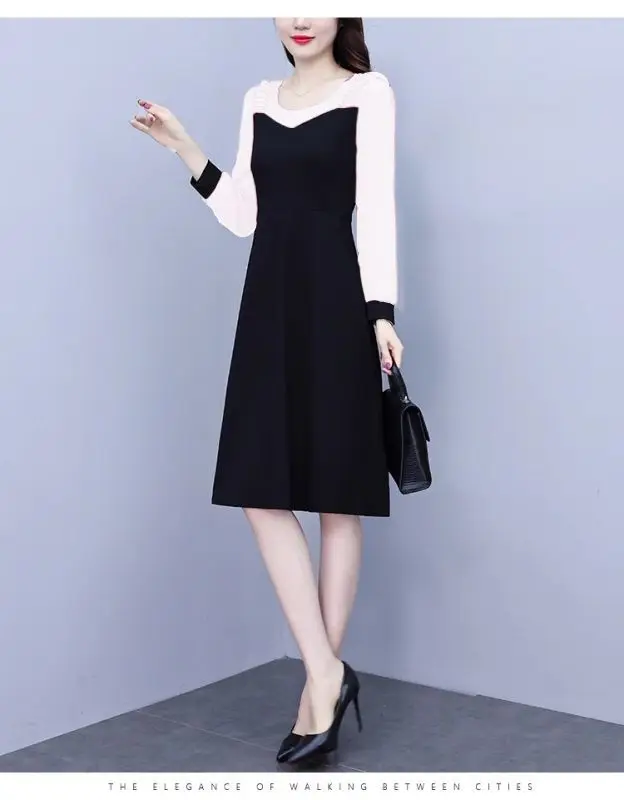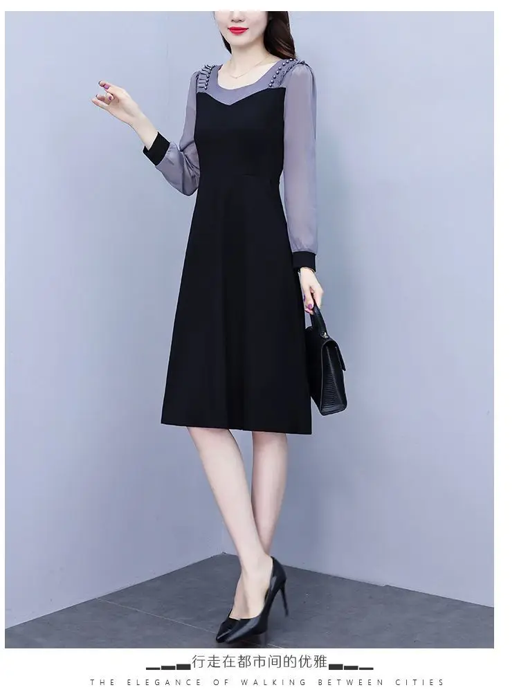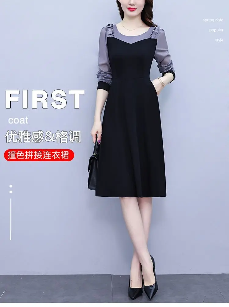 Primavera e autunno nuovi abiti da donna moda temperamento pendolarismo elegante tinta unita plus size abito con maniche a sette quarti