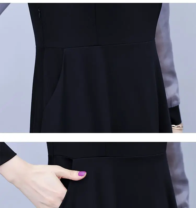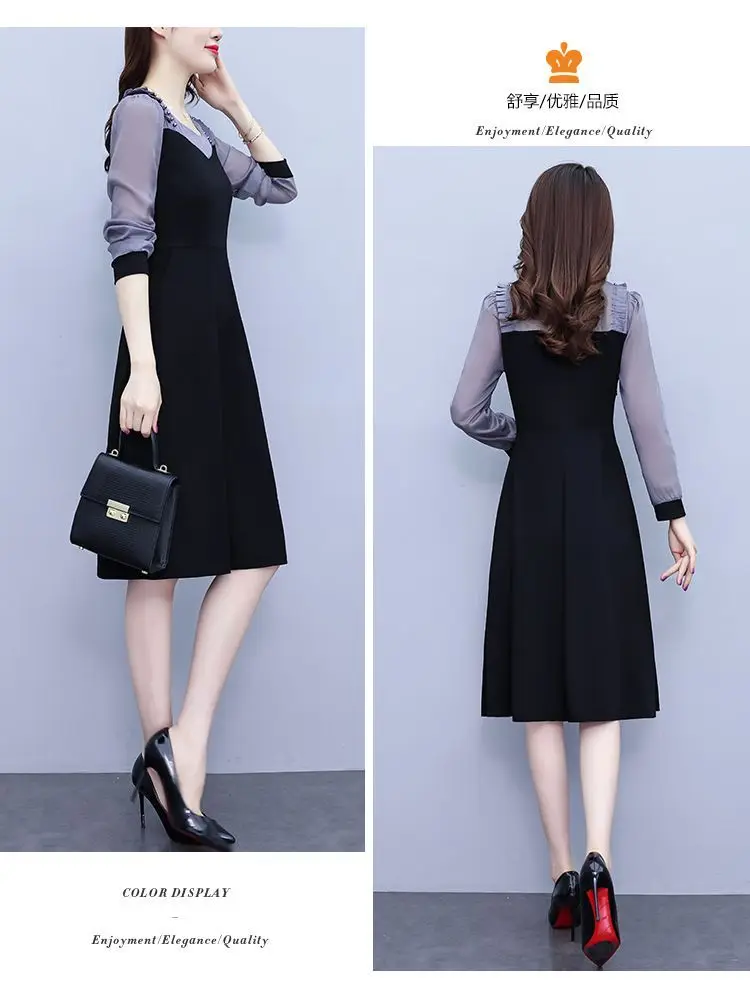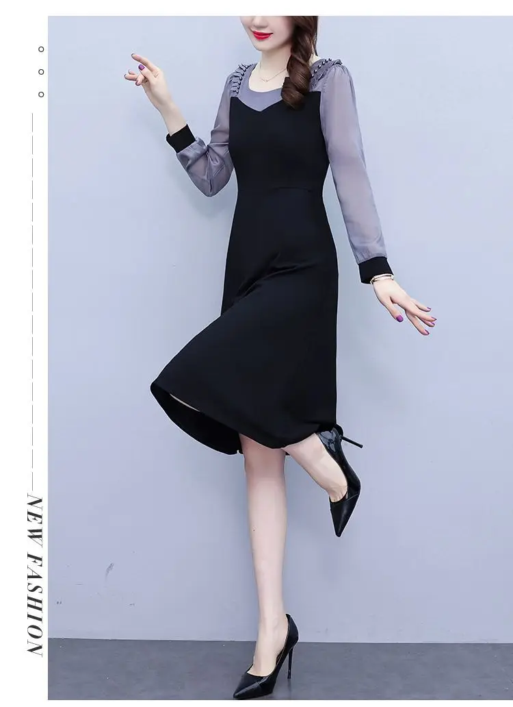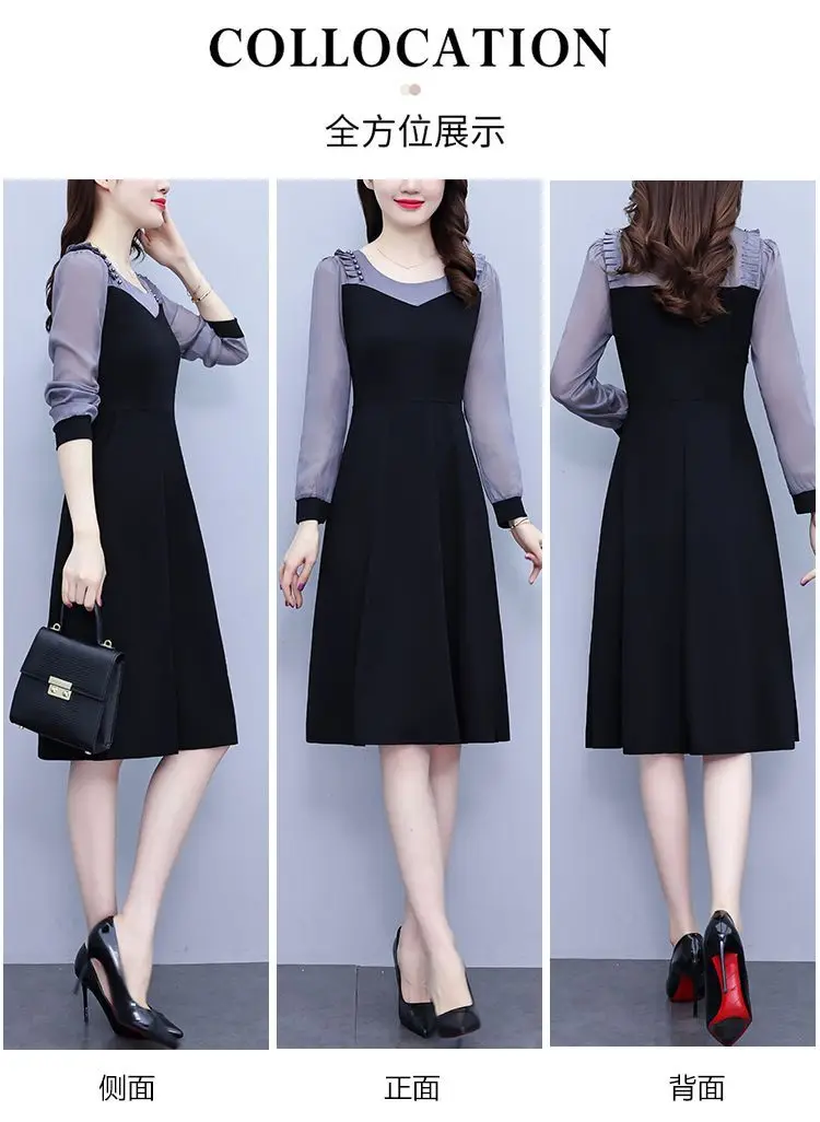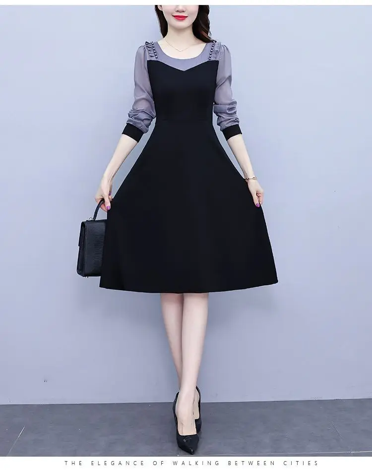 Primavera e autunno nuovi abiti da donna moda temperamento pendolarismo elegante tinta unita plus size abito con maniche a sette quarti