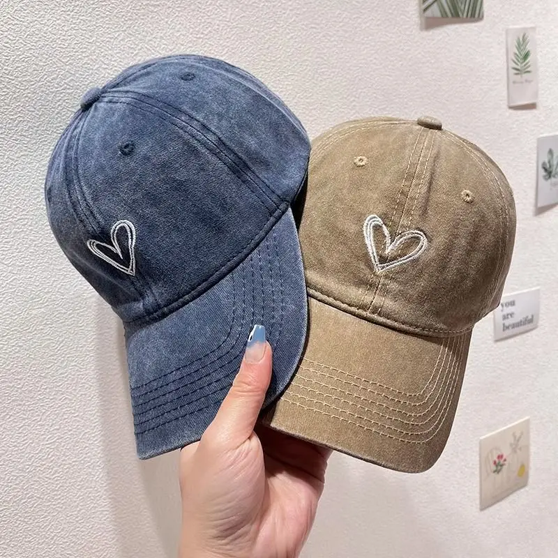 Nuovi berretti da Baseball sportivi di moda all’aperto per le donne cappello da papà in cotone lavato femminile con ricamo a cuore d’amore