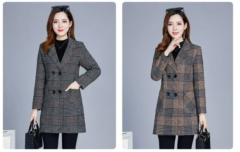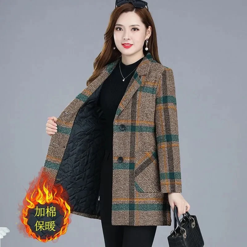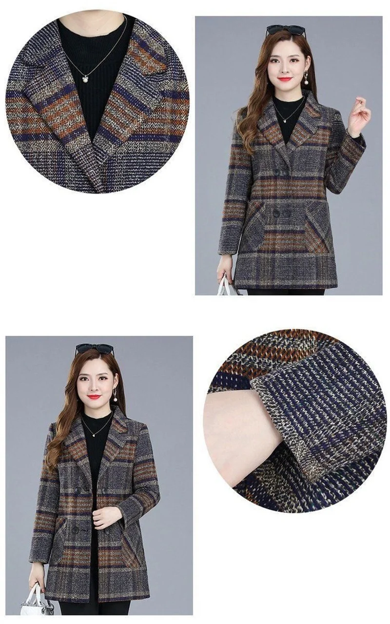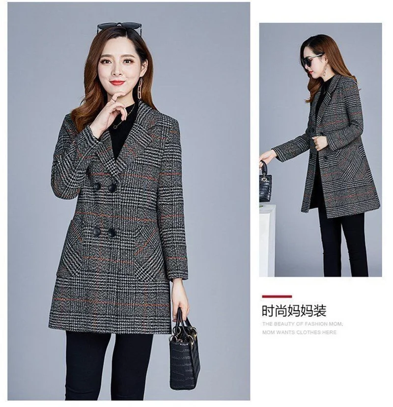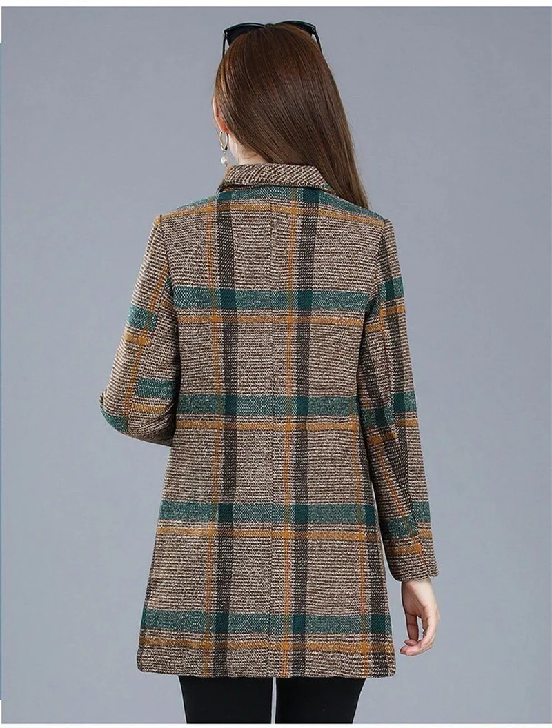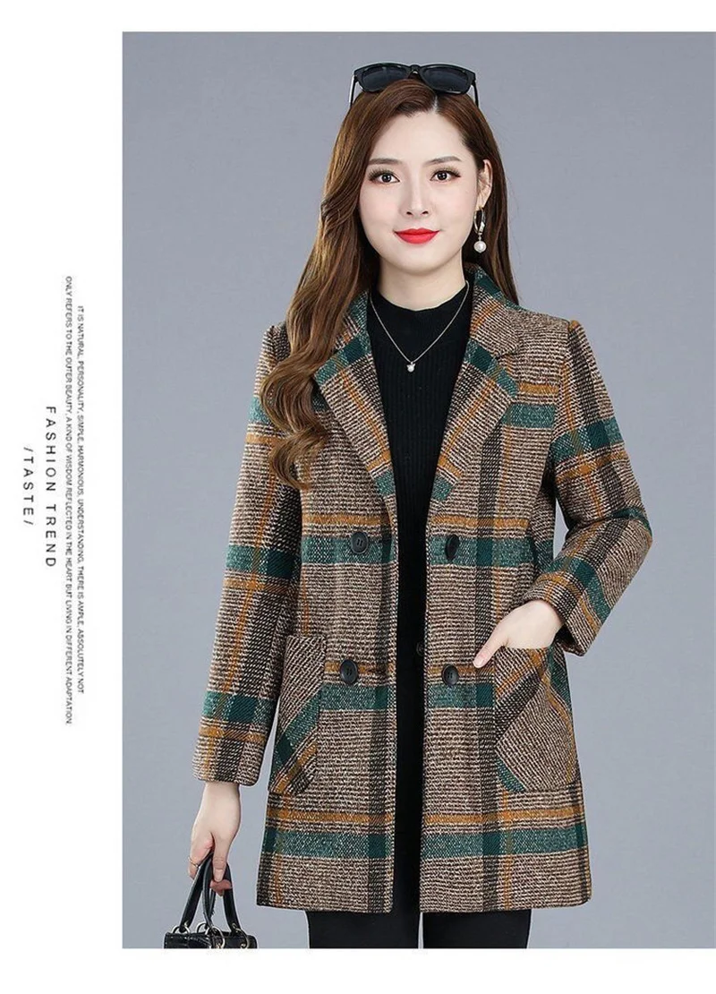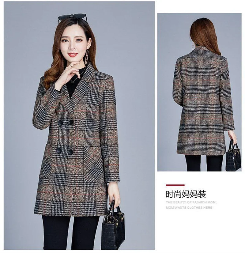 Nuovi cappotti da donna di mezza età Griglia di moda Cappotto di lana Donna Autunno Inverno Lana e misto tasche Donna elegante Giacche Top