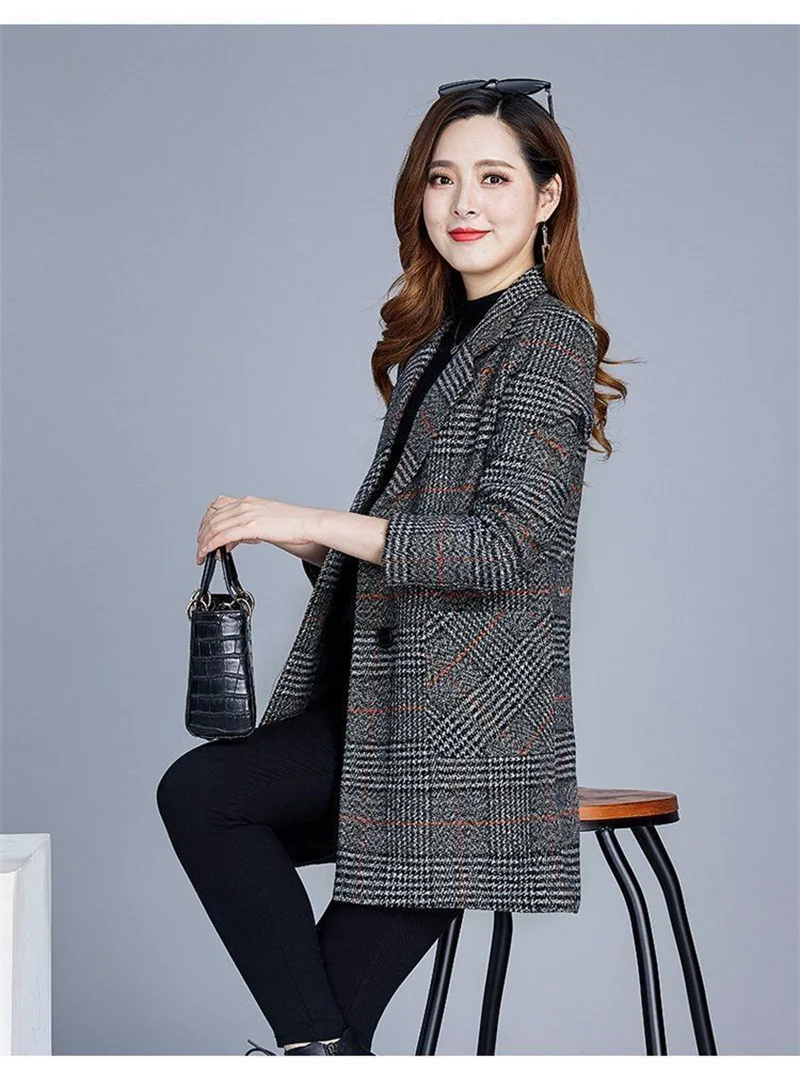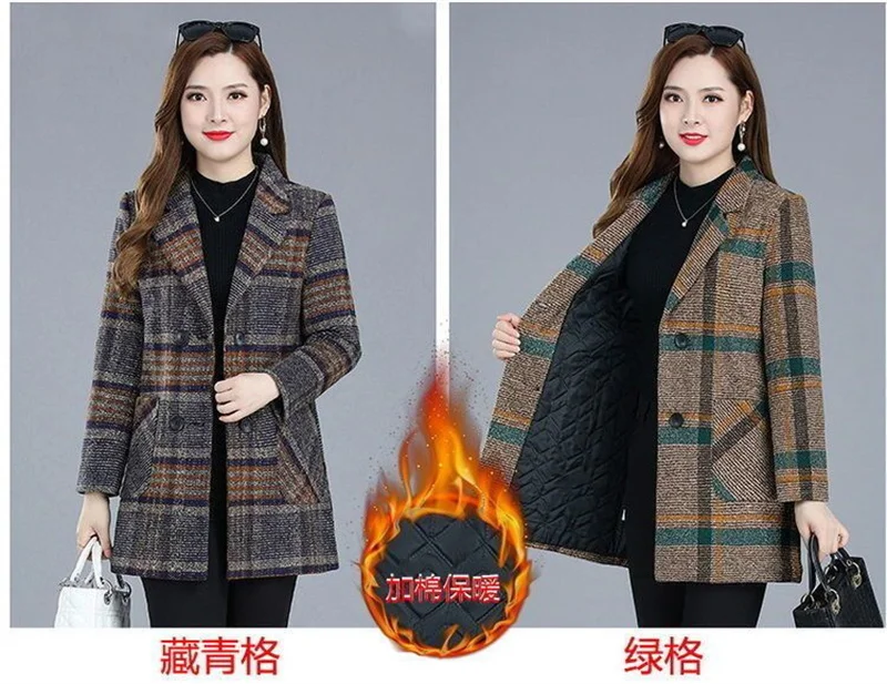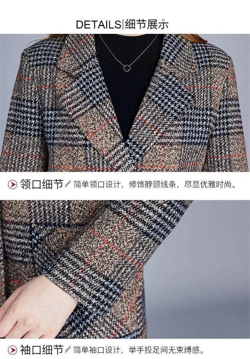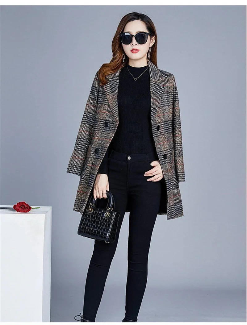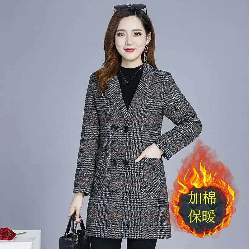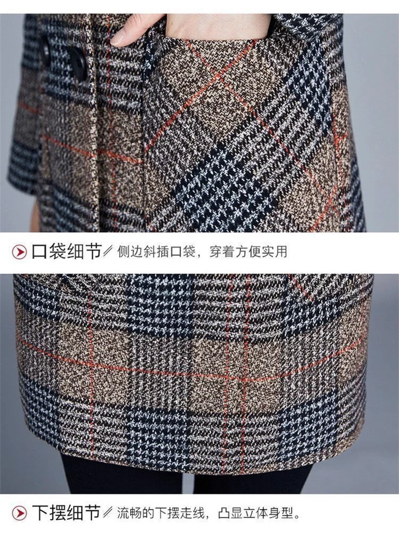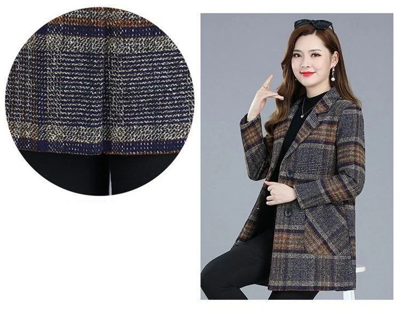 Nuovi cappotti da donna di mezza età Griglia di moda Cappotto di lana Donna Autunno Inverno Lana e misto tasche Donna elegante Giacche Top