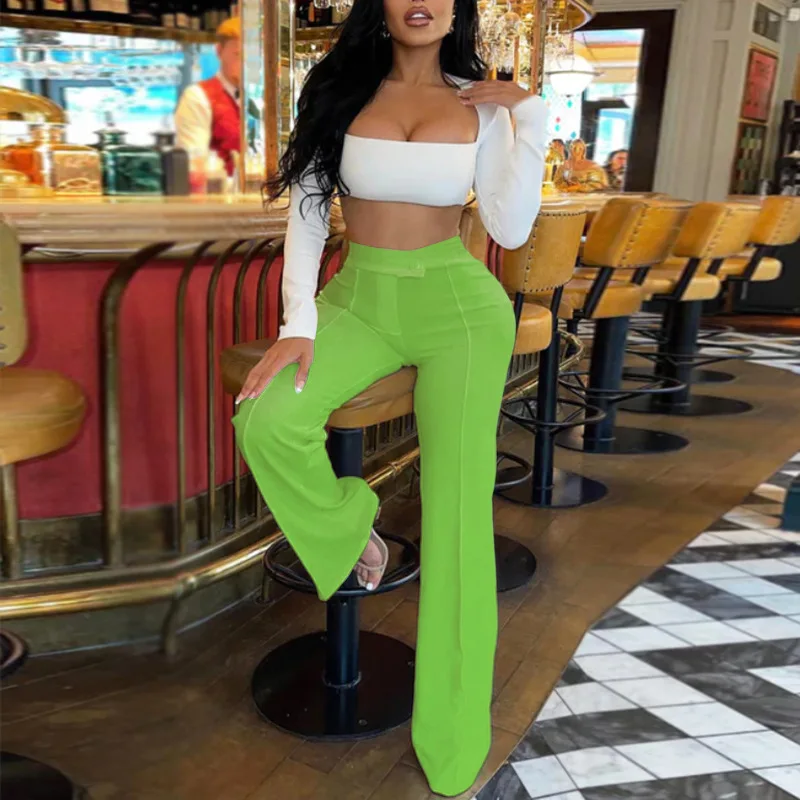 Nuovi pantaloni casual da donna tinta unita primavera e autunno pantaloni dritti femme pantaloni larghi microelastici a vita alta alla moda