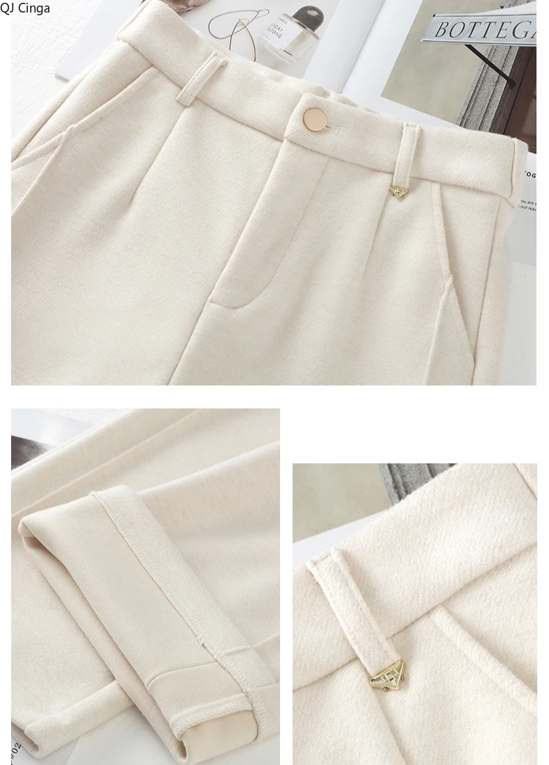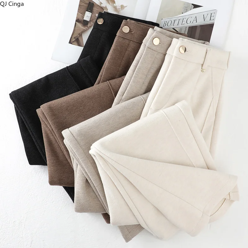 Nuovi pantaloni da pendolare da donna beige autunno/inverno, eleganti pantaloni casual neri, taglie asiatiche 26-31.