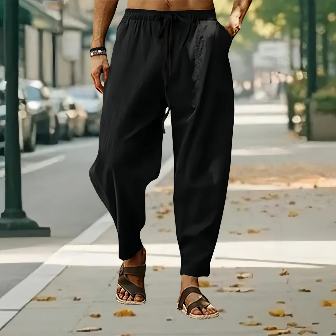 Nuovi pantaloni da uomo in cotone e lino estate e autunno pantaloni a gamba larga a vita alta solidi pantaloni sportivi traspiranti casual in canapa allentata maschile 1Nuovi pantaloni da uomo in cotone e lino estate e autunno pantaloni a gamba larga a vita alta solidi pantaloni sportivi traspiranti casual in canapa allentata maschile