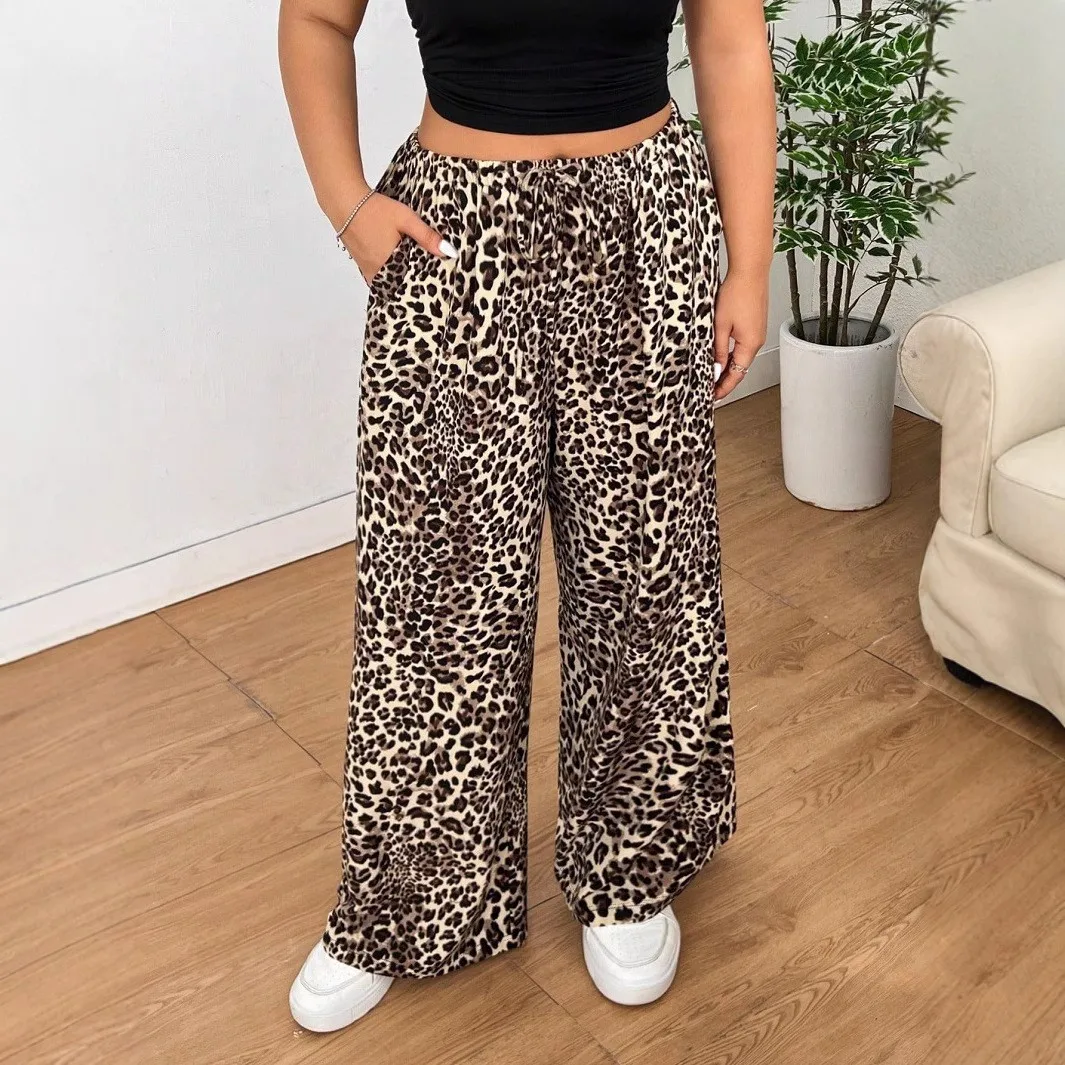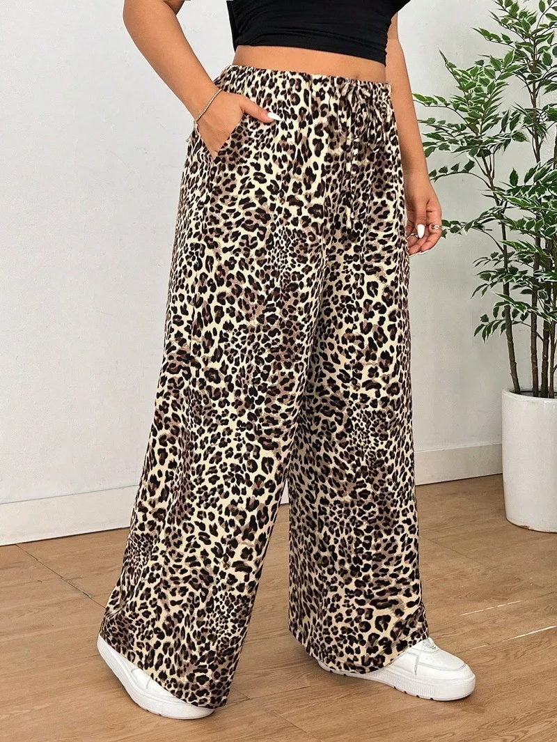 Nuovi pantaloni larghi casual con stampa leopardata da donna europei e americani autunnali e invernali con stampa leopardata