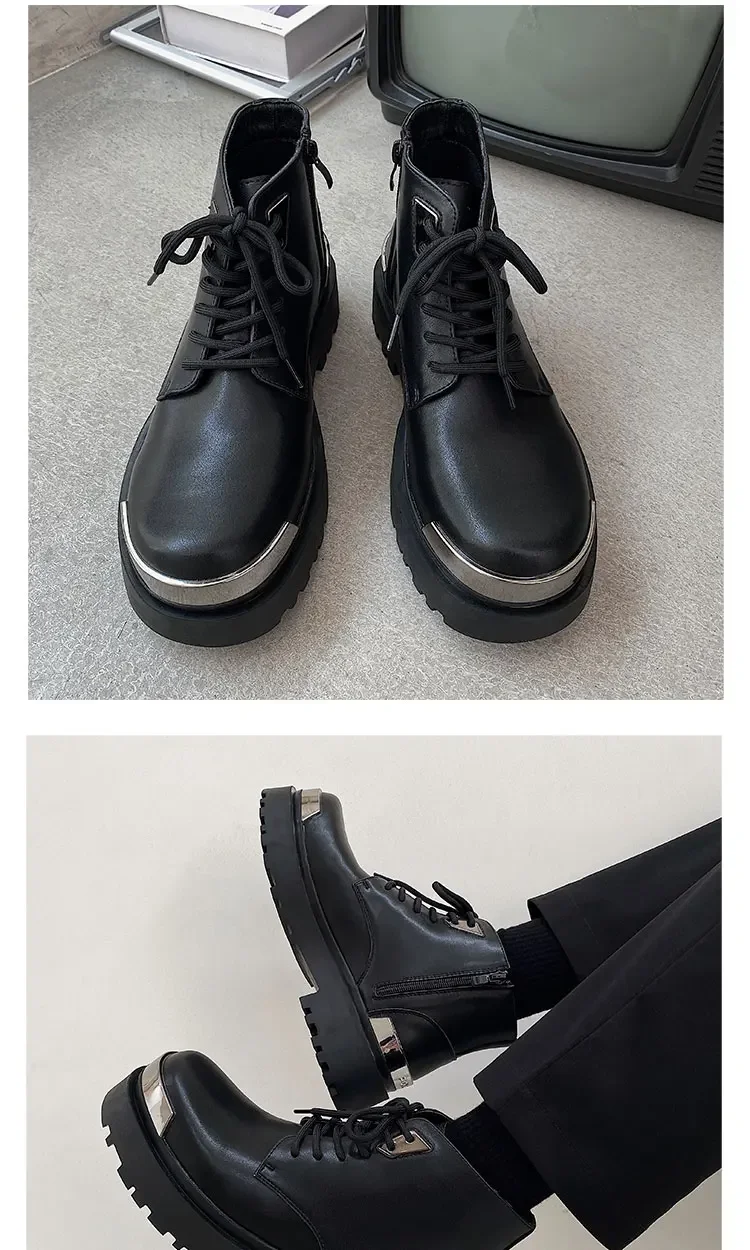 Nuovi stivali con plateau da uomo in stile originale Stivali in pelle con rialzo di altezza alla moda Scarpe derby firmate da uomo Stivali robusti da uomo da strada 1Nuovi stivali con plateau da uomo in stile originale Stivali in pelle con rialzo di altezza alla moda Scarpe derby firmate da uomo Stivali robusti da uomo da strada