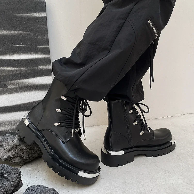 Nuovi stivali con plateau da uomo in stile originale Stivali in pelle con rialzo di altezza alla moda Scarpe derby firmate da uomo Stivali robusti da uomo da strada 1Nuovi stivali con plateau da uomo in stile originale Stivali in pelle con rialzo di altezza alla moda Scarpe derby firmate da uomo Stivali robusti da uomo da strada