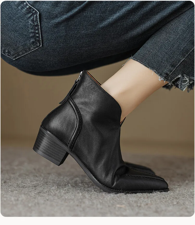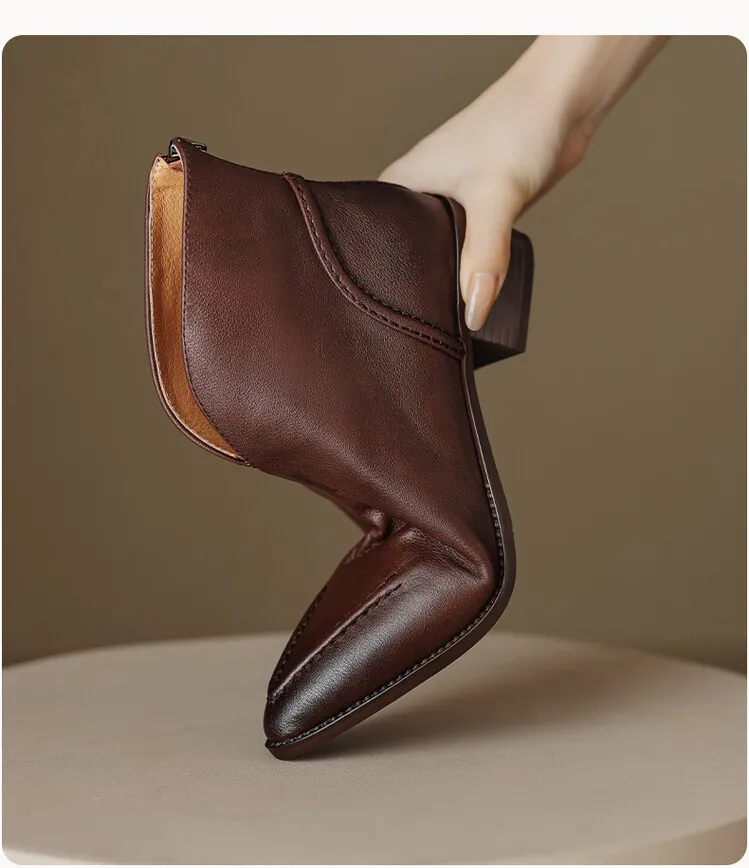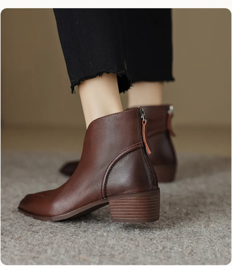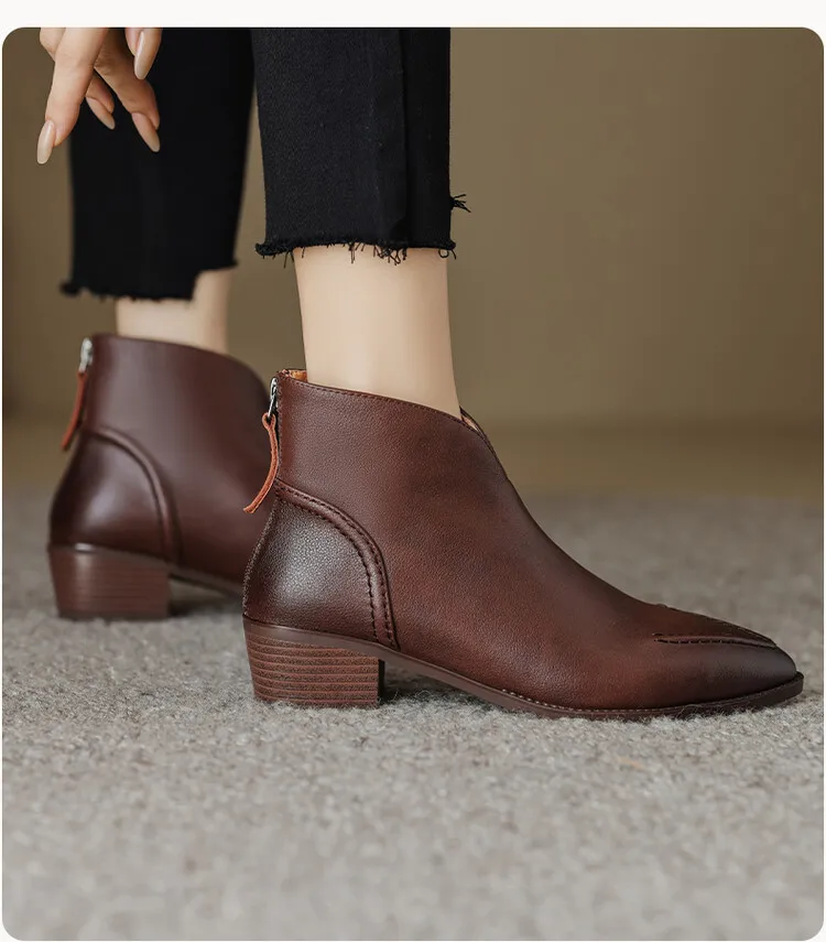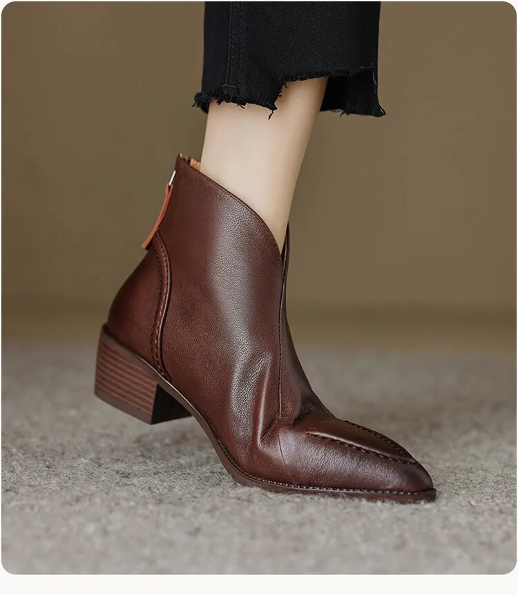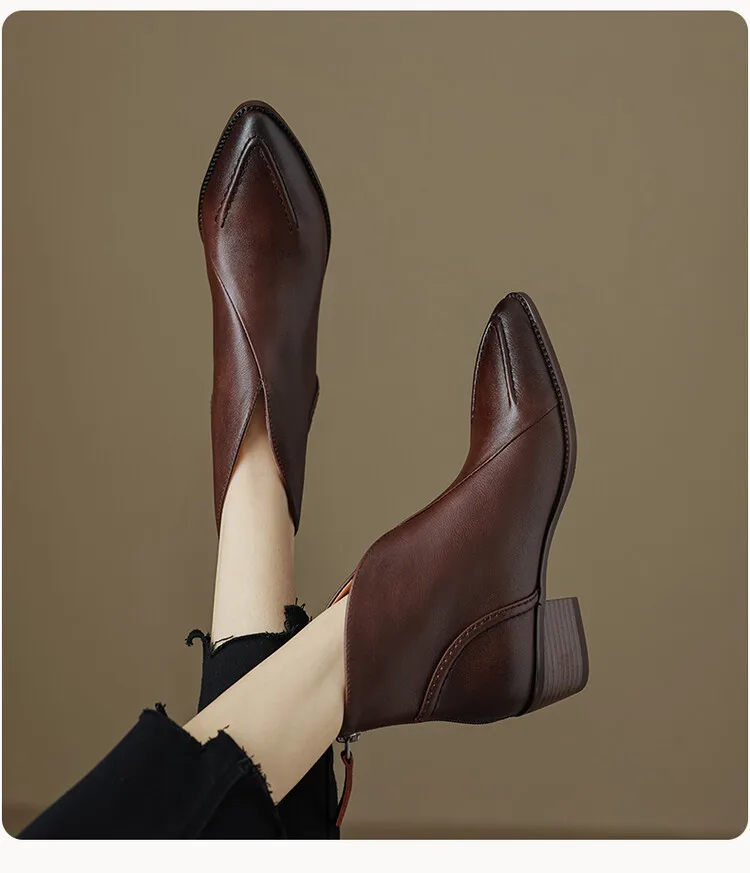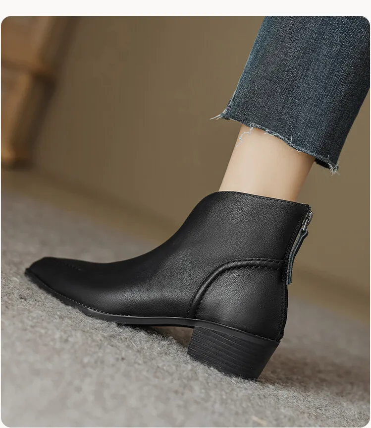 Nuovi stivali da donna autunnali scarpe con tacco grosso a punta scarpe in vera pelle per donna stivaletti con cerniera concisa stivali firmati [Materiale superiore]: vera pelle [Materiale interno]: pelle di cinghiale/pile [Materiale sottopiede]: Pelle di cinghiale/pile [Materiale della suola ]: TPR [Altezza tacco]: 4.5cm [Colore]: nero, marrone 1948 sizefieciabente: 34-40