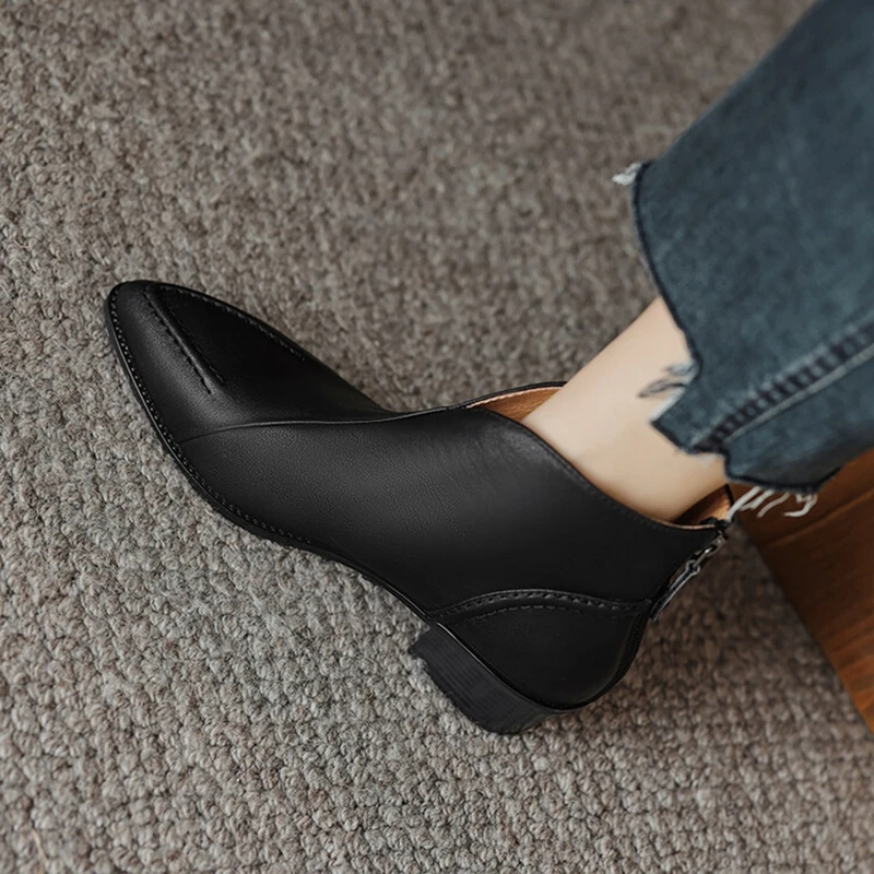 Nuovi stivali da donna autunnali scarpe con tacco grosso a punta scarpe in vera pelle per donna stivaletti con cerniera concisa stivali firmati [Materiale superiore]: vera pelle [Materiale interno]: pelle di cinghiale/pile [Materiale sottopiede]: Pelle di cinghiale/pile [Materiale della suola ]: TPR [Altezza tacco]: 4.5cm [Colore]: nero, marrone 1948 sizefieciabente: 34-40