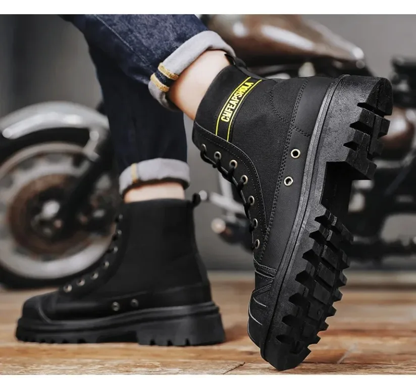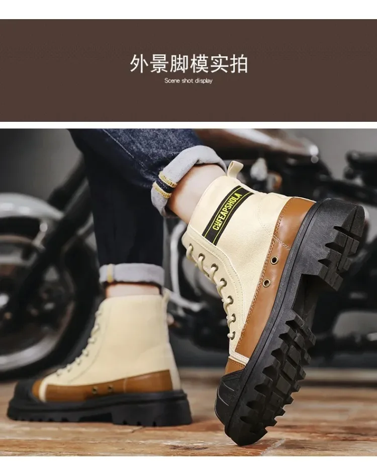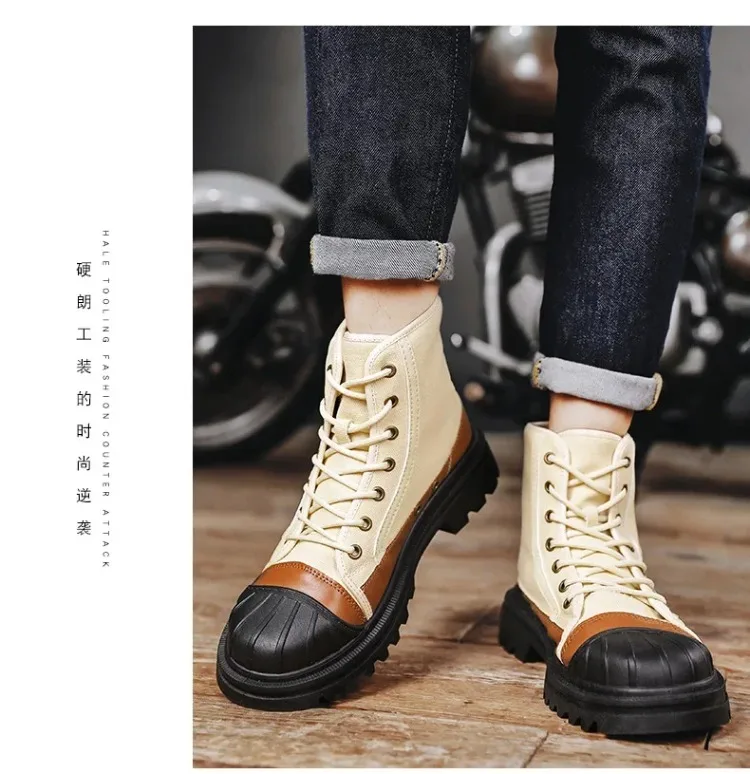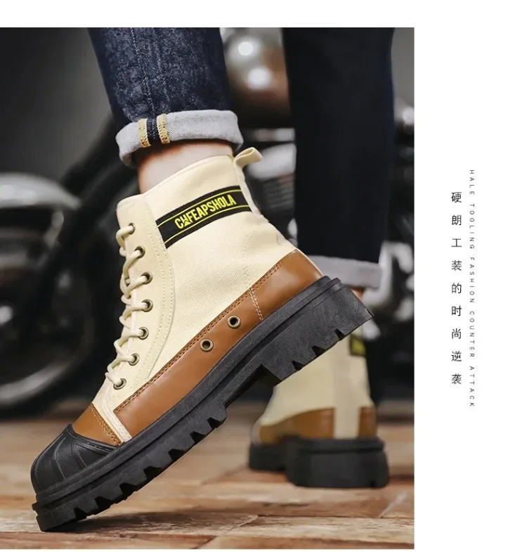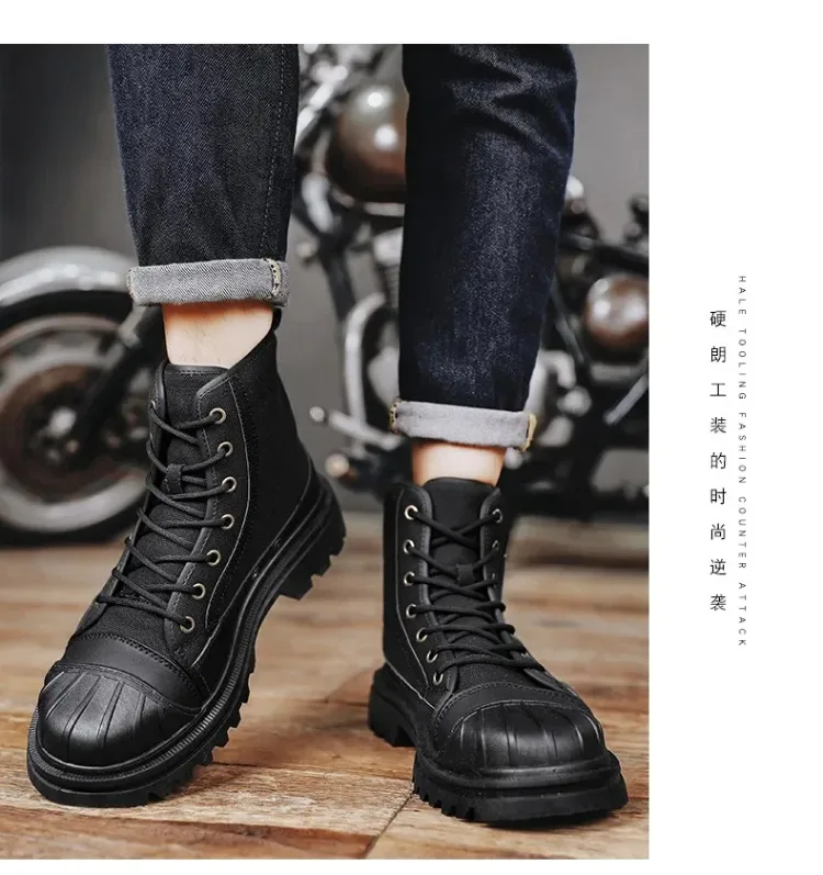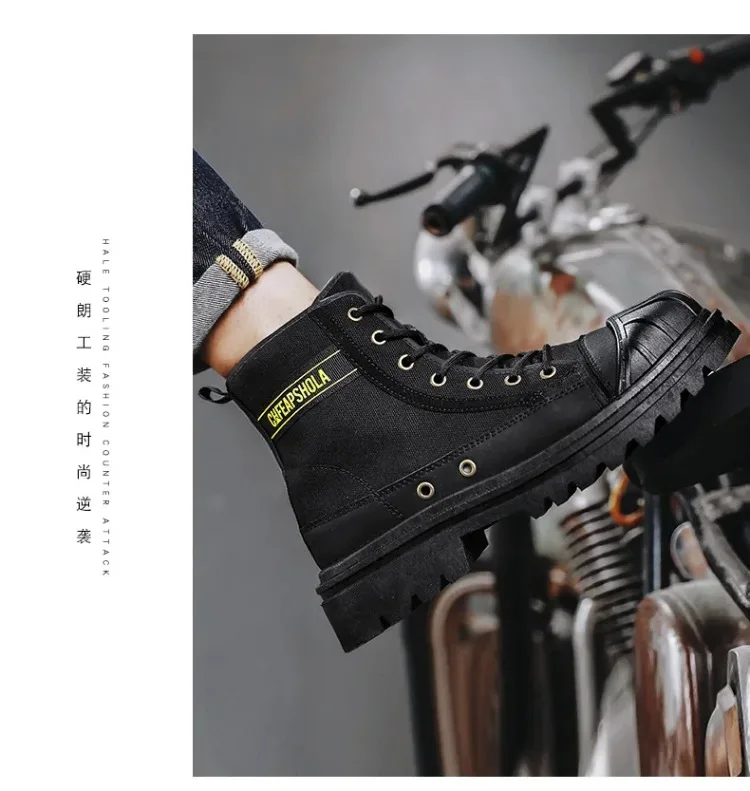 Nuovi stivali da lavoro anticollisione alti da uomo primavera e autunno stivali da moto a testa grande scarpe di tela stivali moda coturno