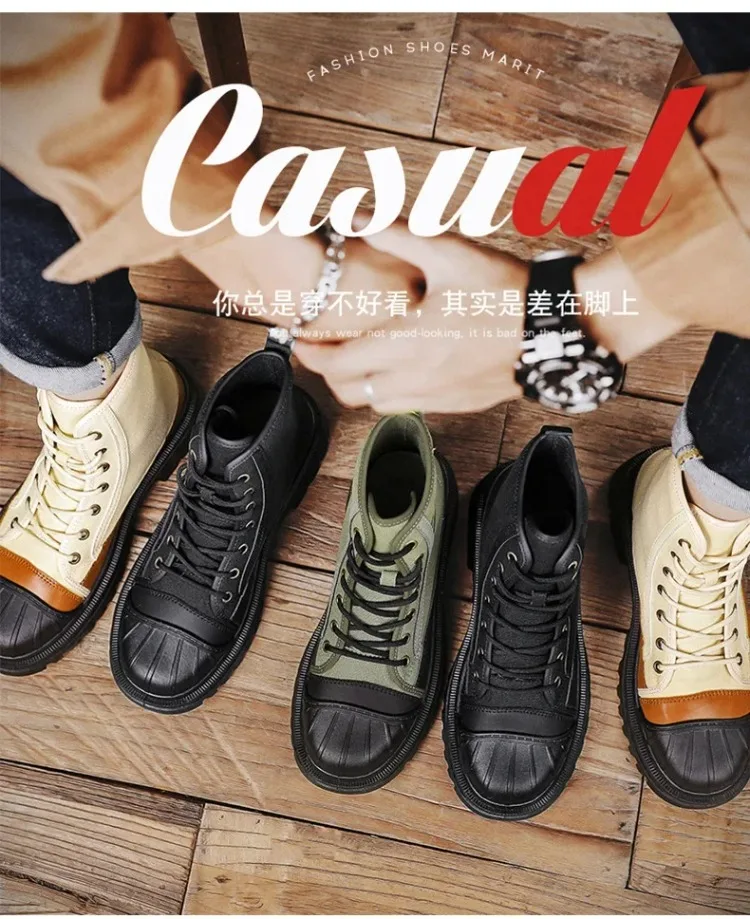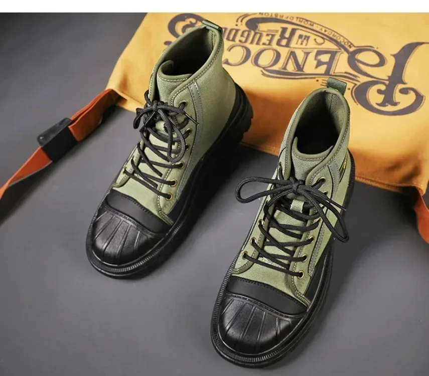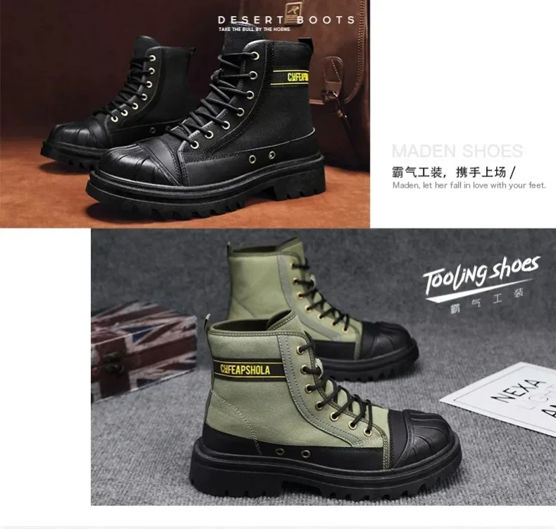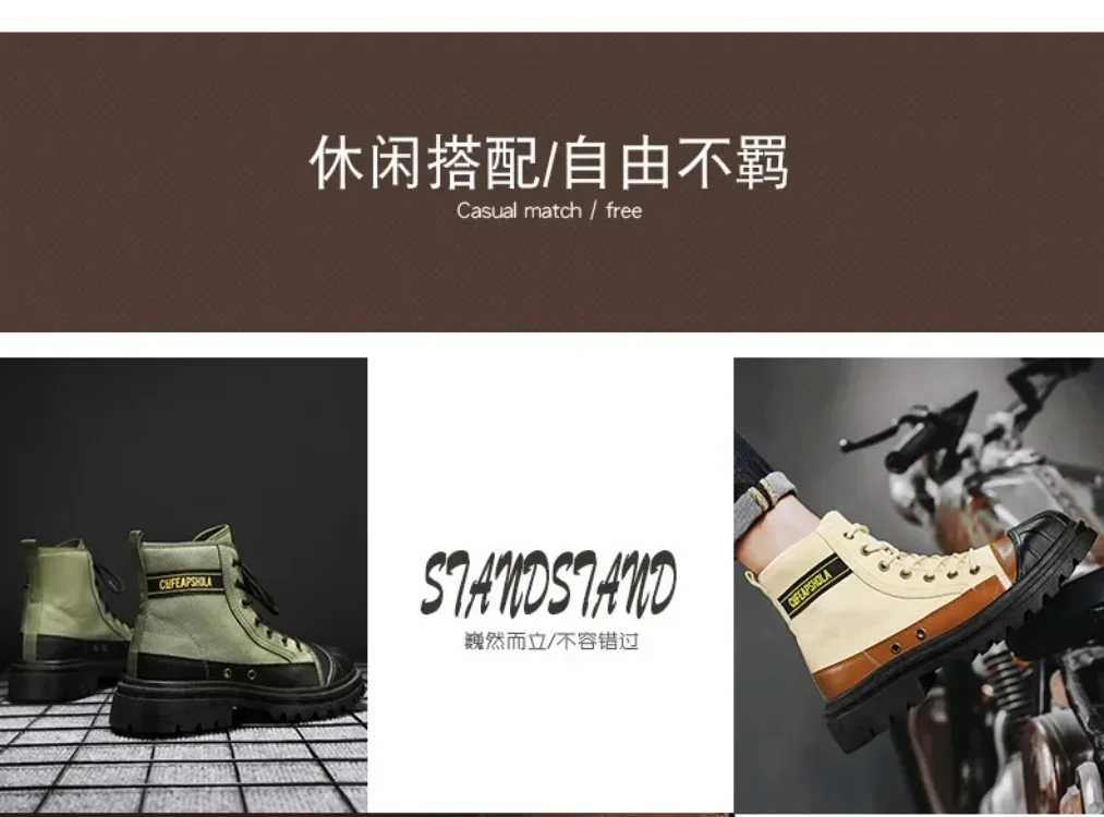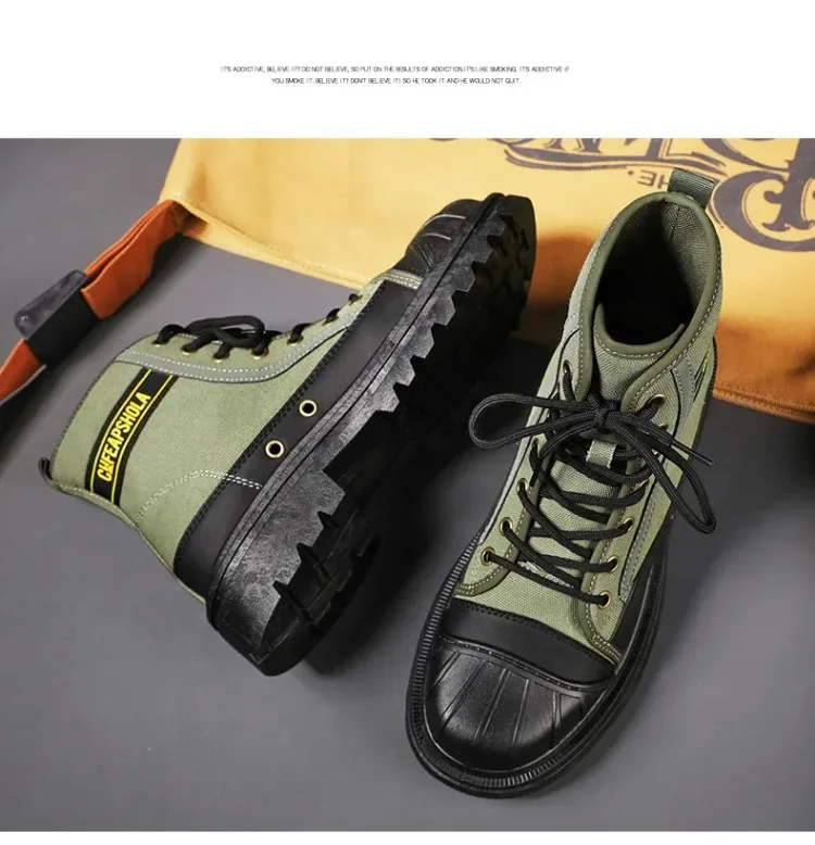 Nuovi stivali da lavoro anticollisione alti da uomo primavera e autunno stivali da moto a testa grande scarpe di tela stivali moda coturno