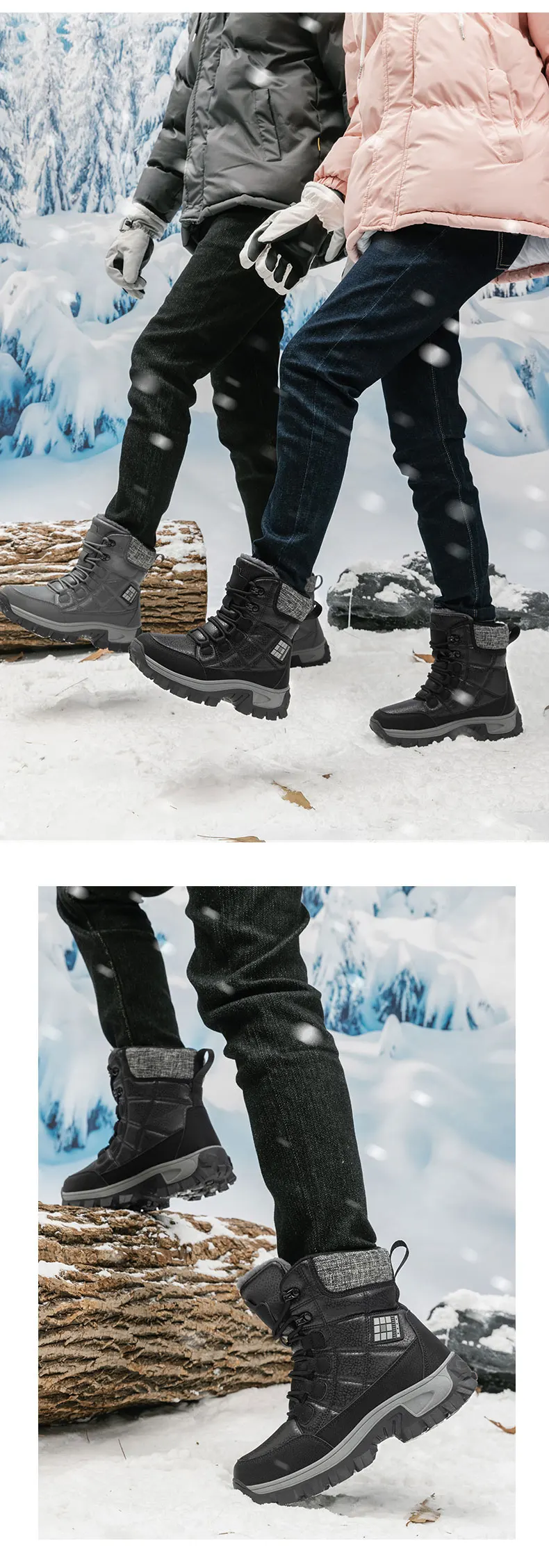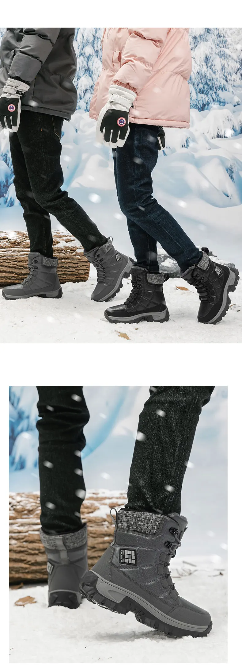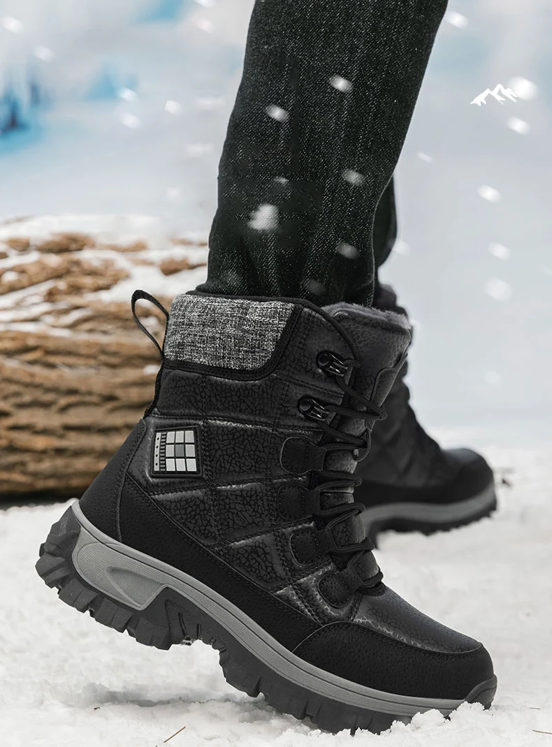 Nuovi stivali da neve da uomo in peluche caldo Stivali da uomo alti con lacci Stivaletti invernali impermeabili Stivali da trekking da uomo antiscivolo per esterni