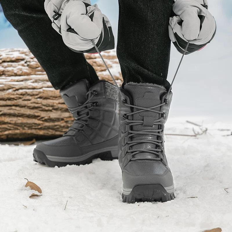 Nuovi stivali da neve da uomo in peluche caldo Stivali da uomo alti con lacci Stivaletti invernali impermeabili Stivali da trekking da uomo antiscivolo per esterni