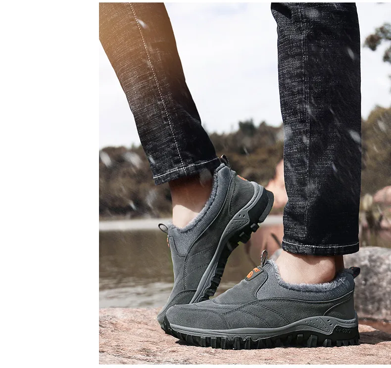 Nuovi stivali da neve da uomo invernali all’aperto Stivali da passeggio in peluche caldi Mocassini da uomo Scarpe da ufficio Escursionismo Stivali da lavoro da uomo in gomma antiscivolo