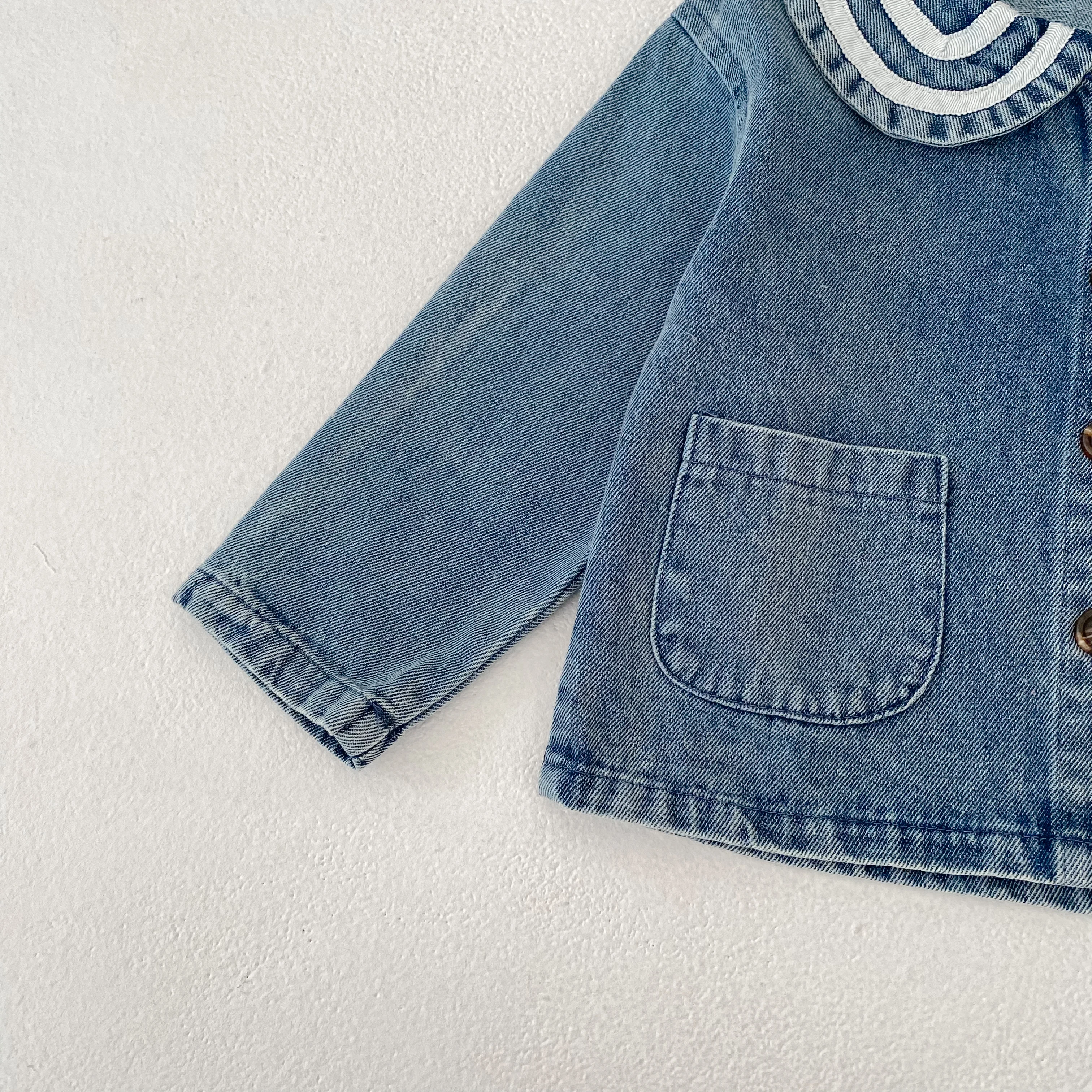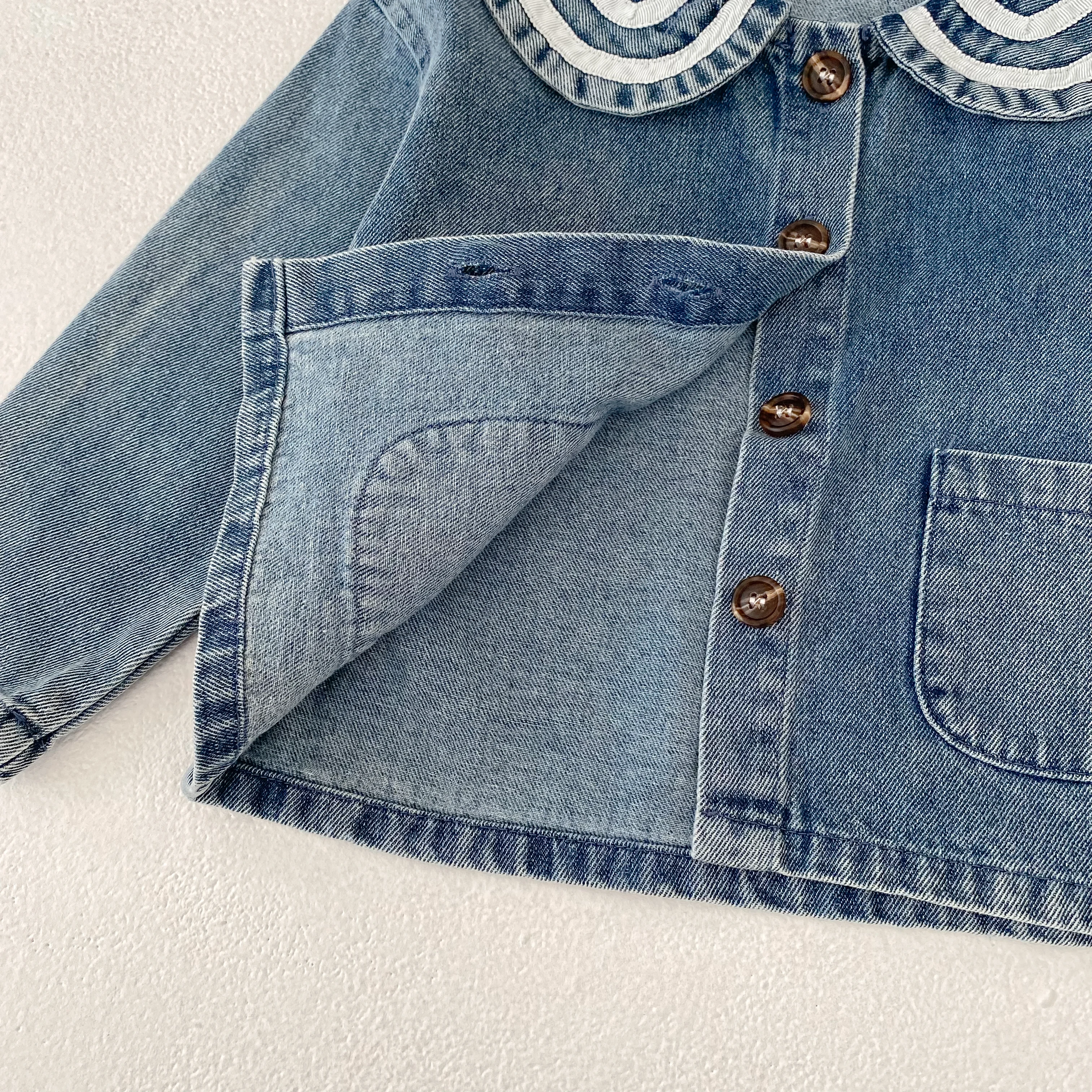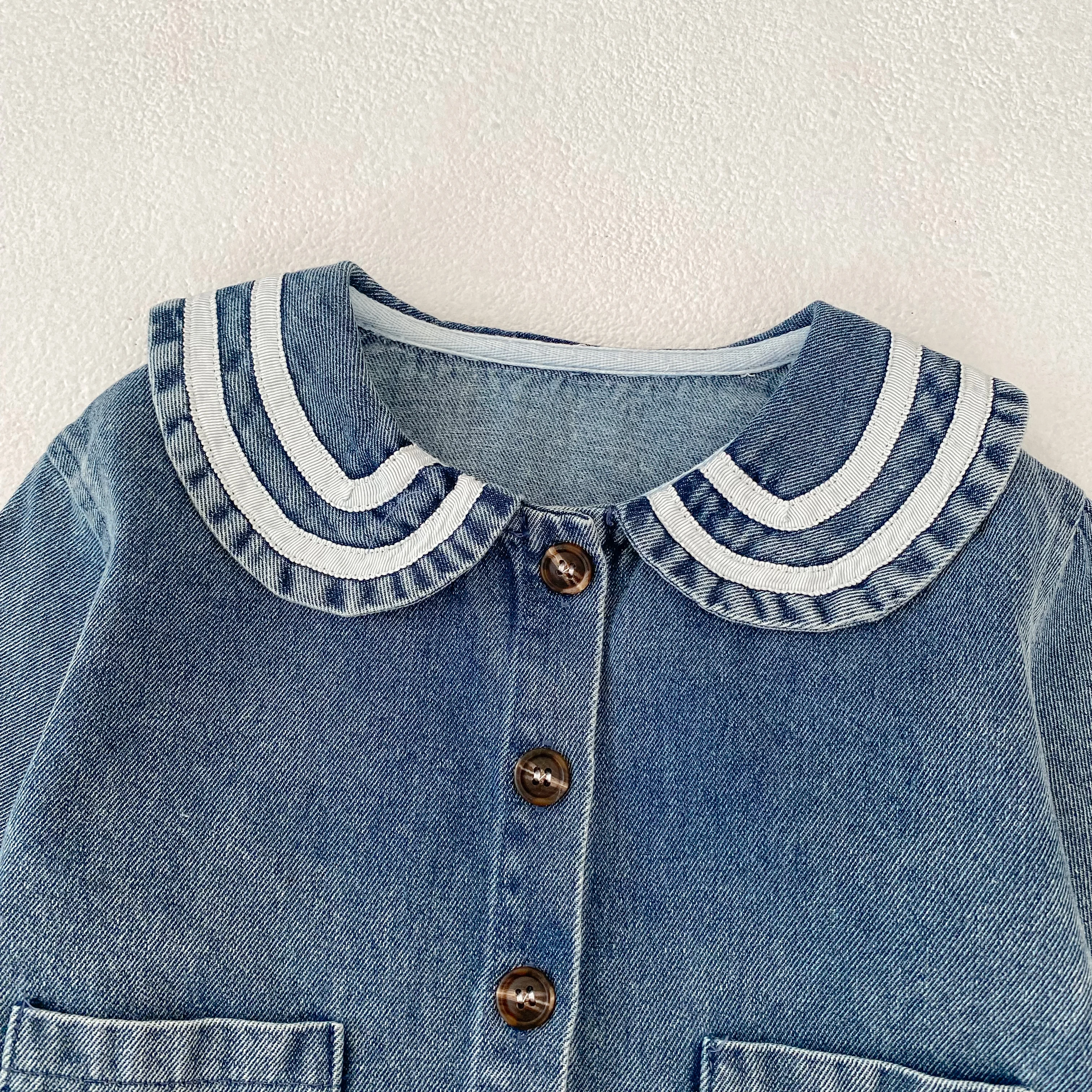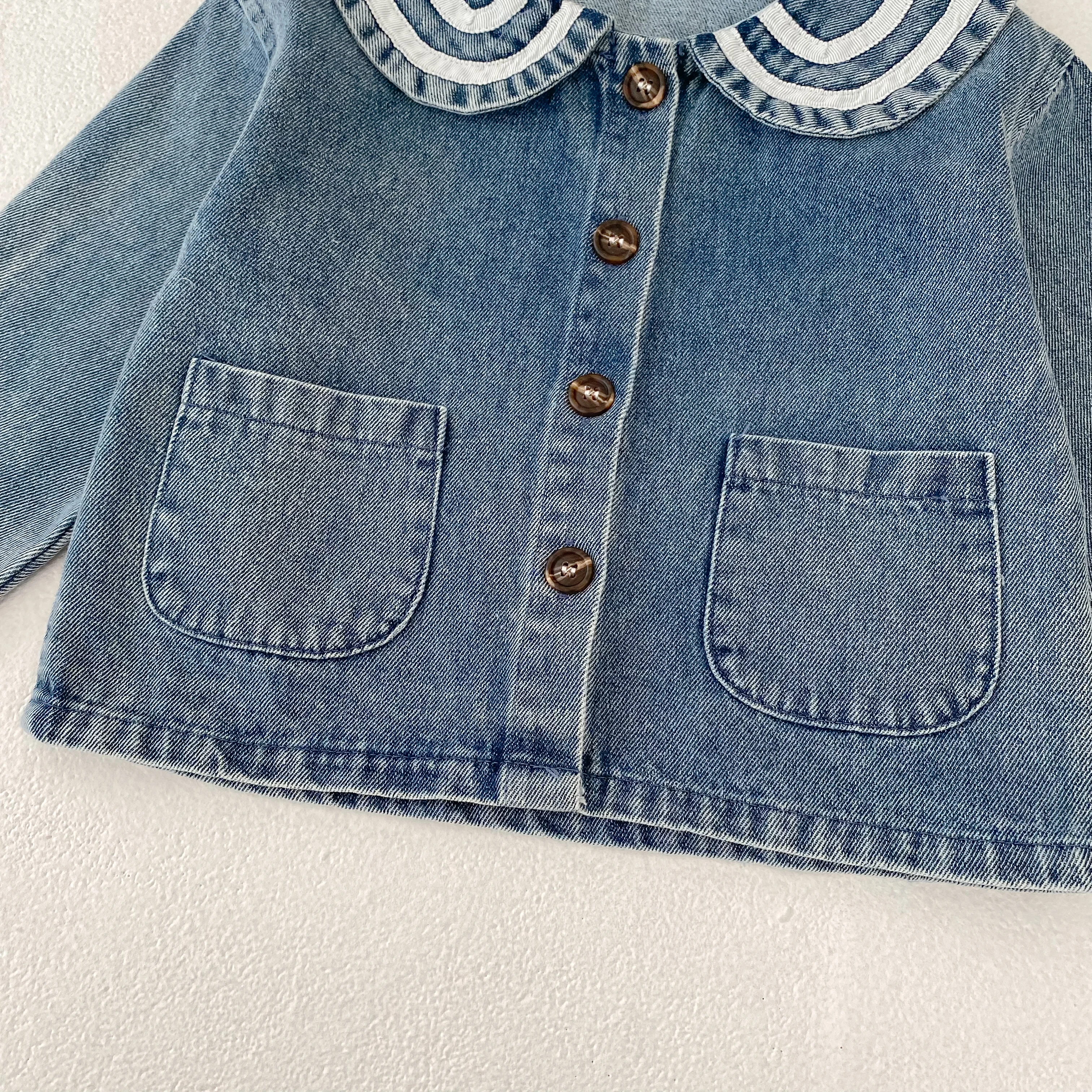 Nuovi vestiti autunnali per bambini da 0 a 3 anni, dolce giacca di jeans a maniche lunghe con colletto per bambola,