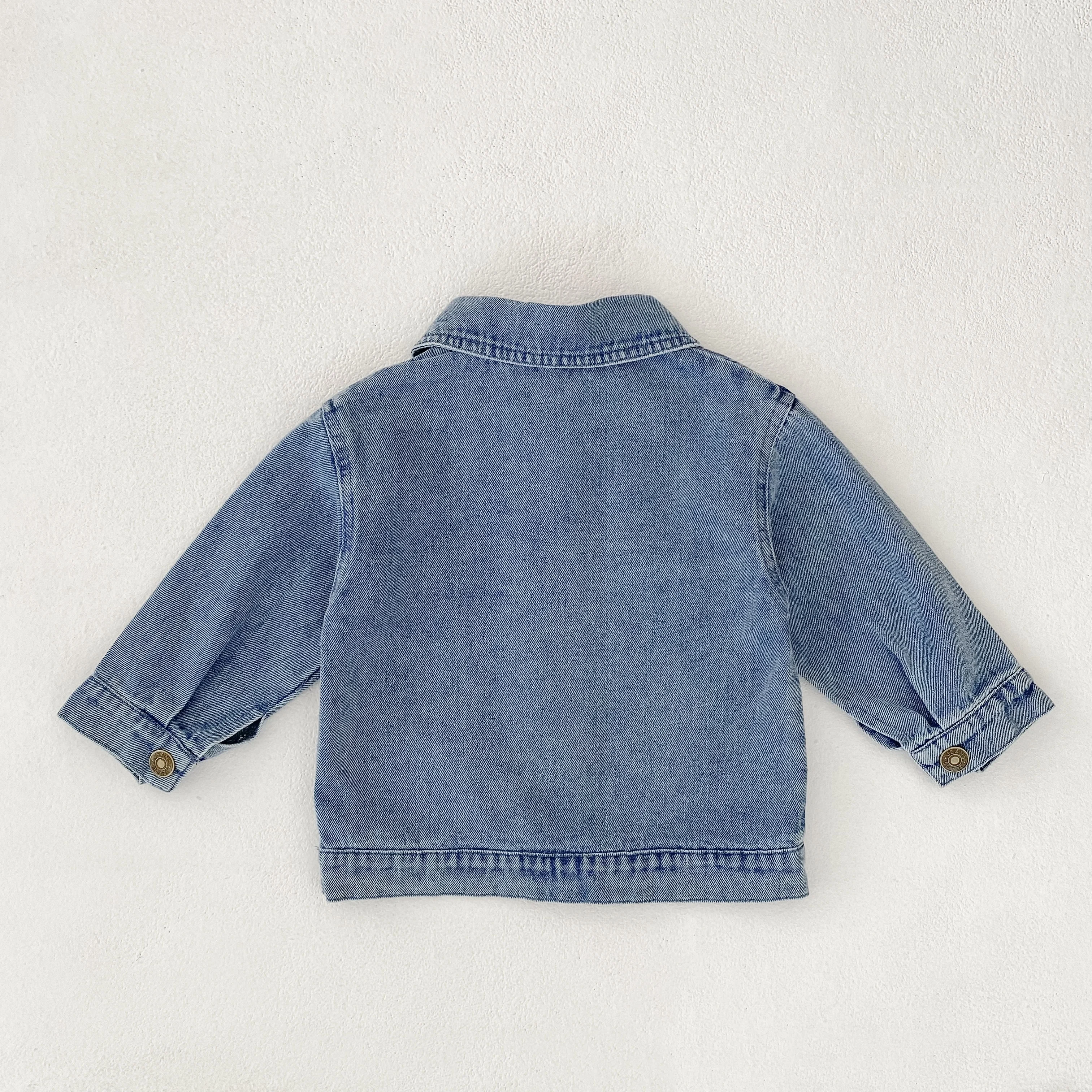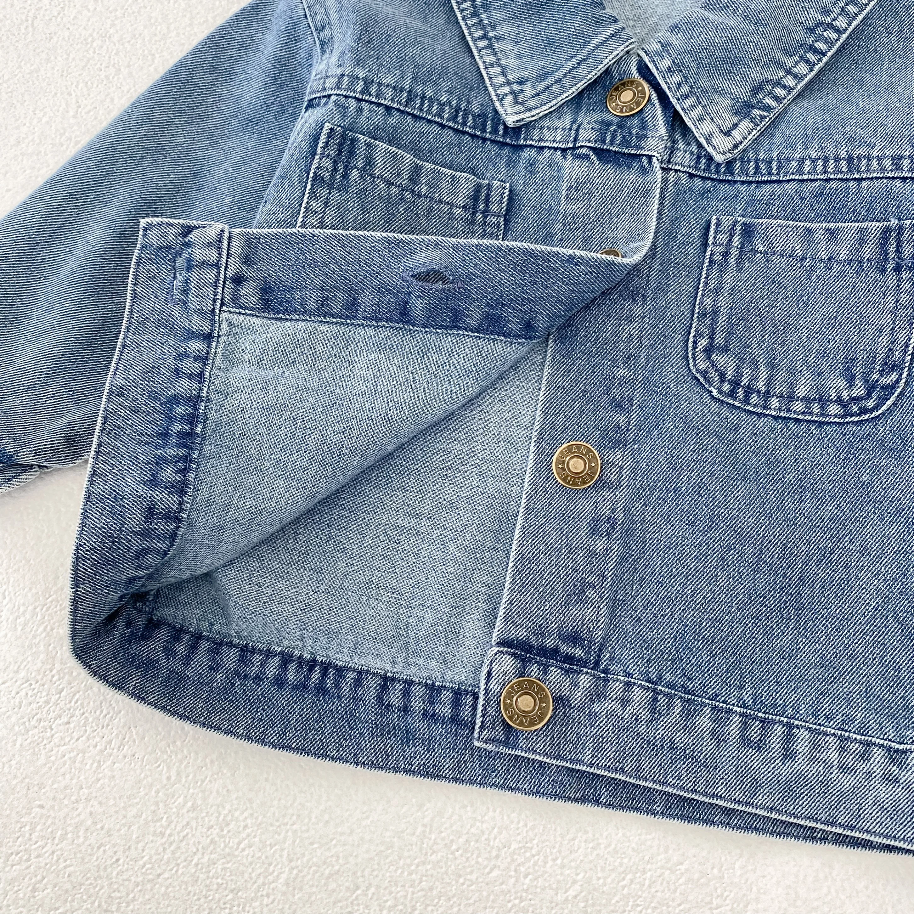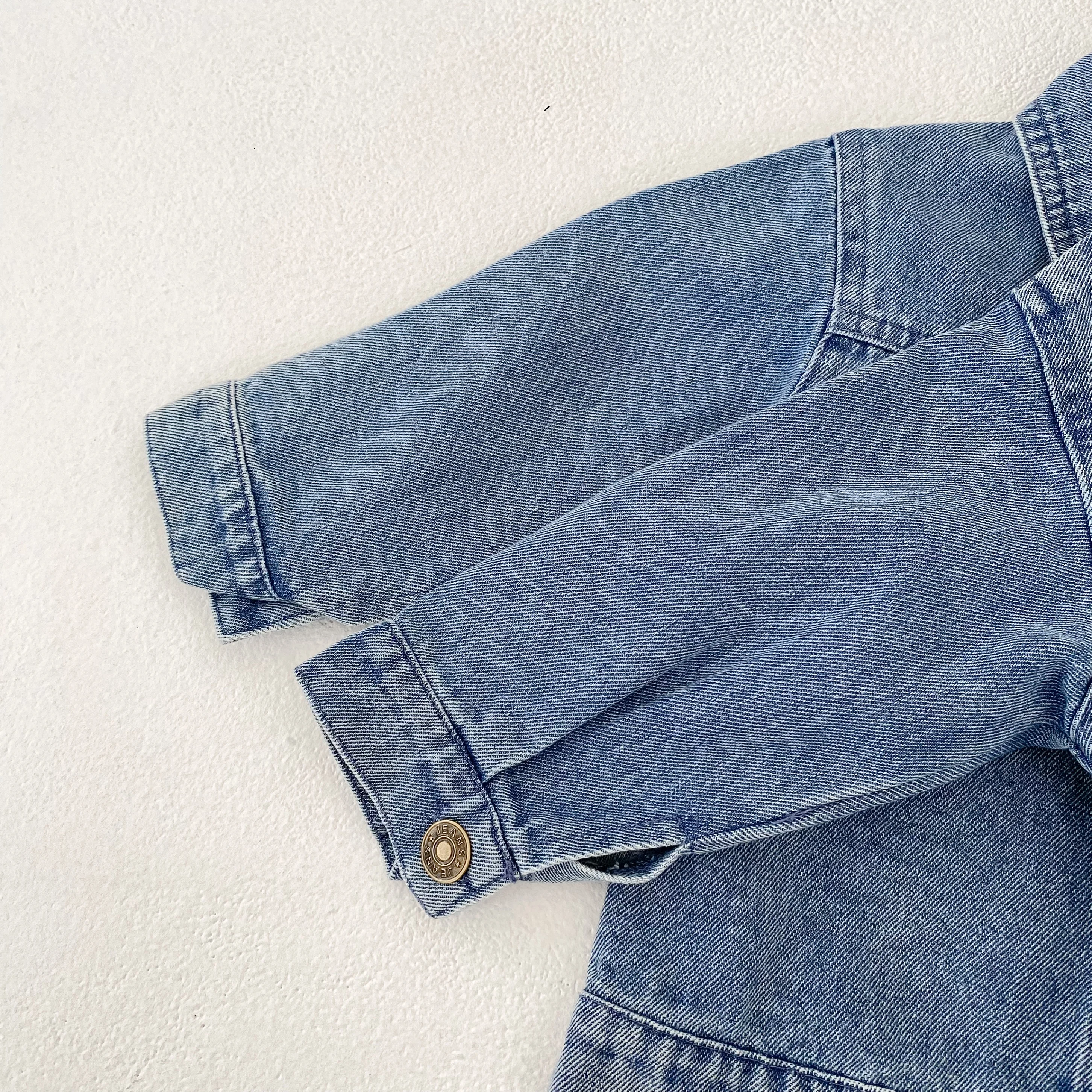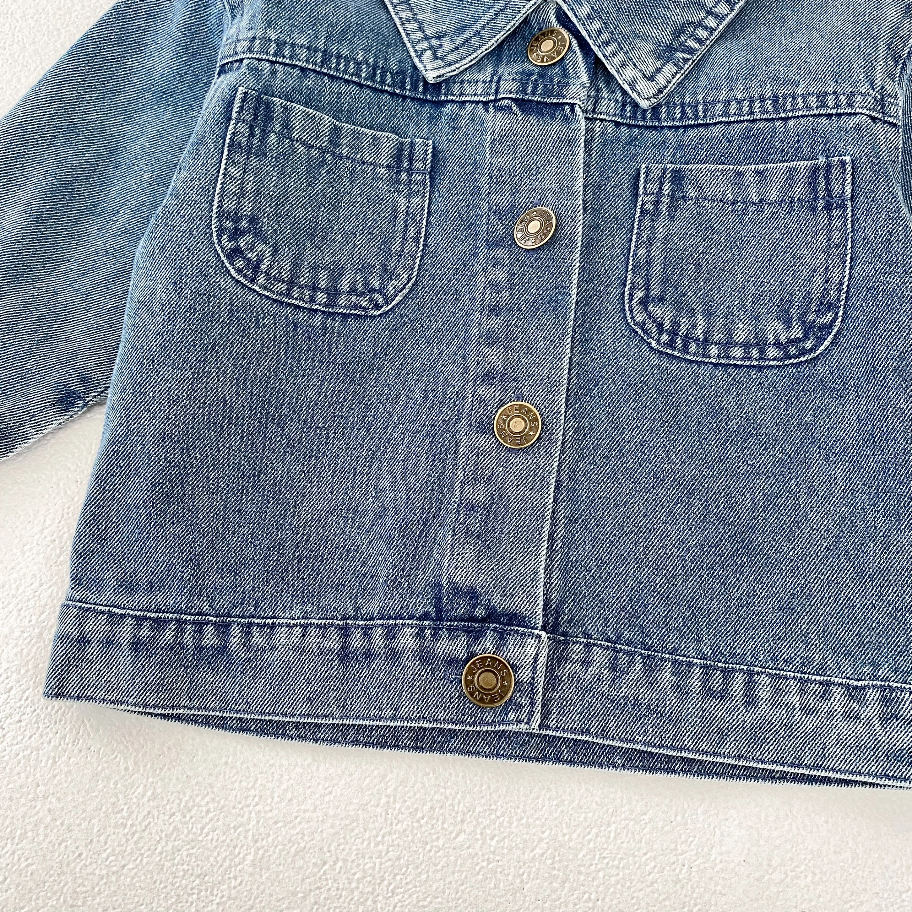 Nuovi vestiti autunnali per neonati di età compresa tra 0 e 3 anni, giacca a maniche lunghe in denim con doppia tasca