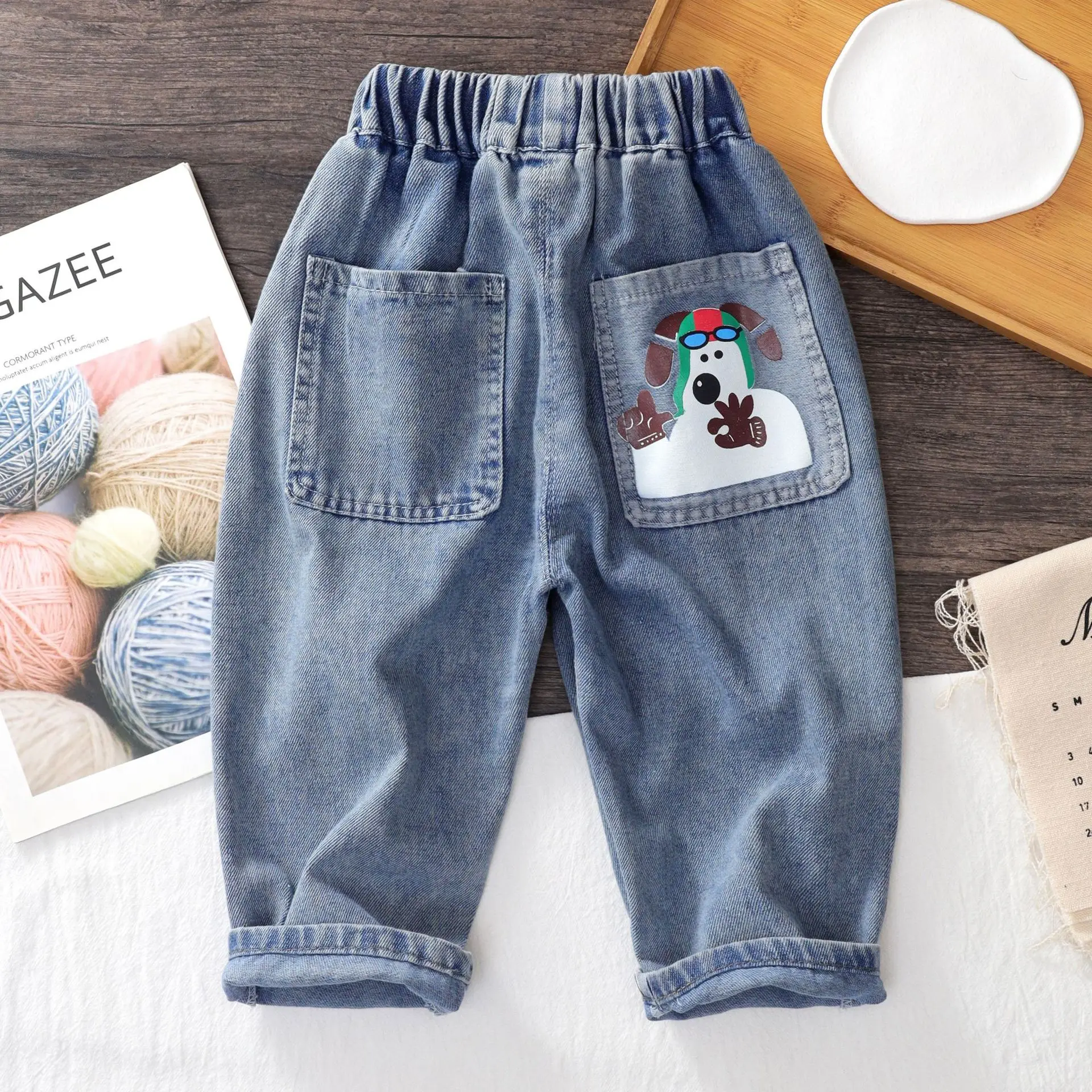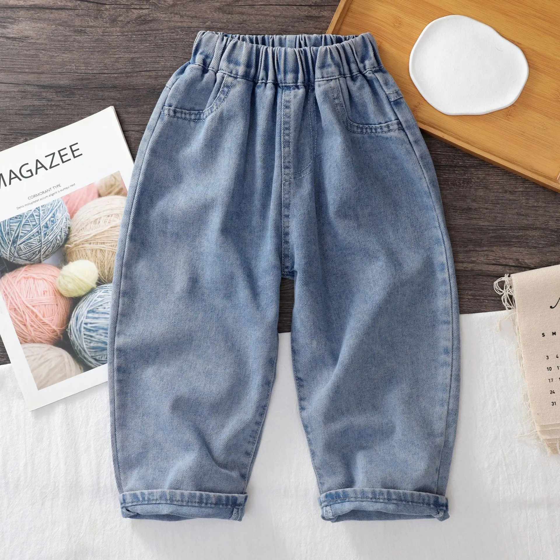 New children’s clothing, cool and stylish, children’s spring pants, boys’ jeans, baby’s fashionable and stylish, loose and casual straight leg pants