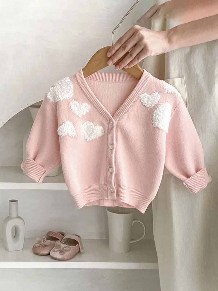 Nuovi vestiti primaverili per bambini da 0 a 3 anni, squisito maglione a maniche lunghe ricamato e cardigan per bambine