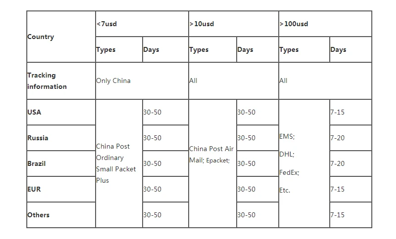 *Tese spese sono normalmente raccolte dalla azienda di trasporto (spedizione) di consegna o quando scegliere l’articolo: non confusa per spese di spedizione aggiuntive