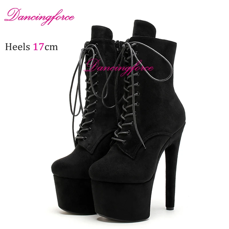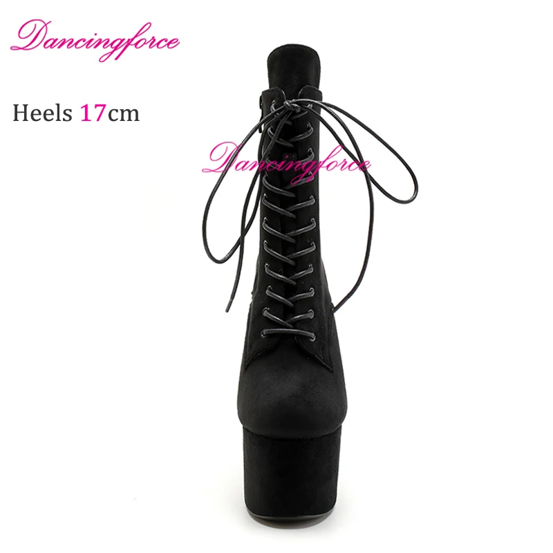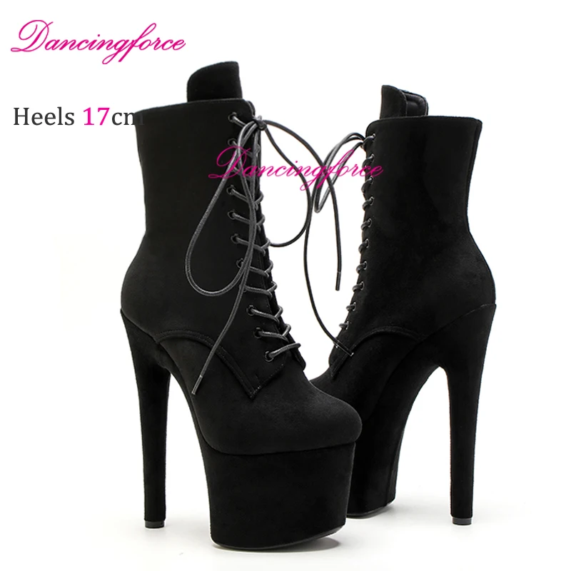 Nuovo 17 CM 7 “Gamoscio Opaco Pole Dance Piattaforma Stivaletti Corti Sexy Testa Rotonda Tacchi Alti Discoteca Modello Passerella Scarpe In magazzino