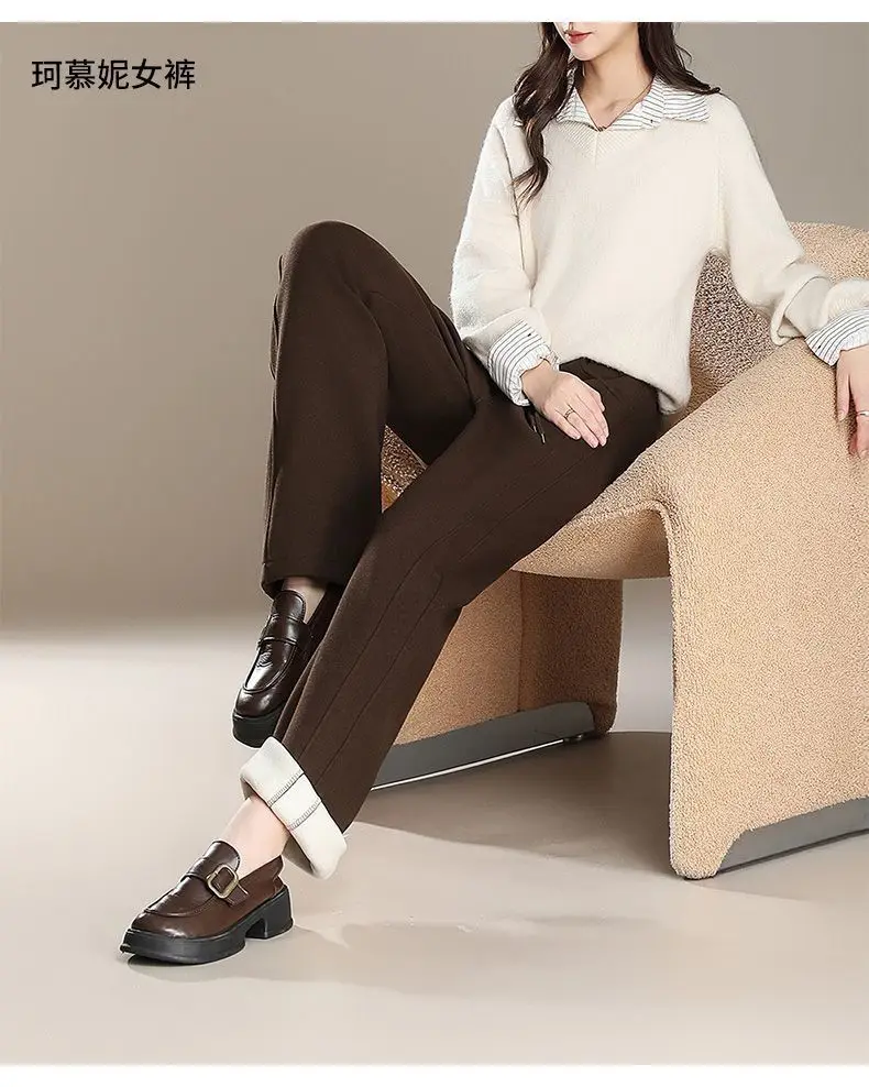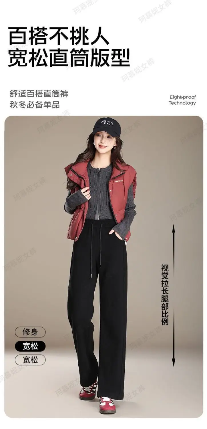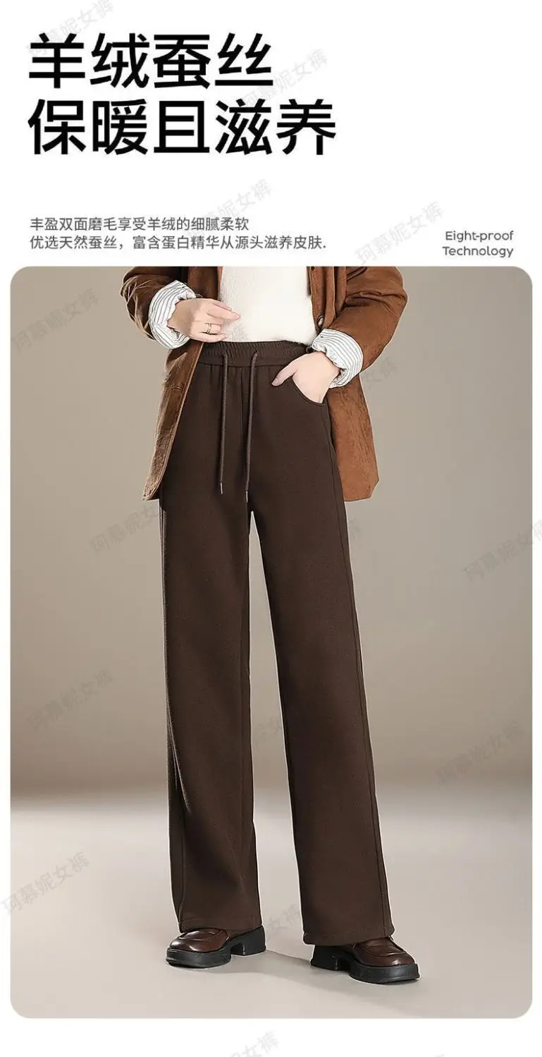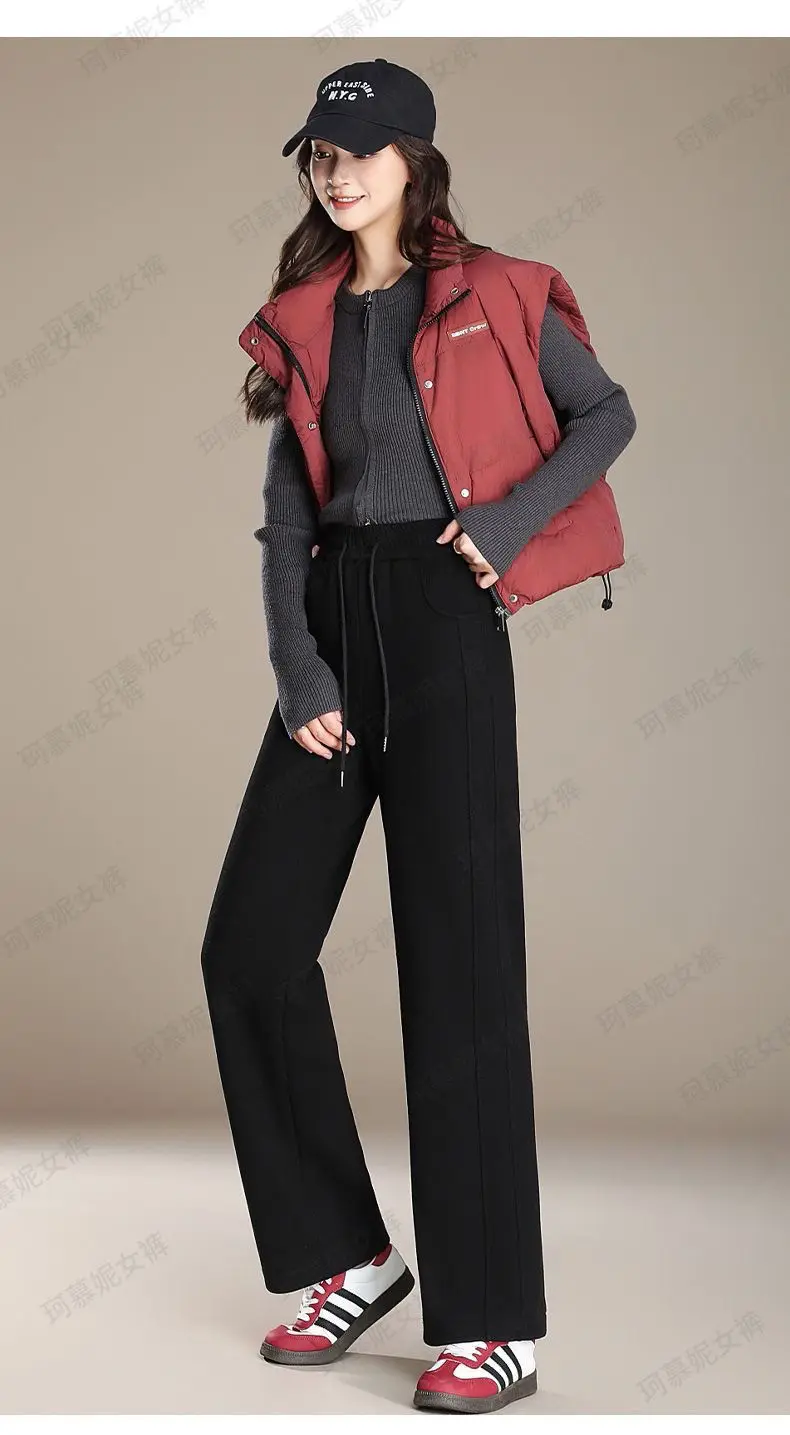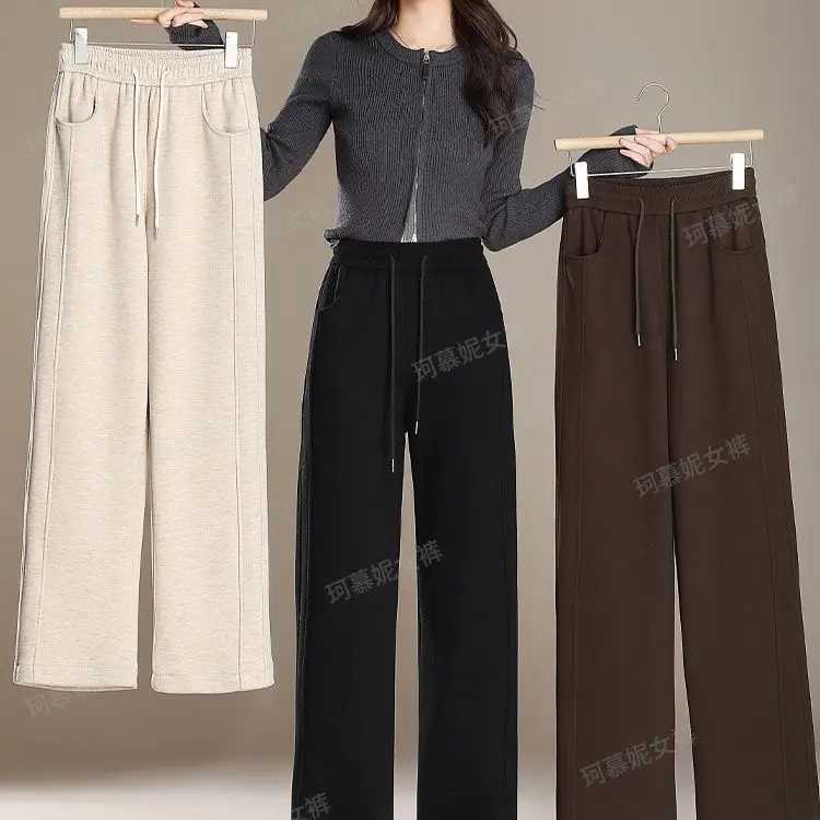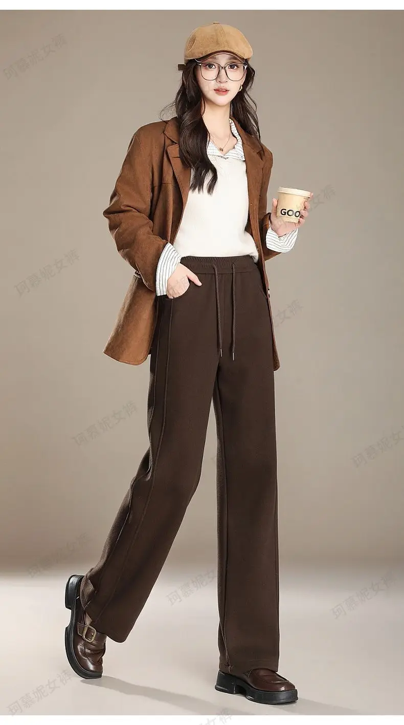 Nuovo 2025 pantaloni a gamba larga stretti da donna dritti larghi alla moda a vita alta casual autunno e inverno