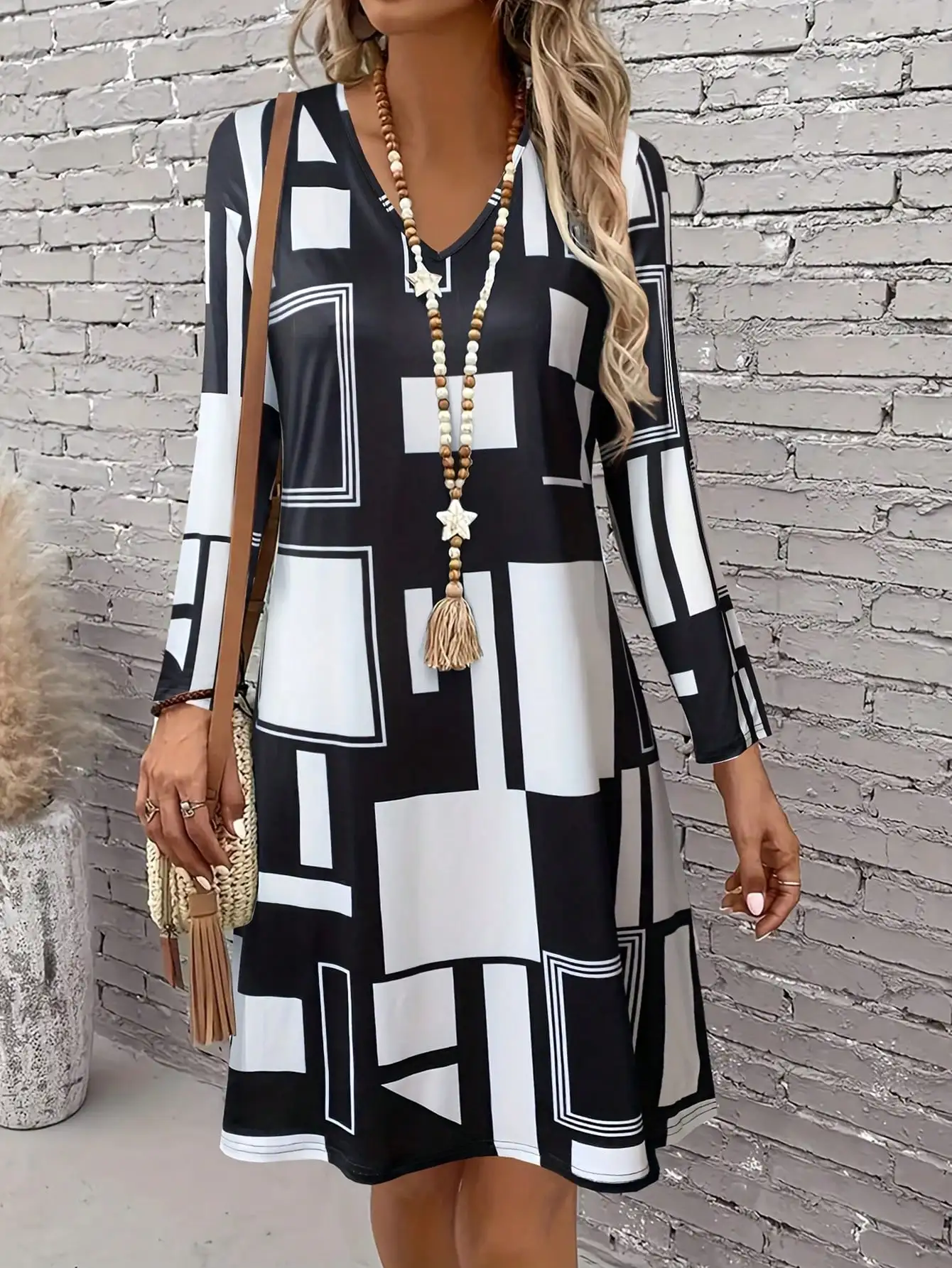 L’abito presenta un motivo geometrico unico, aggiunge un tocco di eleganza e sofisticazione al tuo armadio.