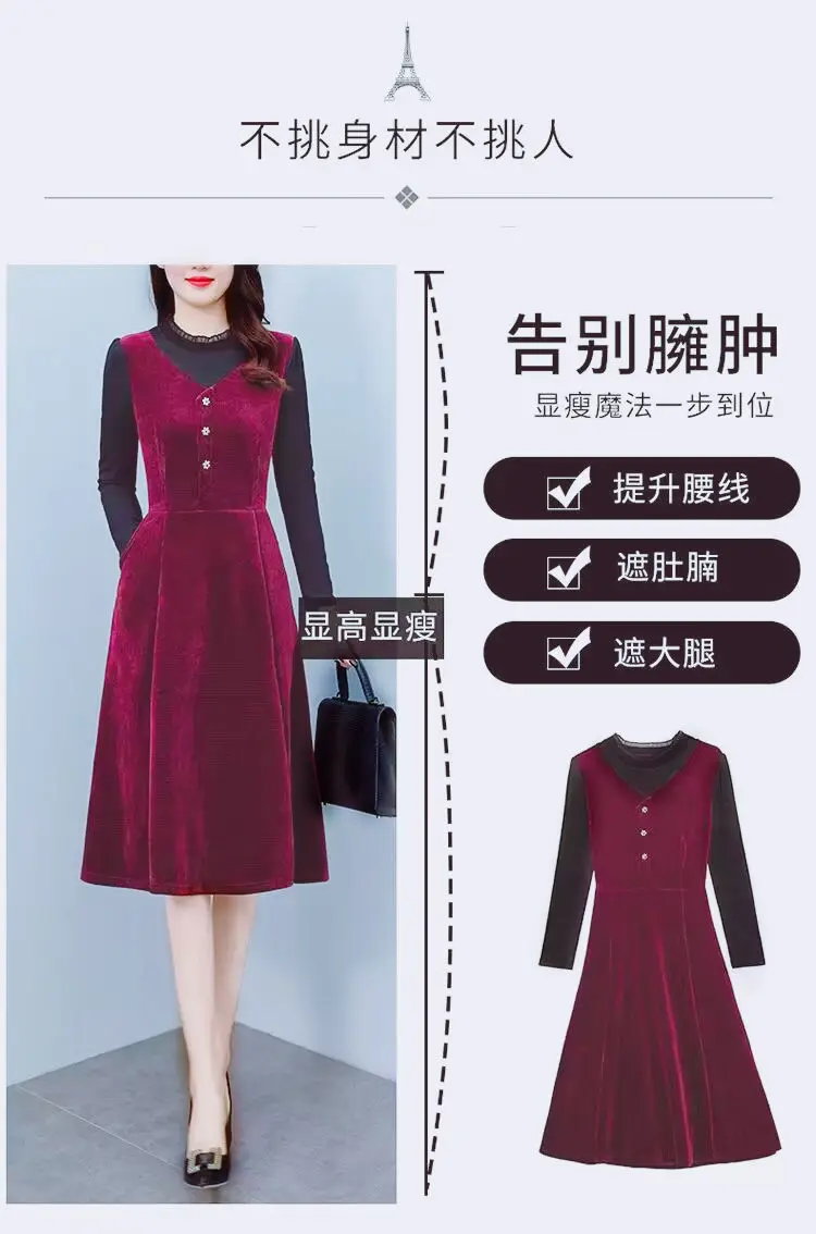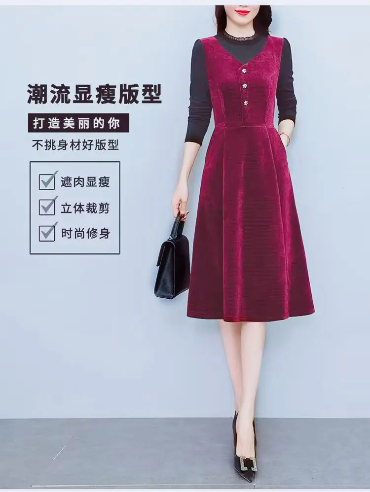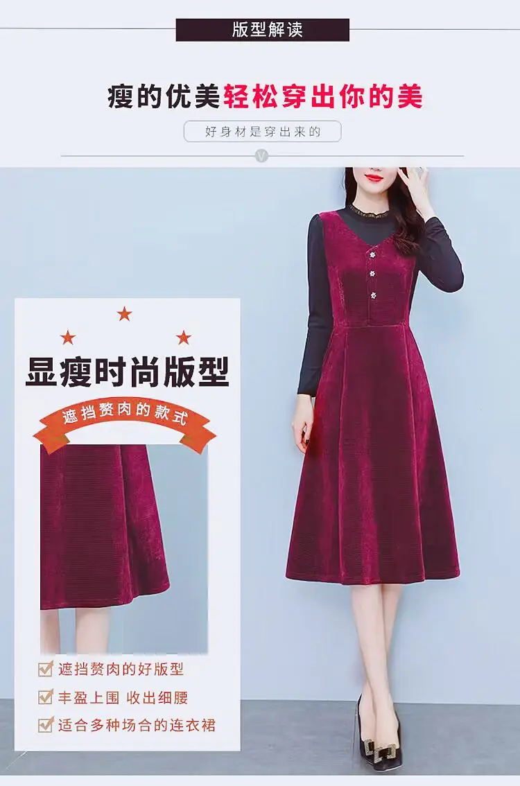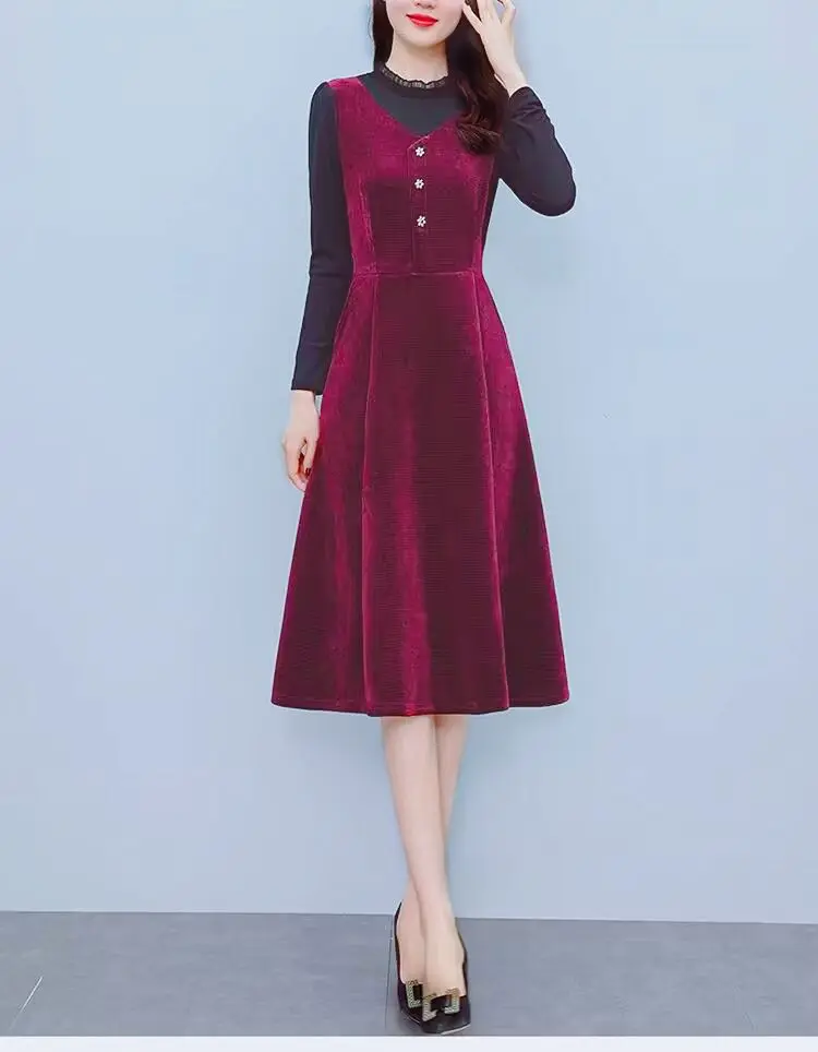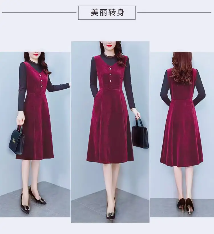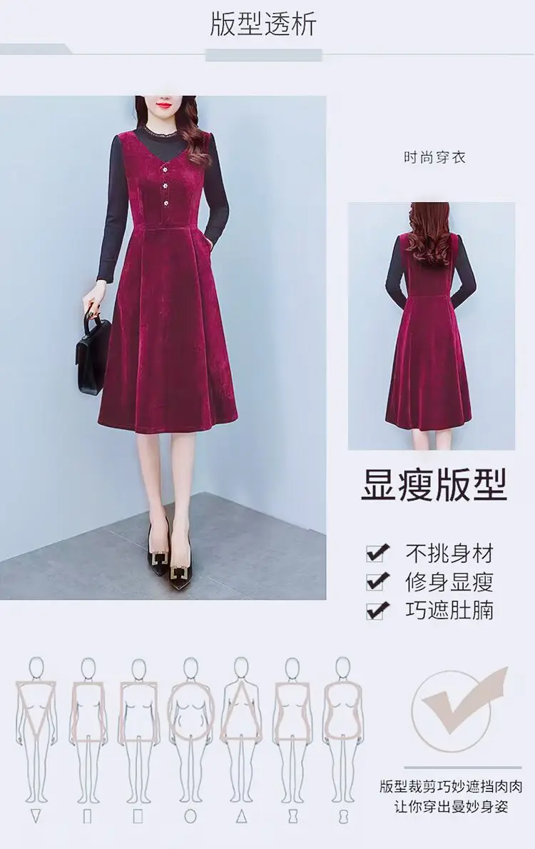 Nuovo abito in due pezzi falso di fascia alta in velluto dorato sottile moda autunno e inverno