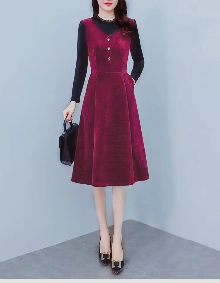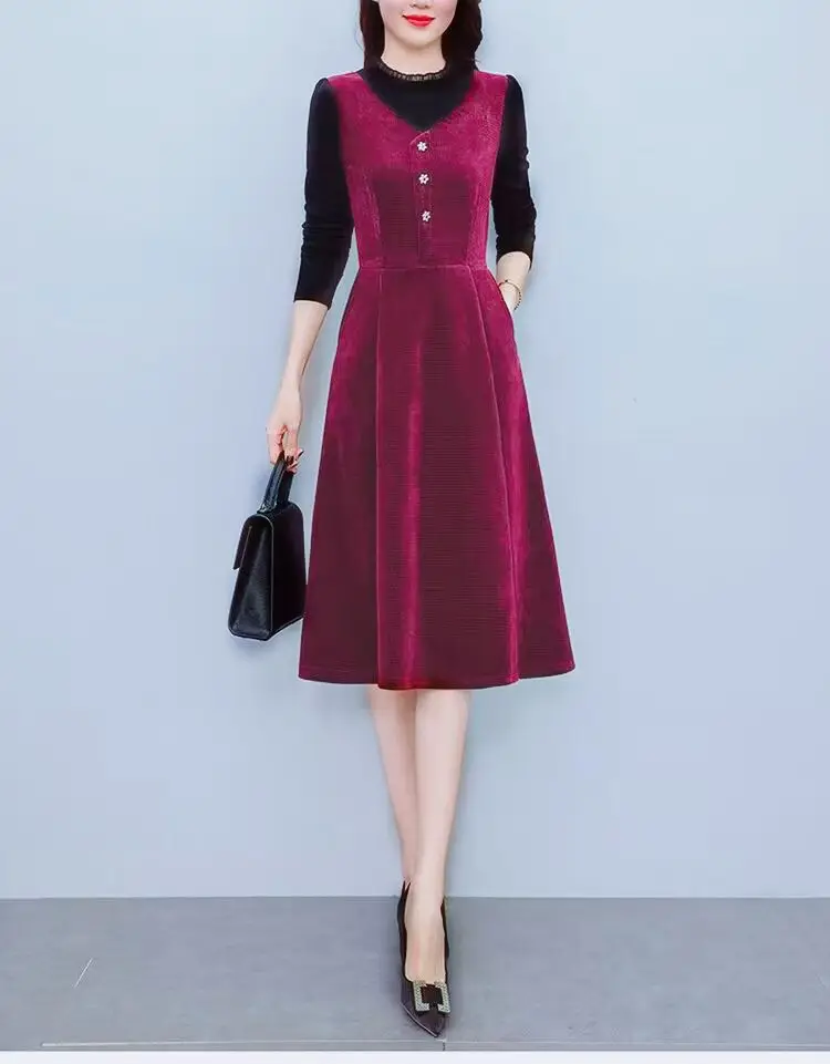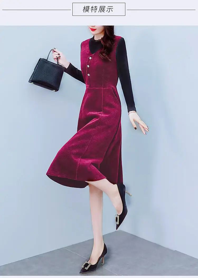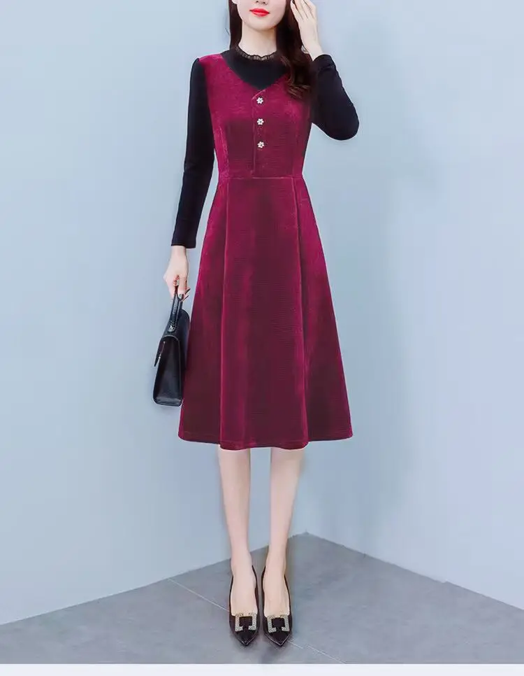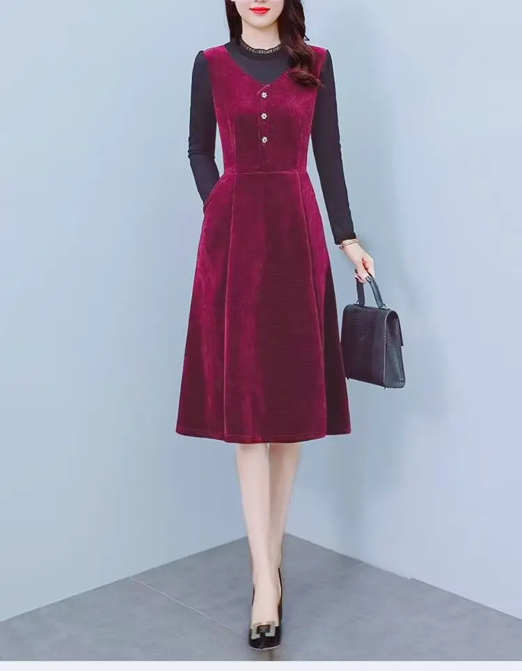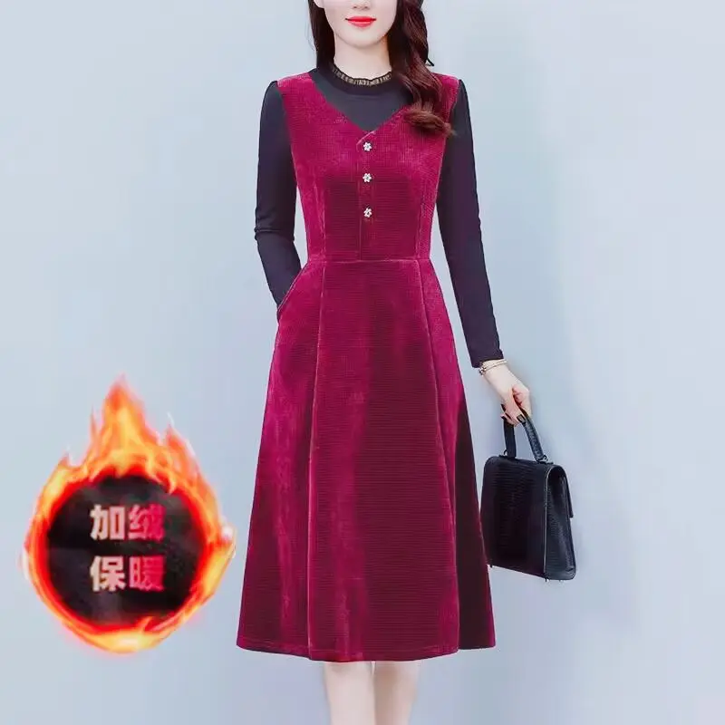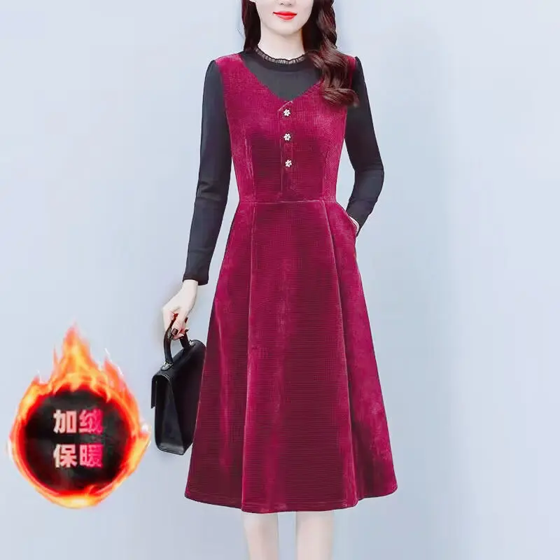Nuovo abito lungo ampio autunno inverno donna felpa in velluto abito casual moda donna solido O collo abito da festa a maniche lunghe