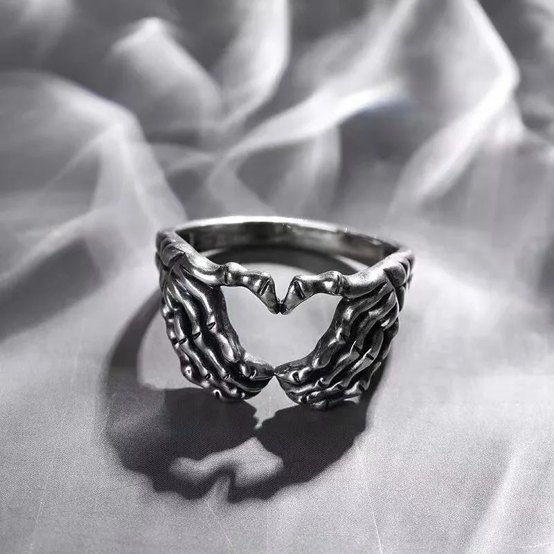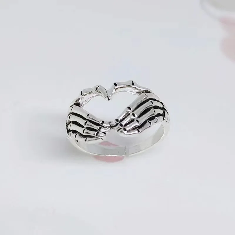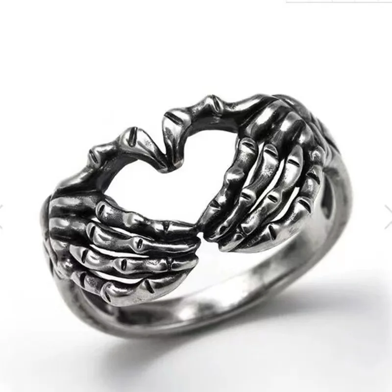 Nuovo anello da donna a forma di cuore con teschio retrò Moda uomo e donna Stile punk Anello con cuore con teschio hip-hop Regali per gioielli da festaDisponibilità: 12 disponibili