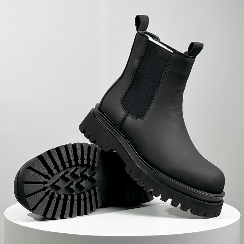 Nuovo arrivo uomo in pelle stivali Chelsea fondo spesso punta tonda stivaletti abbigliamento invernale Botas scarpe da neve calde in peluche scarpe alte 1Nuovo arrivo uomo in pelle stivali Chelsea fondo spesso punta tonda stivaletti abbigliamento invernale Botas scarpe da neve calde in peluche scarpe alte