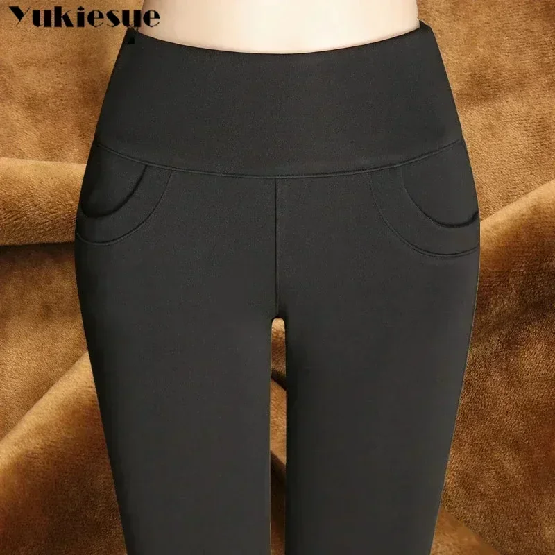 Nuovo autunno inverno Plus Leggings caldi in velluto spesso pantaloni elastici a vita alta pantaloni Casual da donna Slim da donna pantaloni femminili 1Nuovo autunno inverno Plus Leggings caldi in velluto spesso pantaloni elastici a vita alta pantaloni Casual da donna Slim da donna pantaloni femminili