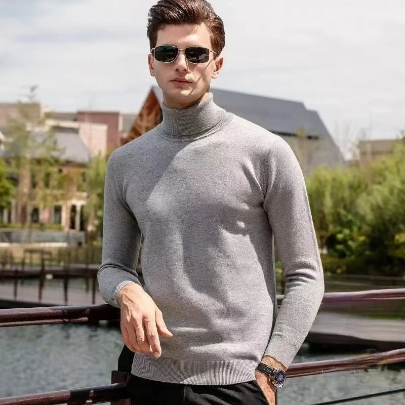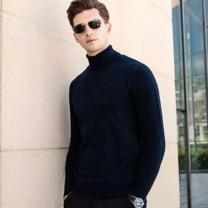Nuovo Autunno Inverno uomo collo alto pullover maglione lavorato a maglia 100% pura lana a maniche lunghe allentato tinta unita business casual Warmtop 1Nuovo Autunno Inverno uomo collo alto pullover maglione lavorato a maglia 100% pura lana a maniche lunghe allentato tinta unita business casual Warmtop