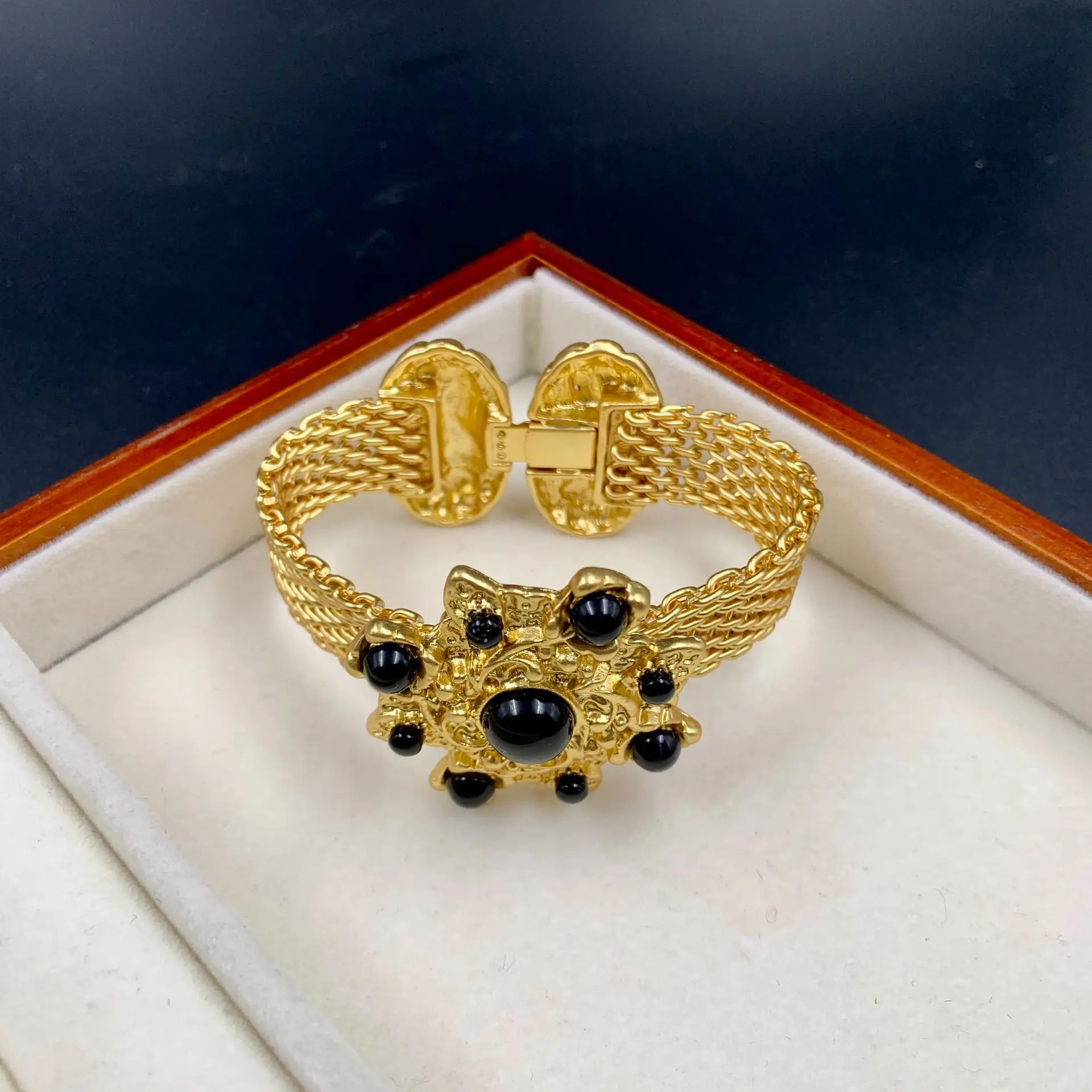 Nuovo braccialetto vintage in vetro rosso elegante del 2025, gioielli di moda di lusso leggeri per le donne