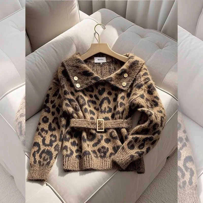 Nuovo caffè maglione pullover con stampa leopardata maglione in vita cappotto da donna maglione autunno inverno fondo lavorato a maglia cappotto morbido allentatoPensa ad un Regalo Unico e Utile per le Persone a te Vicine!! Regala un buono a partire da € 10,00 a € 300,00