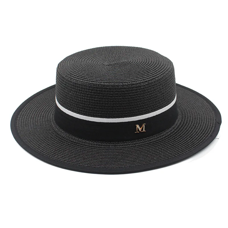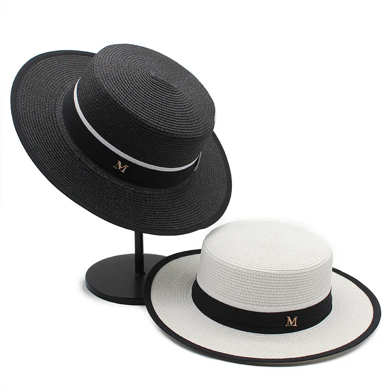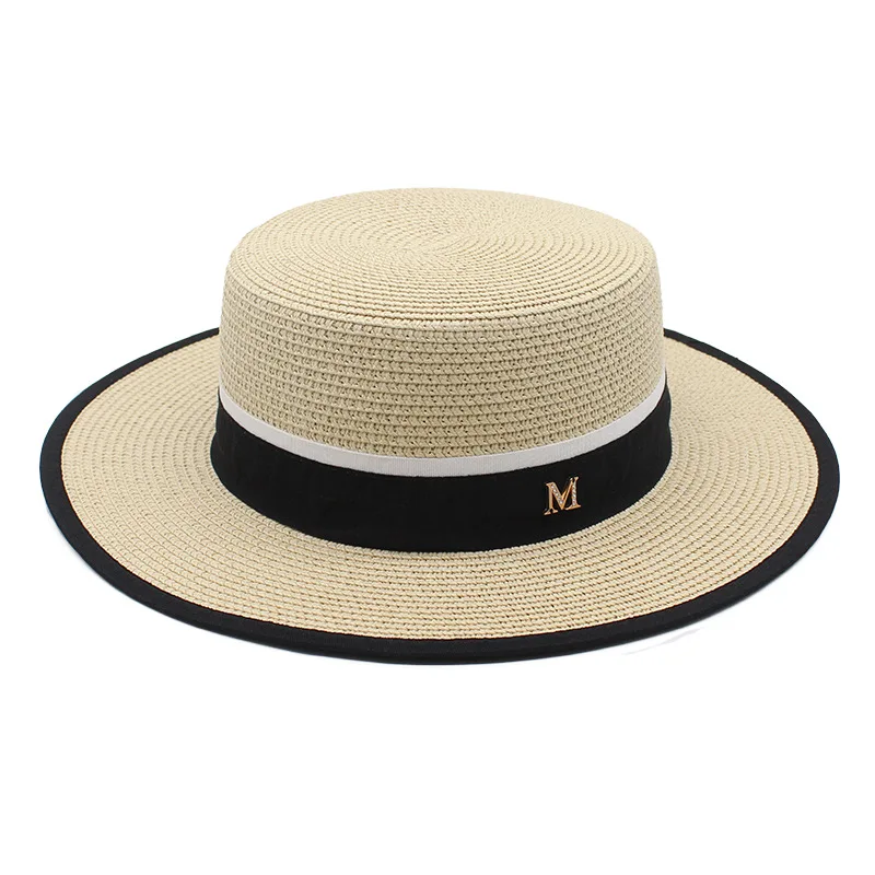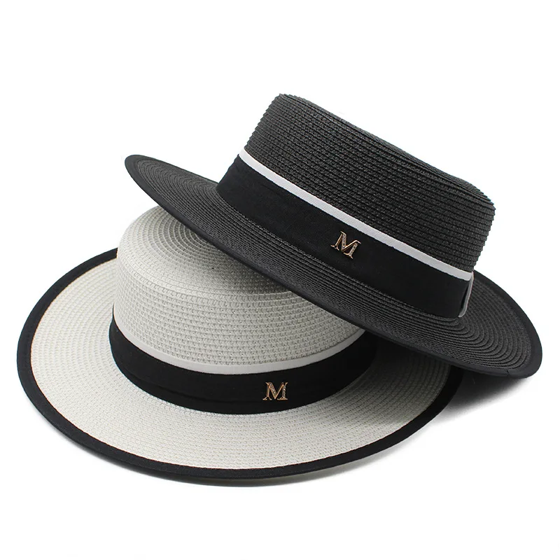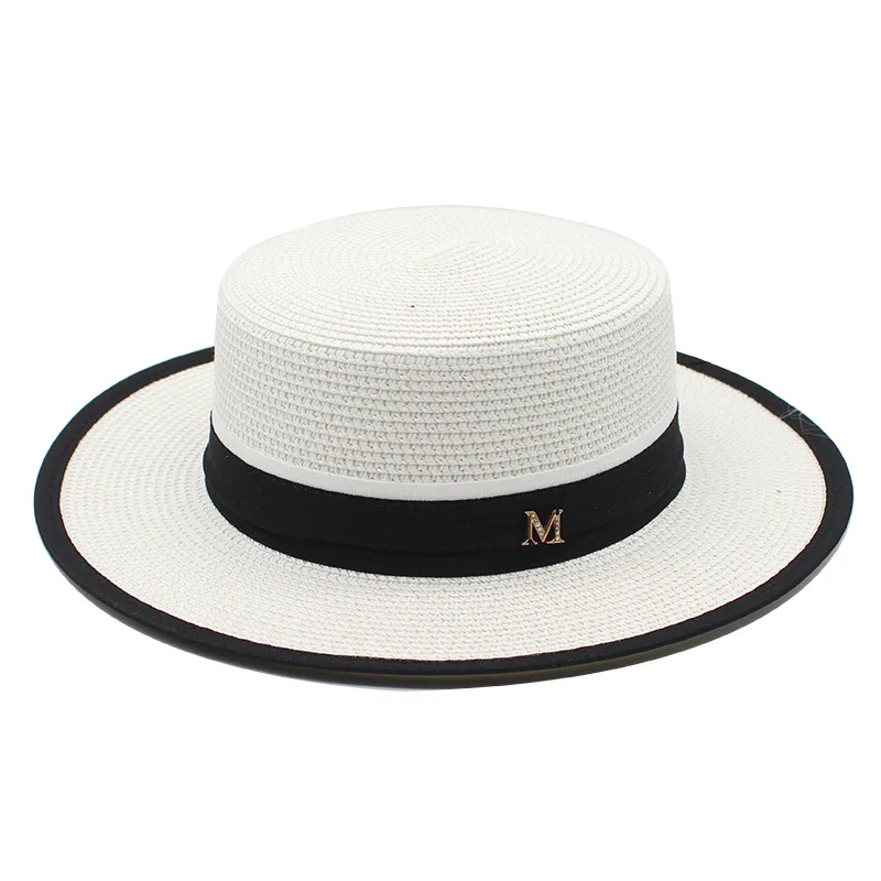 Nuovo cappello di paglia estivo Womrn moda femminile M lettera in metallo tesa piatta protezione solare cappelli da sole da spiaggia da viaggio all’apertoPensa ad un Regalo Unico e Utile per le Persone a te Vicine!! Regala un buono a partire da € 10,00 a € 300,00