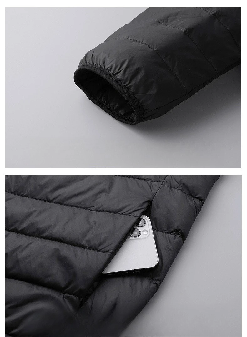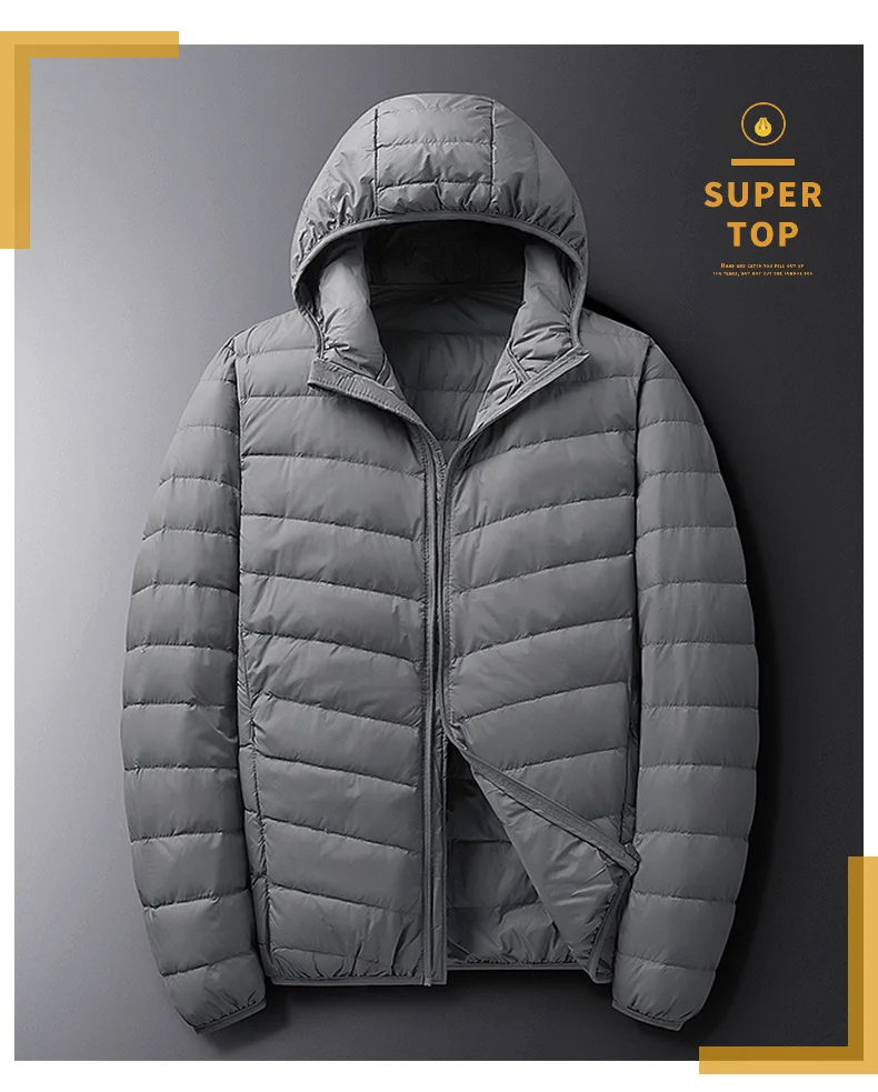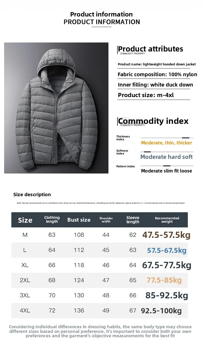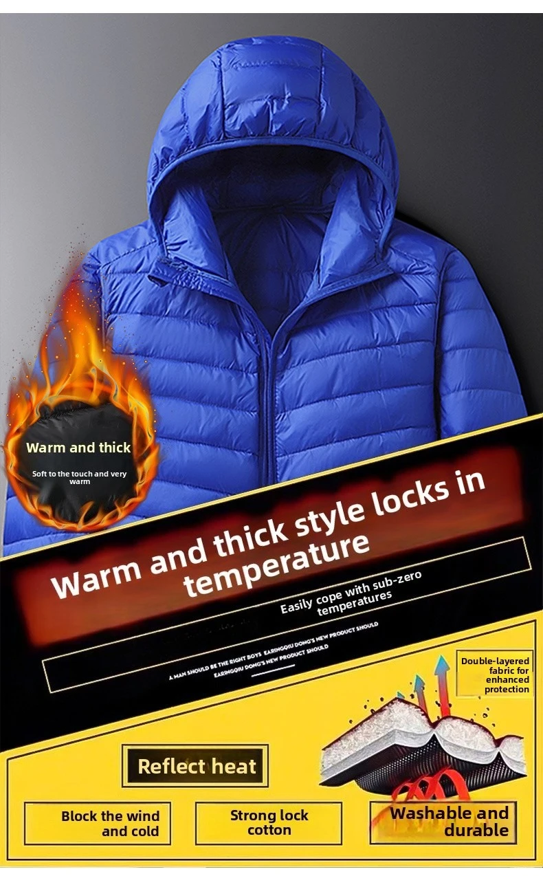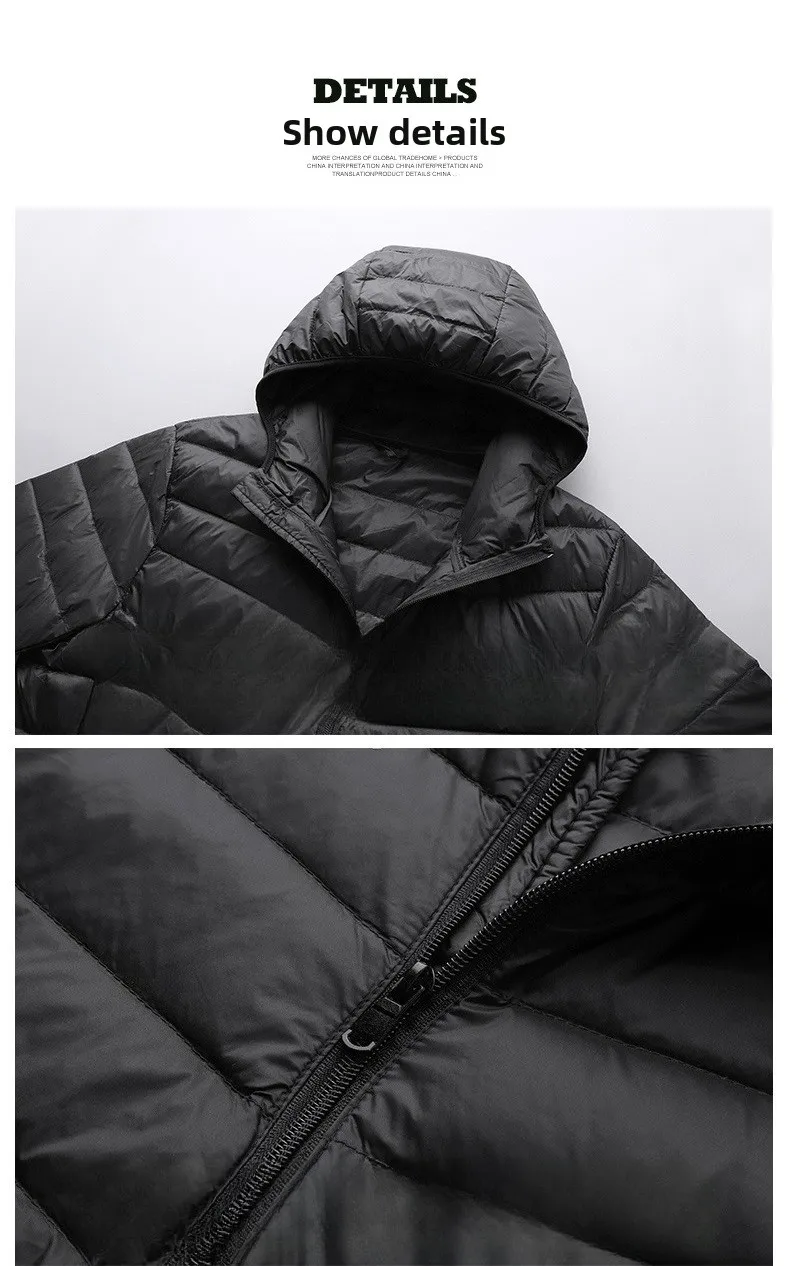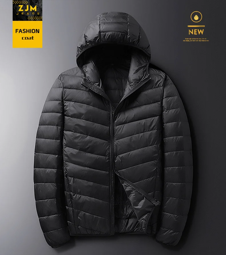 Nuovo cappotto con cappuccio da uomo alla moda autunnale e invernale, piumino leggero con lunghezza corta, trendy e versatile.