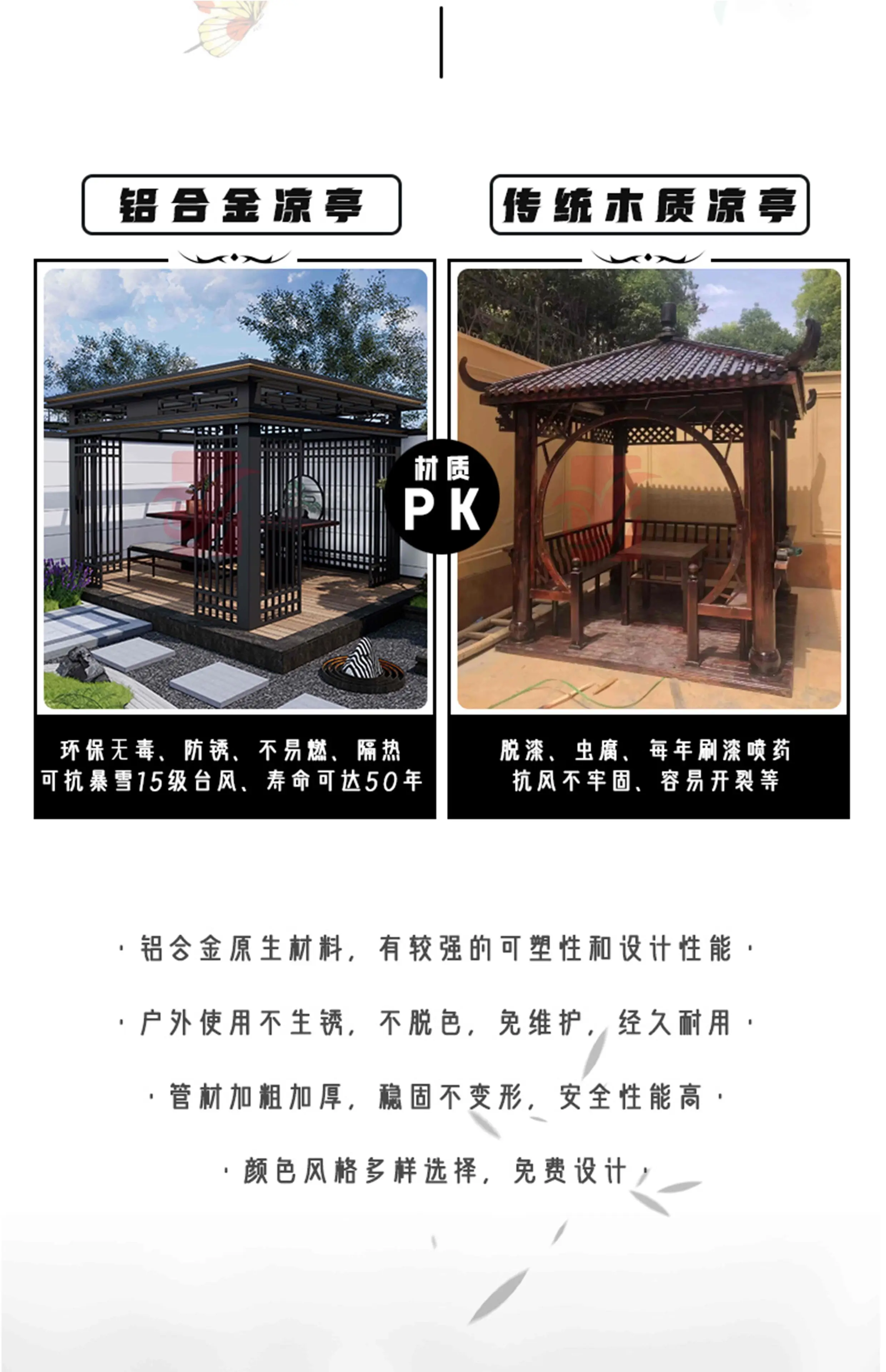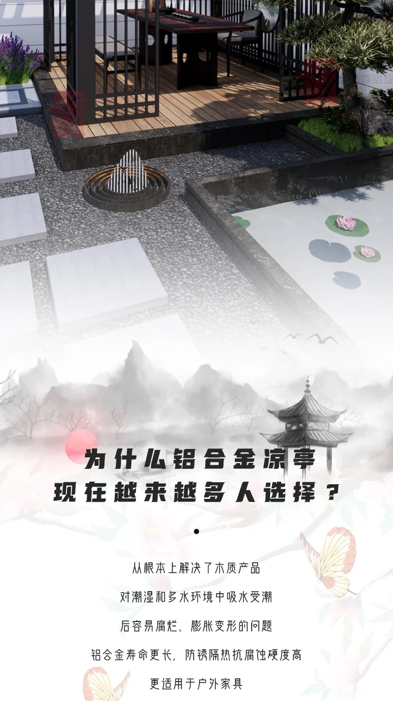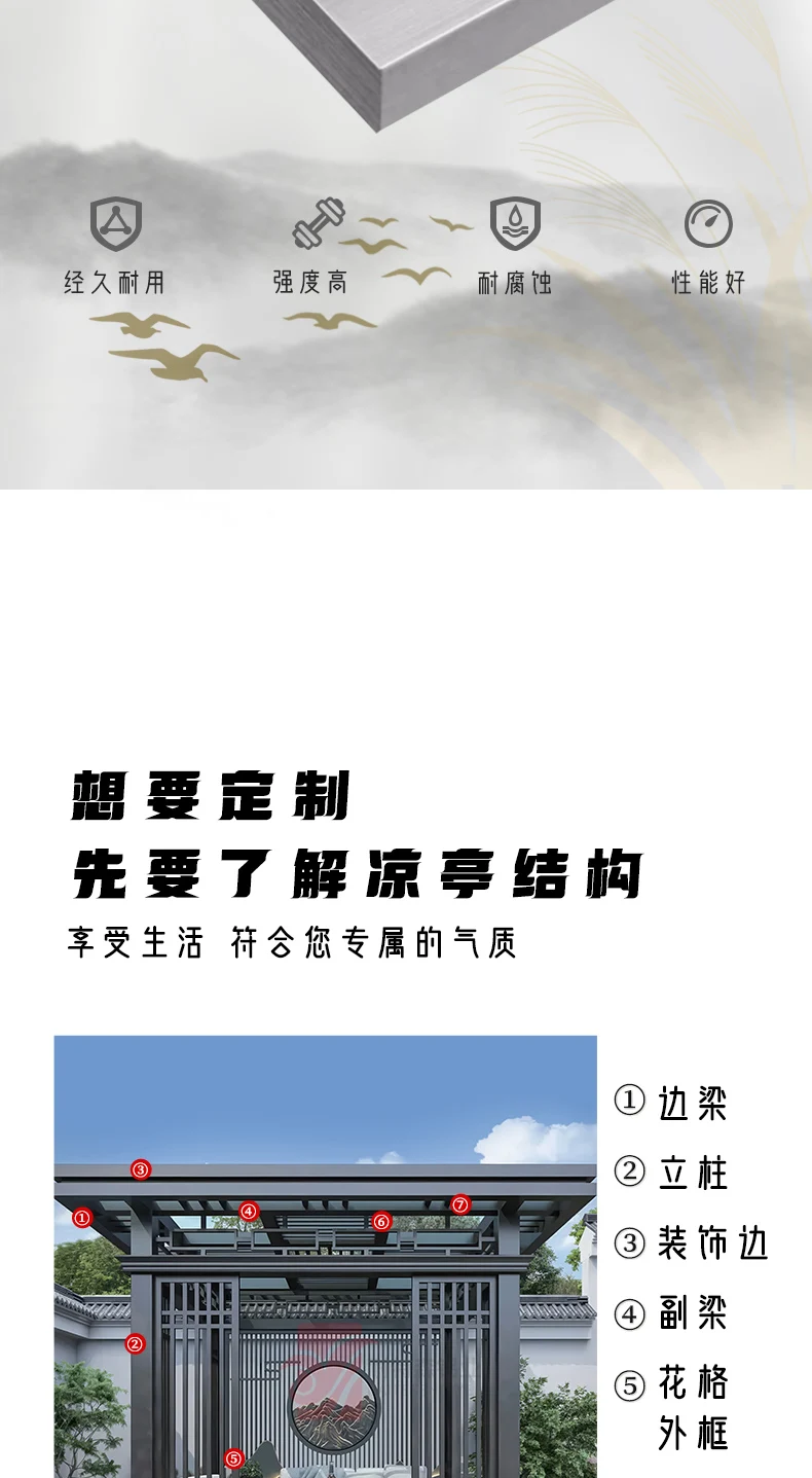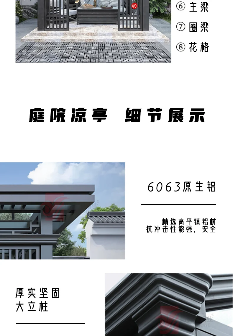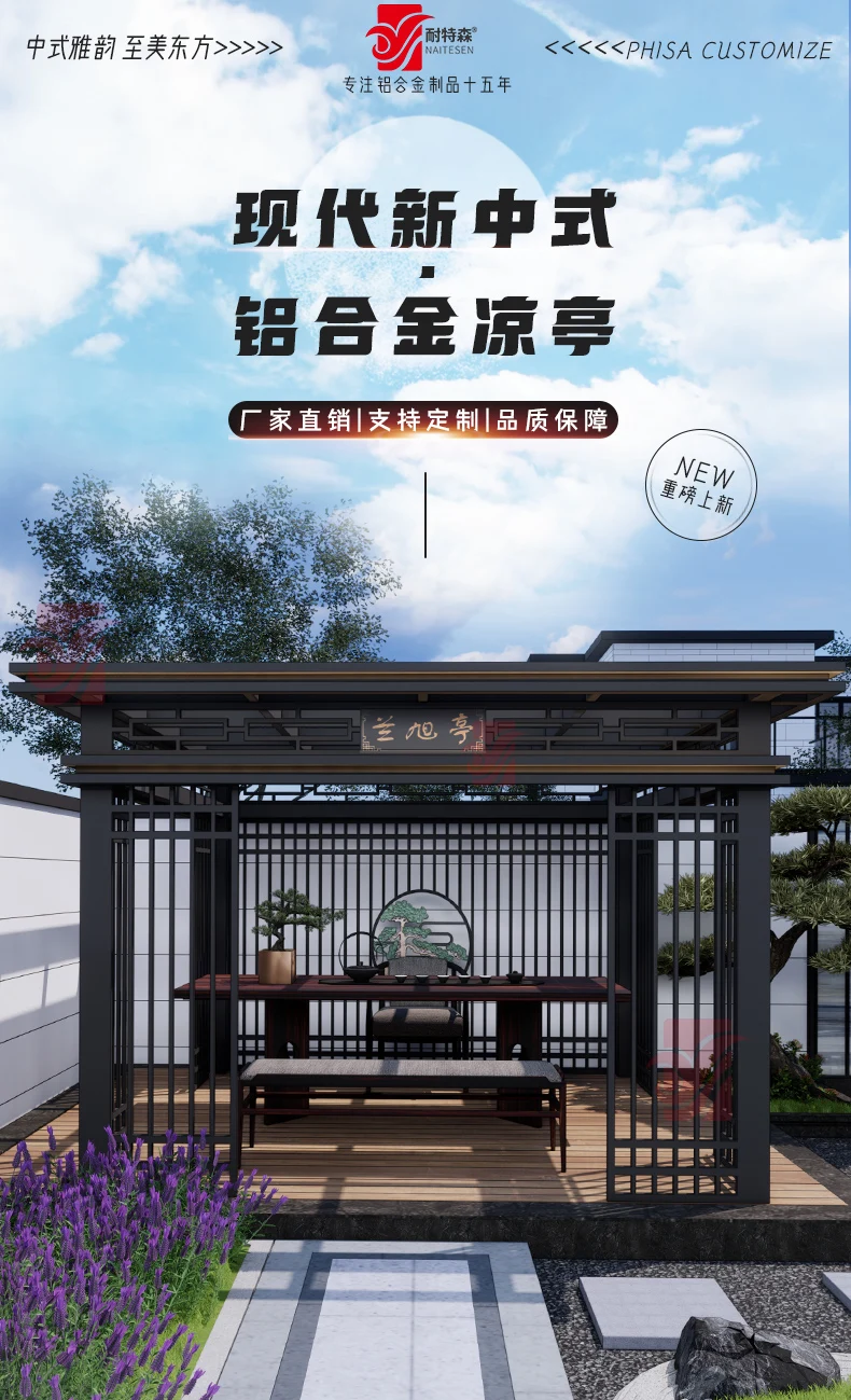 Nuovo gazebo in stile cinese in lega di alluminio per esterni, padiglione artistico in alluminio, giardino esterno, cortile, villa, tenda per il tempo libero