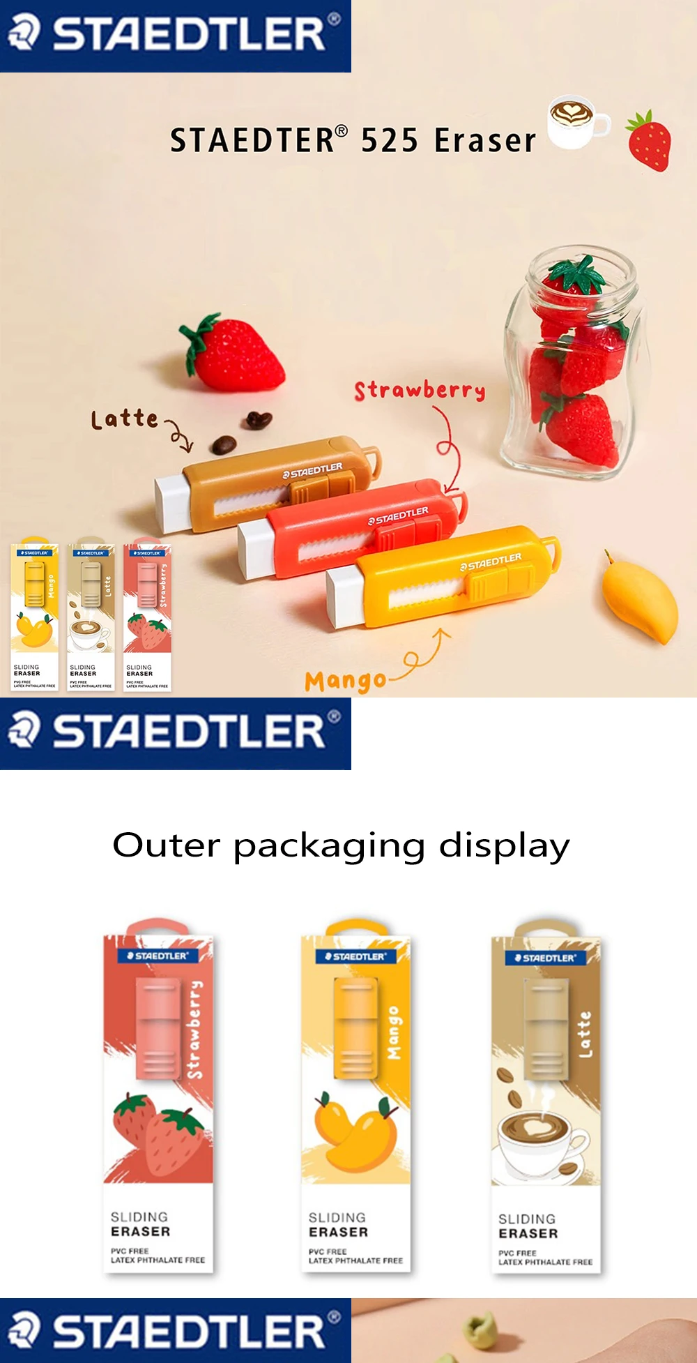 Nuovo Gomma STAEDTLER Tè pomeridiano Limitata Gomma push-pull ultra pulita Nessun detriti o segni Sinistra Ritorno a scuola Cancelleria Kawaii