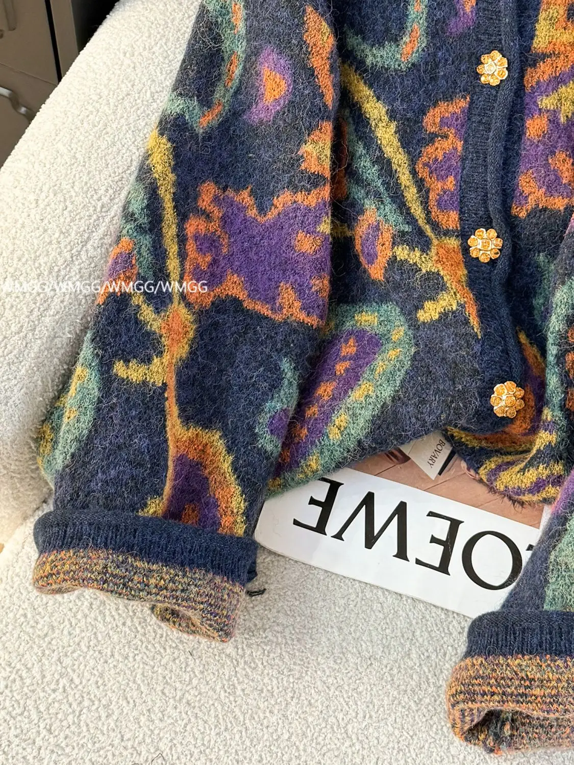 Nuovo maglione cardigan da donna invernale in metallo ispessito le giacca lavorata a maglia pigra morbida e glutinosa con ricamo alla moda retrò