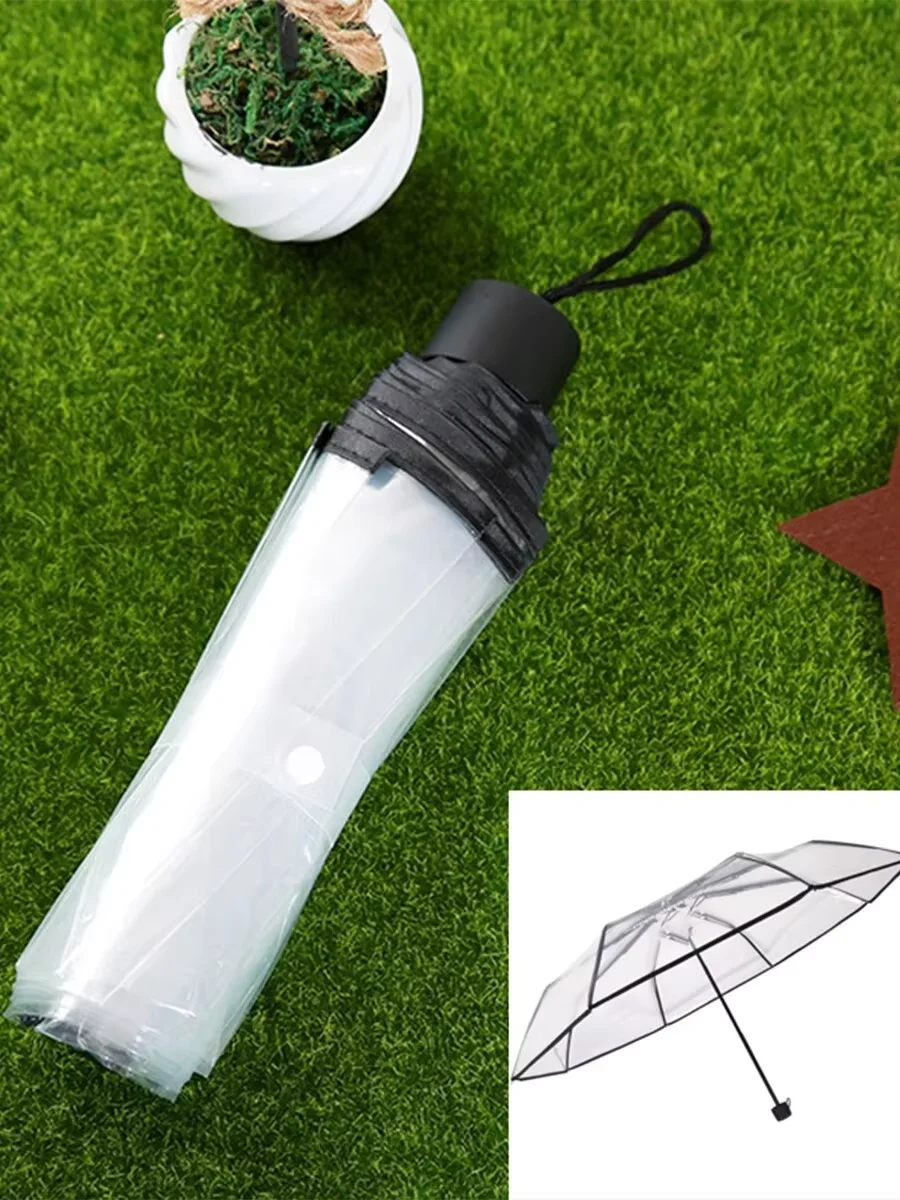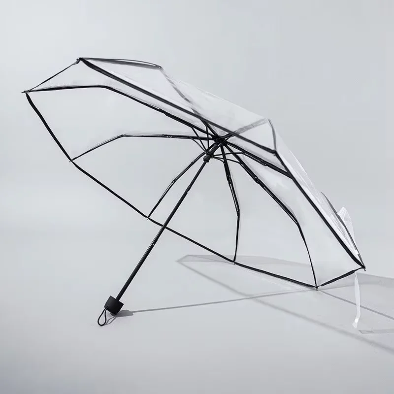 Nuovo Ombrello pieghevole portatile manuale universale per uomo e donna trasparente alla moda ispessito rosso netto Ombrello essenziale per la casa