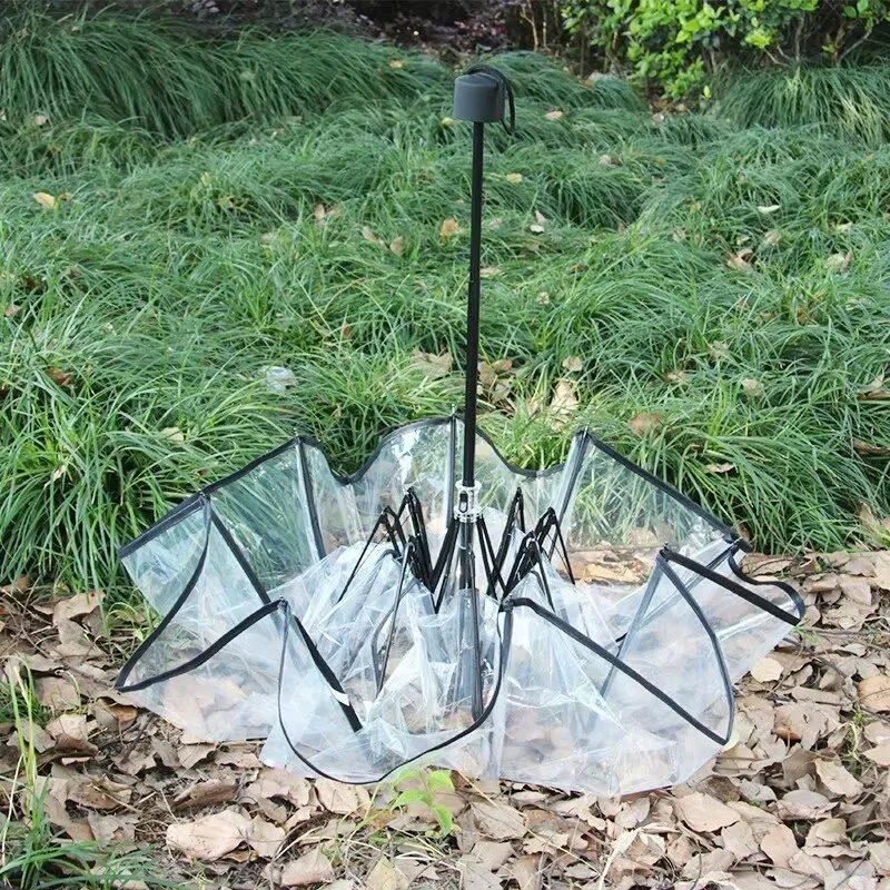 Nuovo Ombrello pieghevole portatile manuale universale per uomo e donna trasparente alla moda ispessito rosso netto Ombrello essenziale per la casa