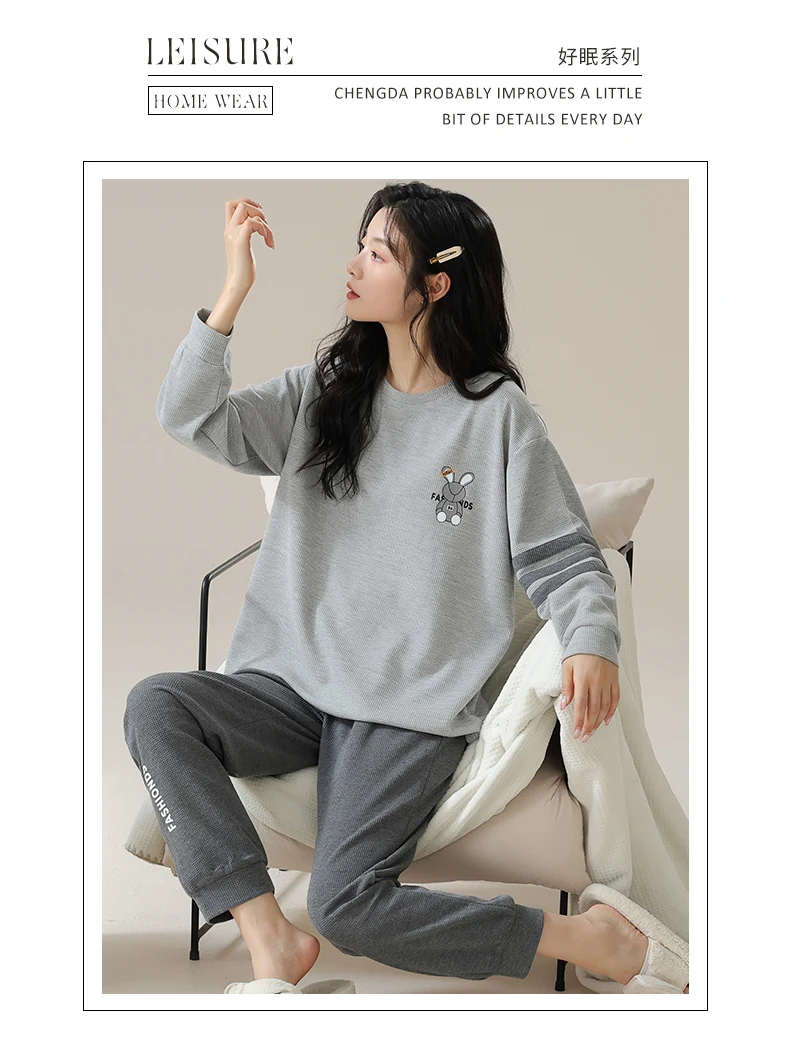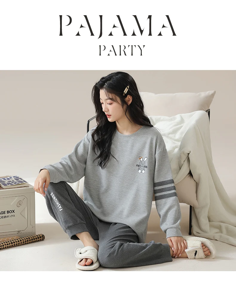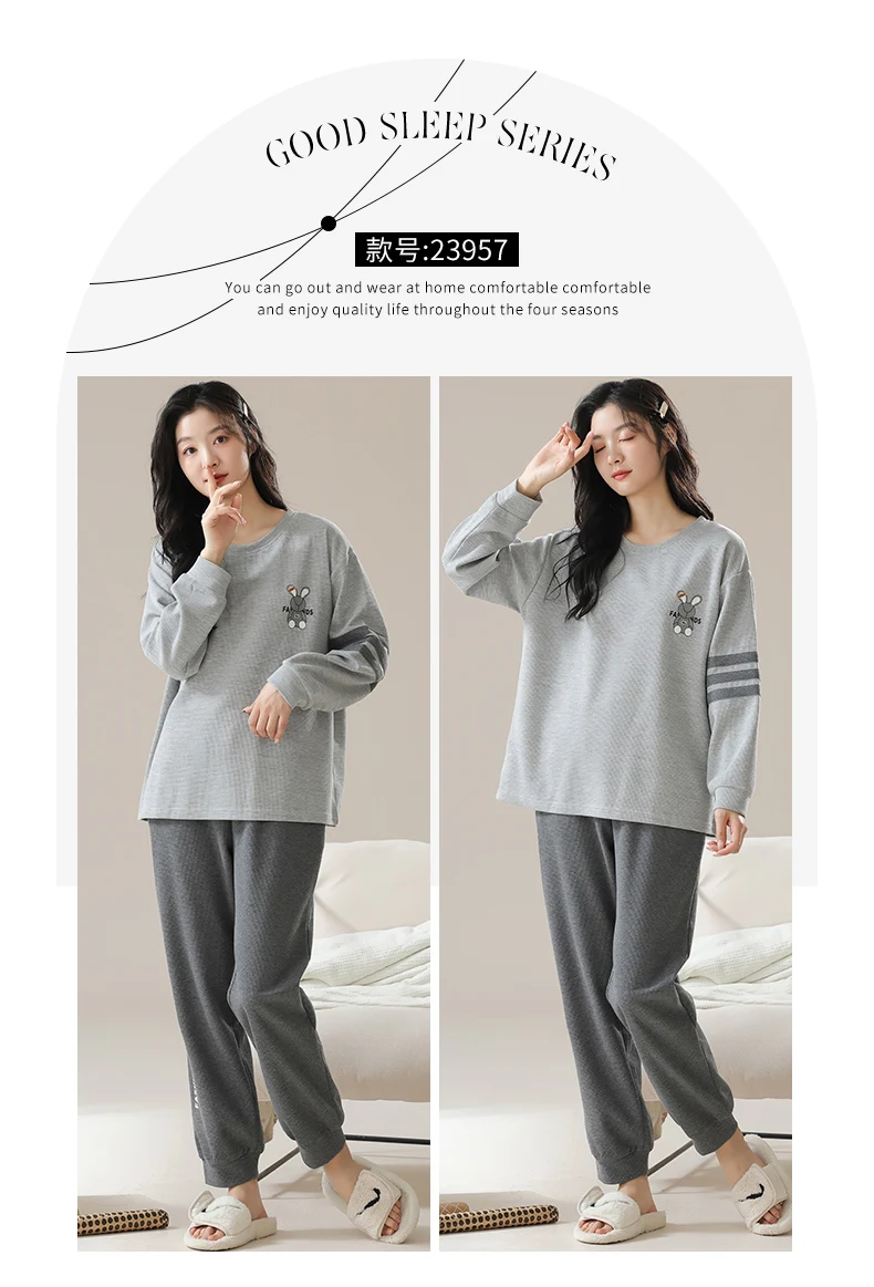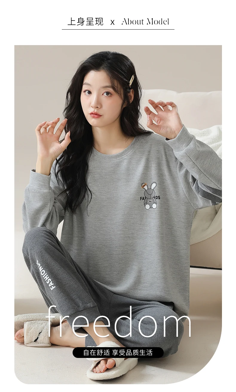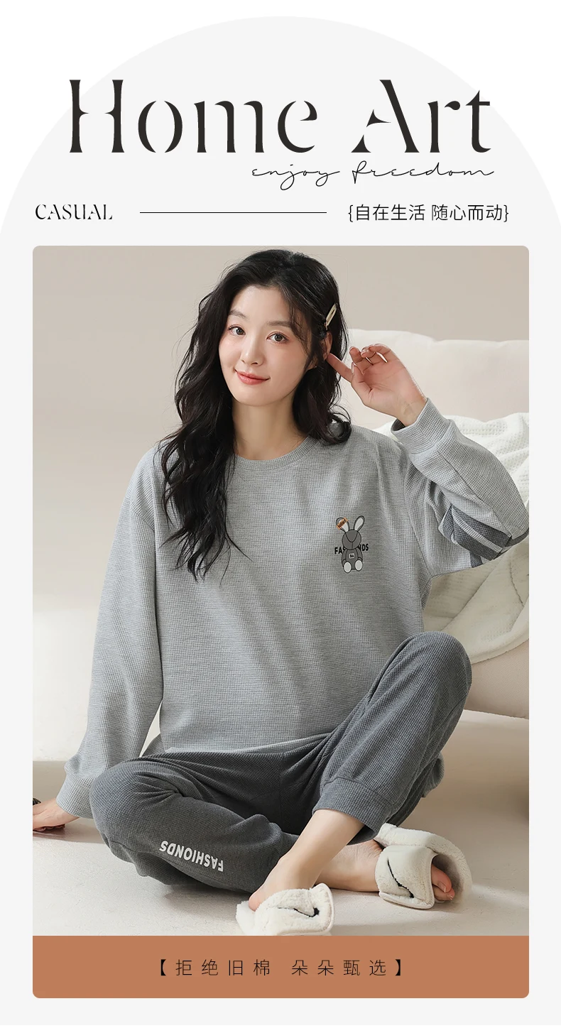 Nuovo pigiama in cotone Waffle autunno inverno per donna pigiameria a maniche lunghe pigiama sportivo Casual o-collo donna Loungewear