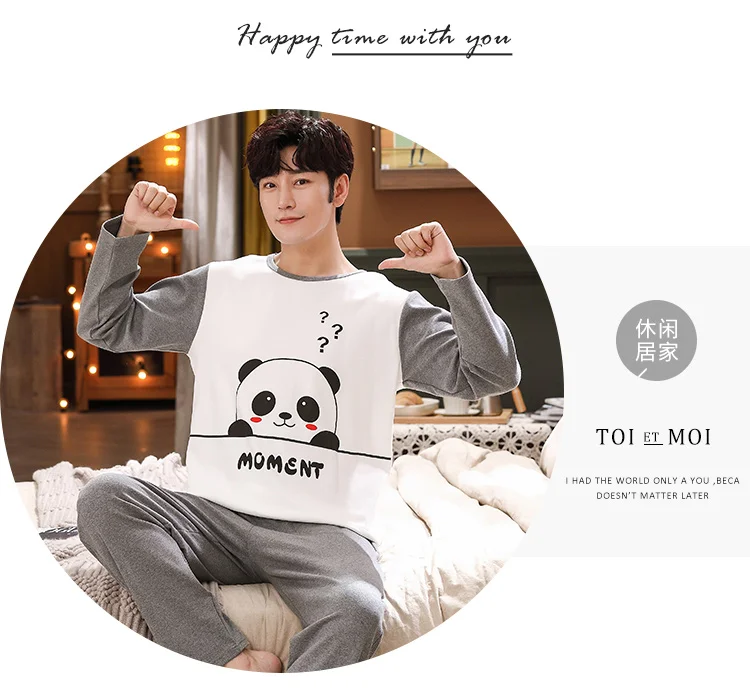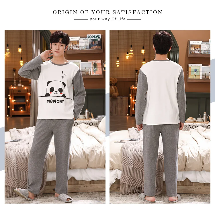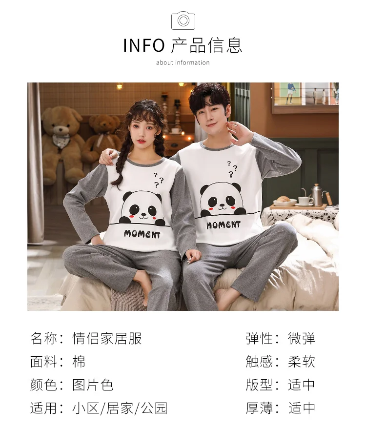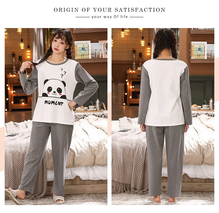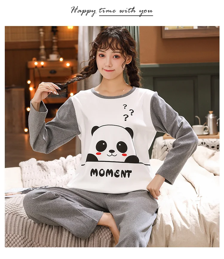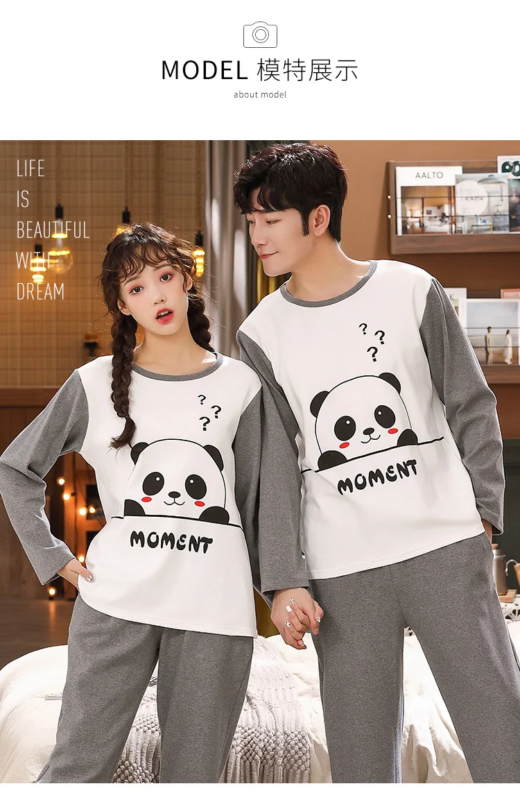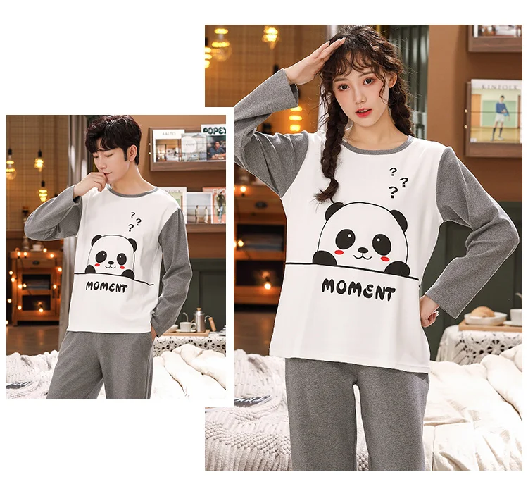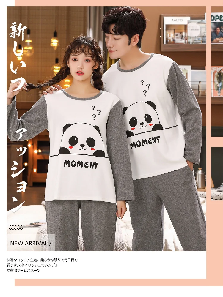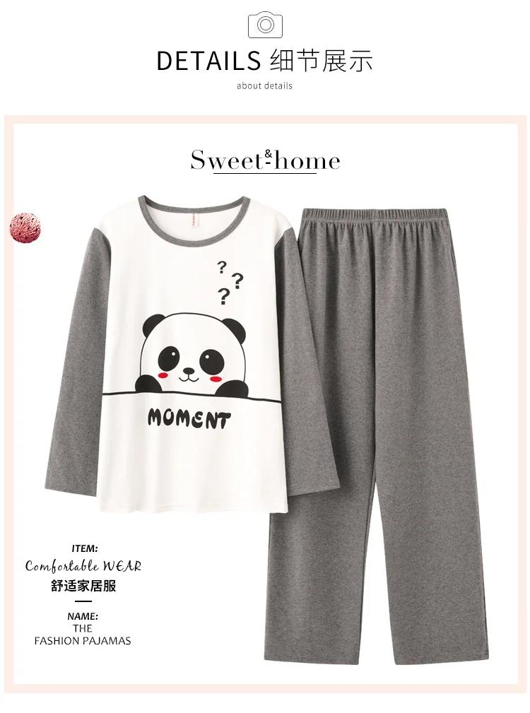 Nuovo Pigiama Moda 4XL Pigiama a maniche lunghe Pantaloni lunghi Kawaii Cartoon Panda Stampa Autunno Inverno Pigiama di grandi dimensioni per giovani coppie