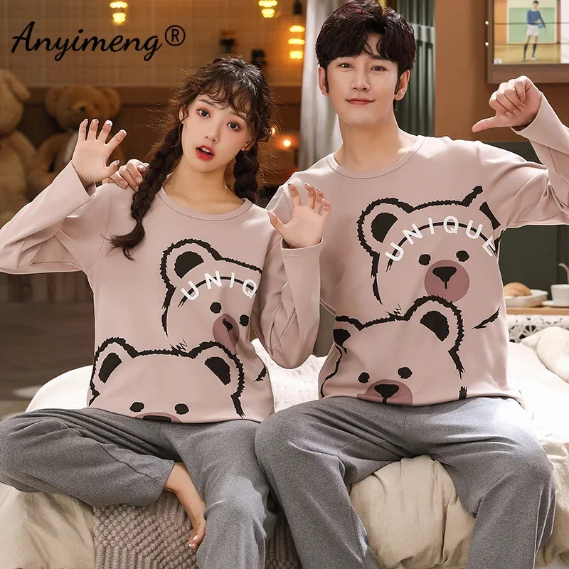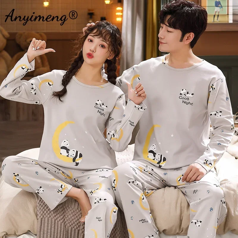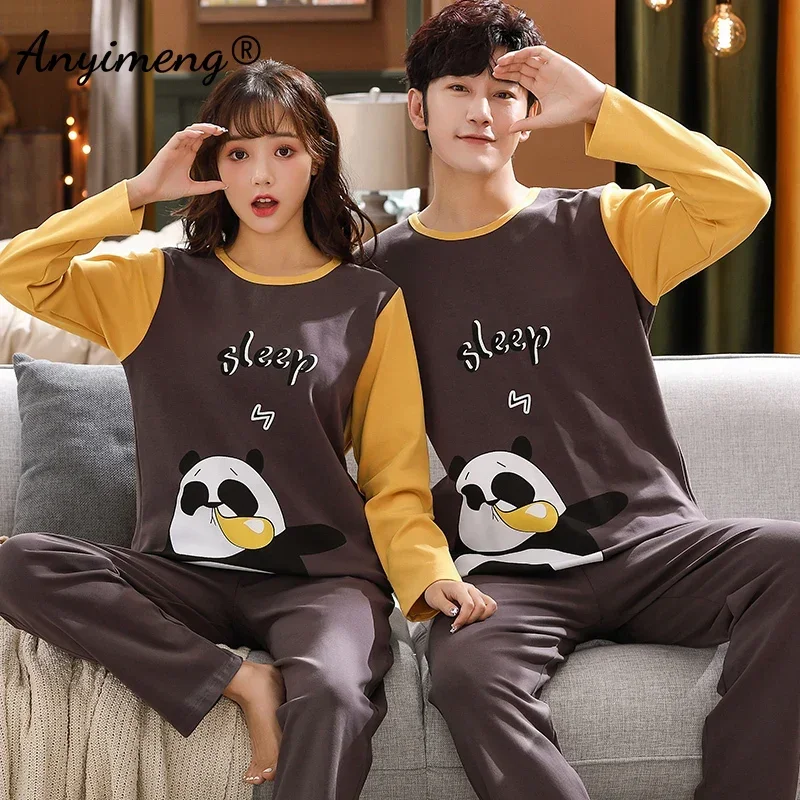 Nuovo Pigiama Moda 4XL Pigiama a maniche lunghe Pantaloni lunghi Kawaii Cartoon Panda Stampa Autunno Inverno Pigiama di grandi dimensioni per giovani coppie