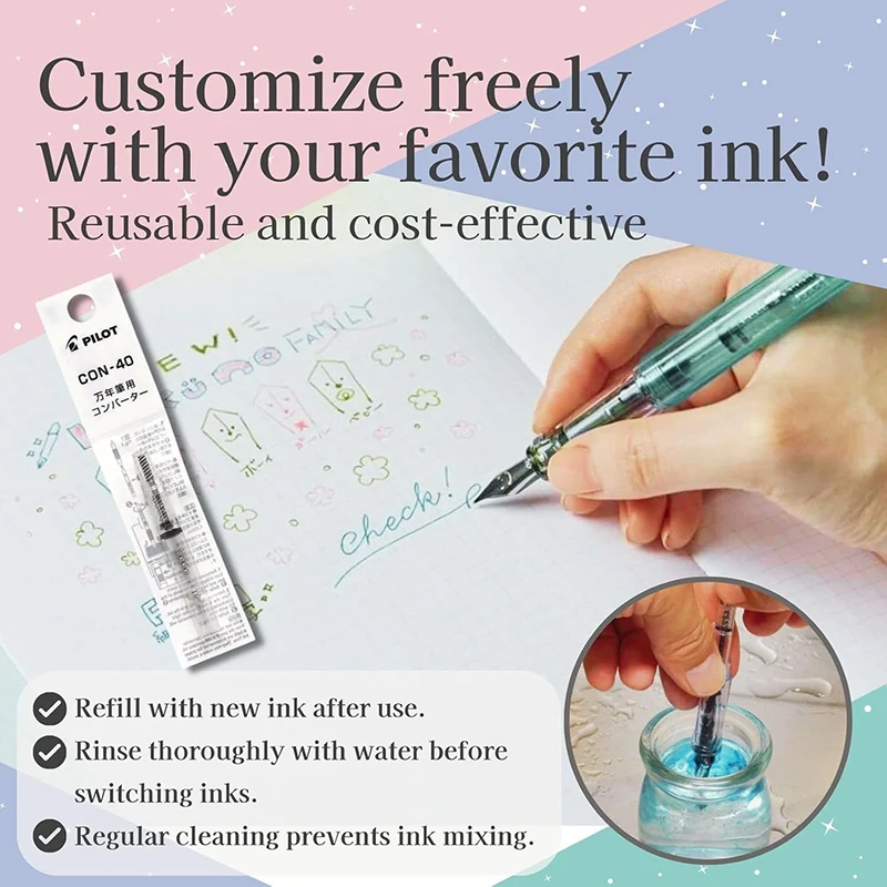 ❤ Compatibilità versatile dell’inchiostro:Compatibile con le cartucce d’inchiostro brevettate di Pilot o i convertitori opzionali (CON-40, venduti separatamente), offrendo flessibilità e praticità per un’ampia gamma di scelte di inchiostro.