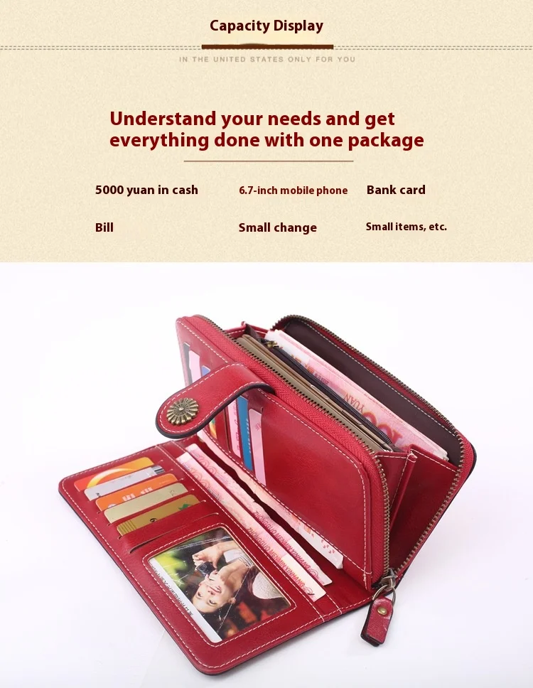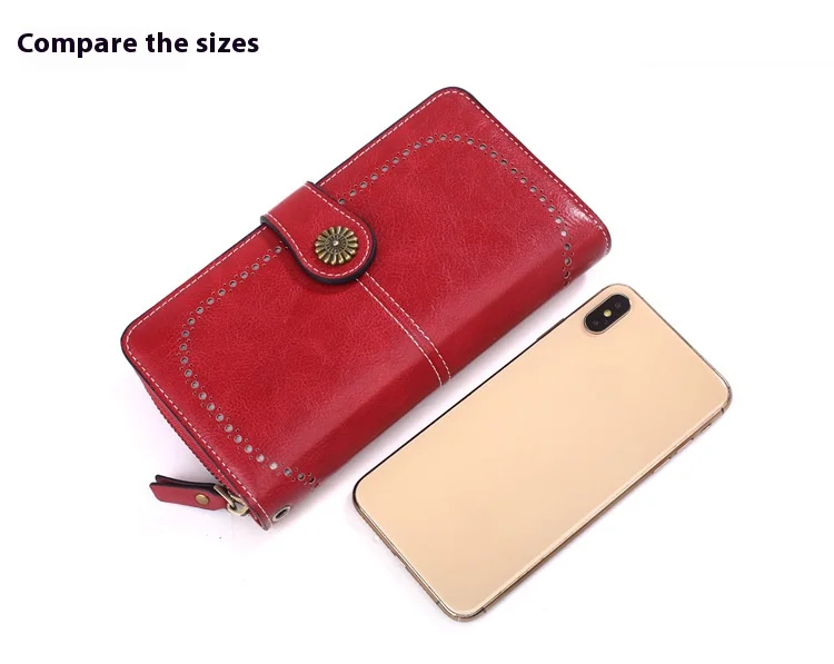 Nuovo portamonete scavato alla moda per borsa per telefono in pelle oleosa da donna, borsa lunga con cerniera, portamonete Portafoglio da donna triplo piega
