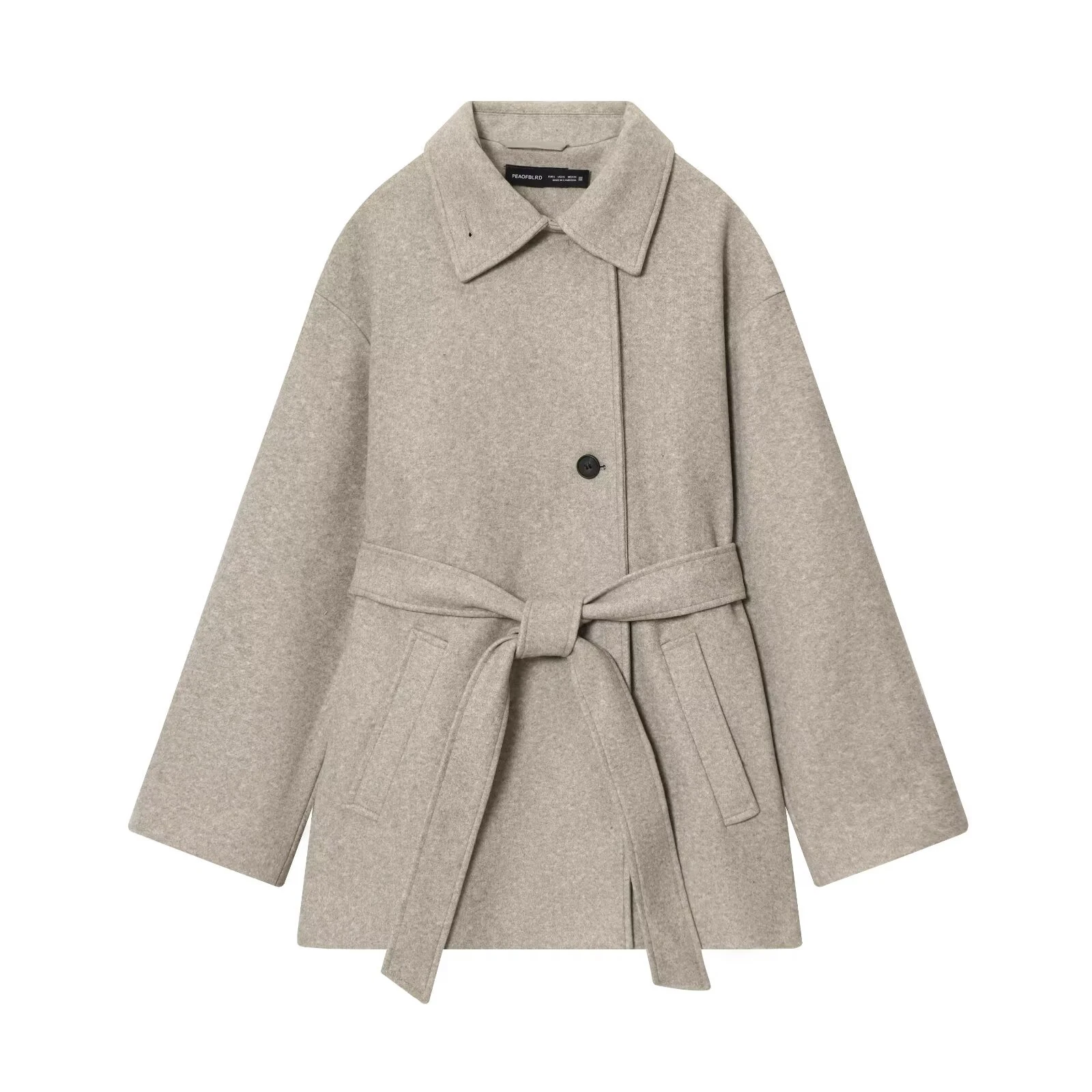 Nuovo prodotto autunnale 2025: sensazione di fascia alta per pendolarismo da donna con cintura, cappotto e cappotto morbido con colletto a doppio strato