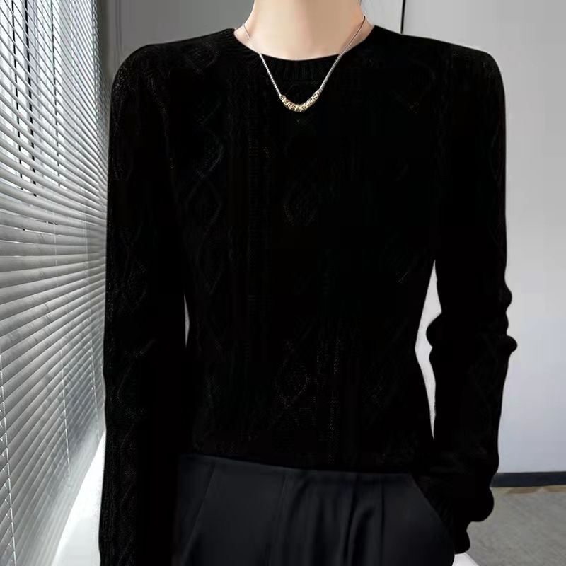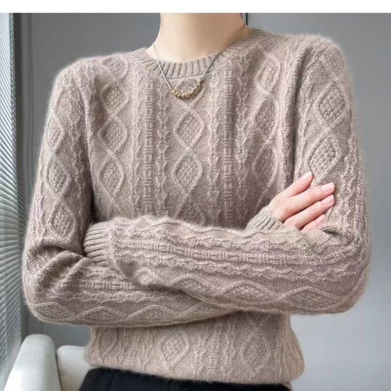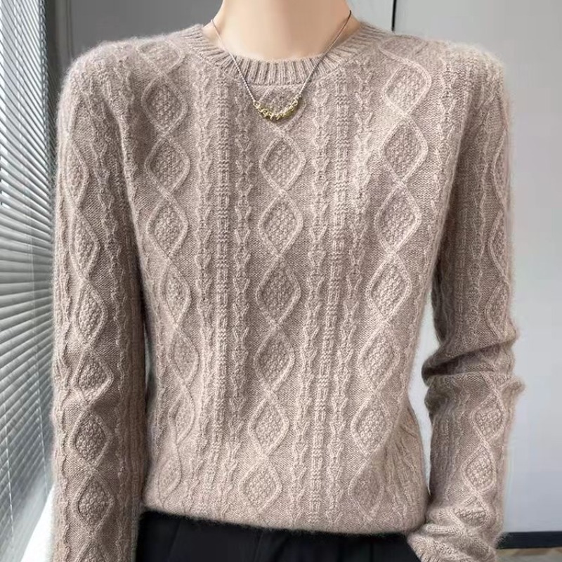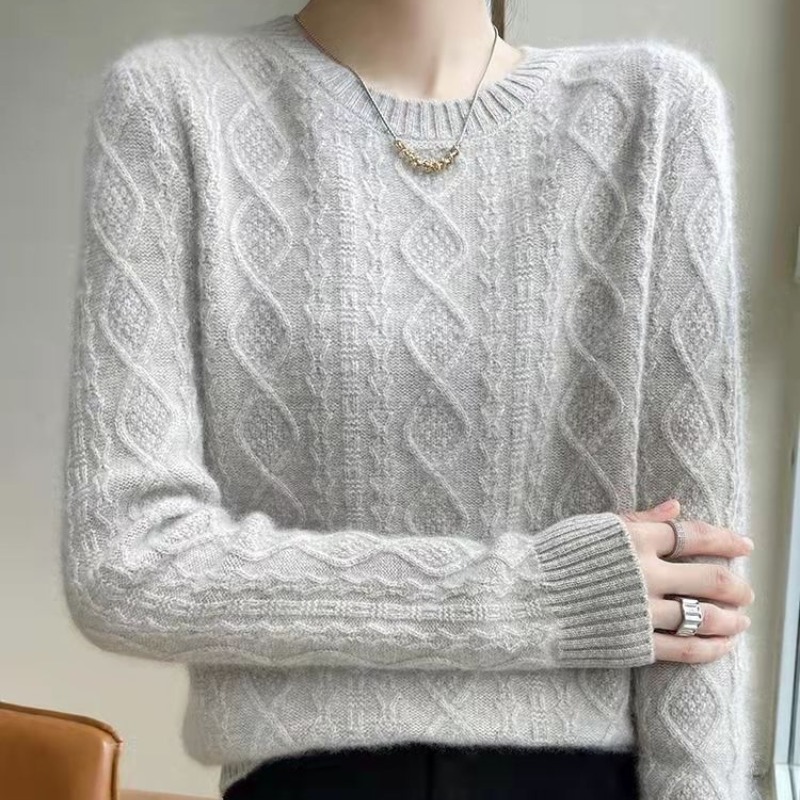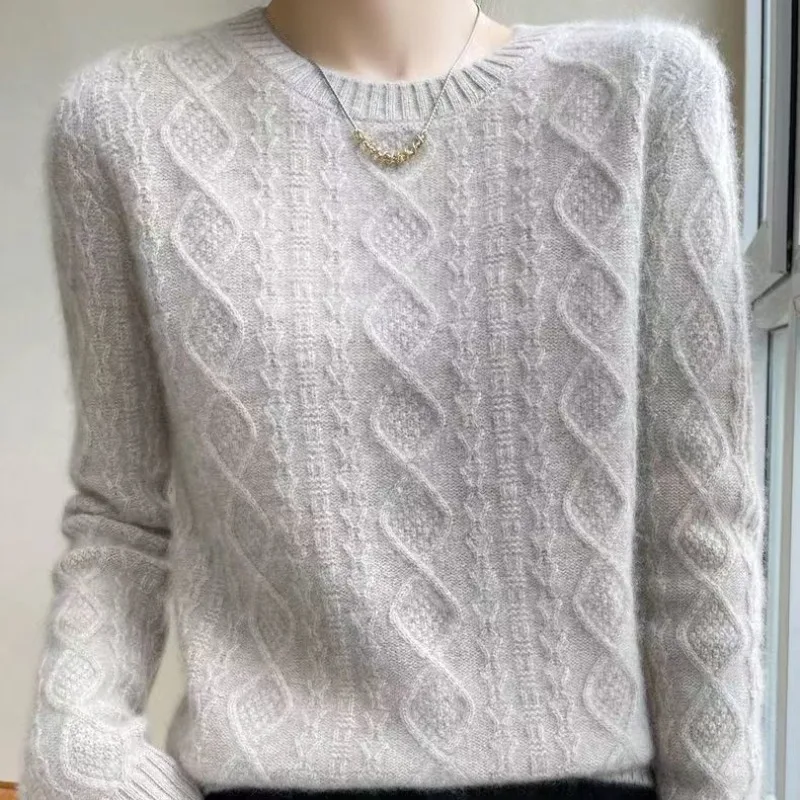 1 recensione per Nuovo stile autunno e inverno donna solido allentato o-collo maniche lunghe estrattori lavorati a maglia maglione vite filo moda Casual top